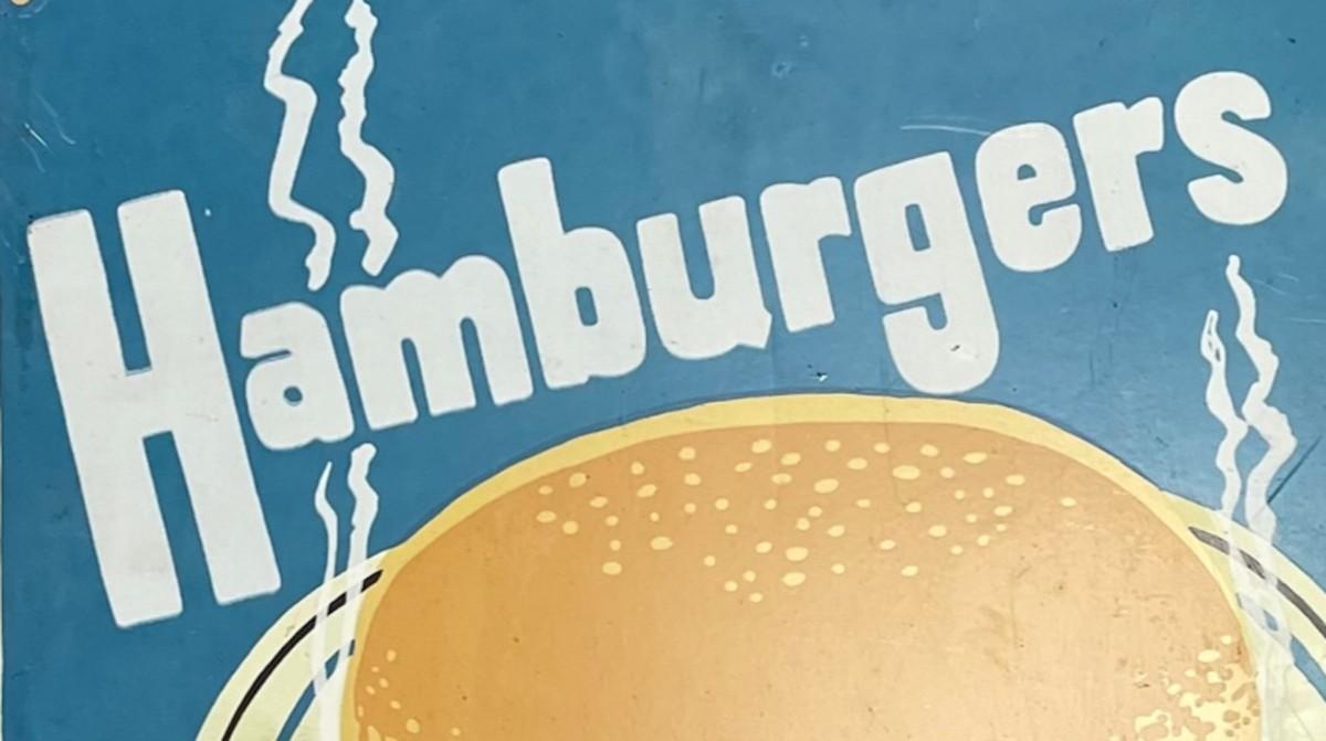 Description: Hamburgers You'll Like! Sign. Measures approximately: 12 X 10 Inches. Material : Metal.