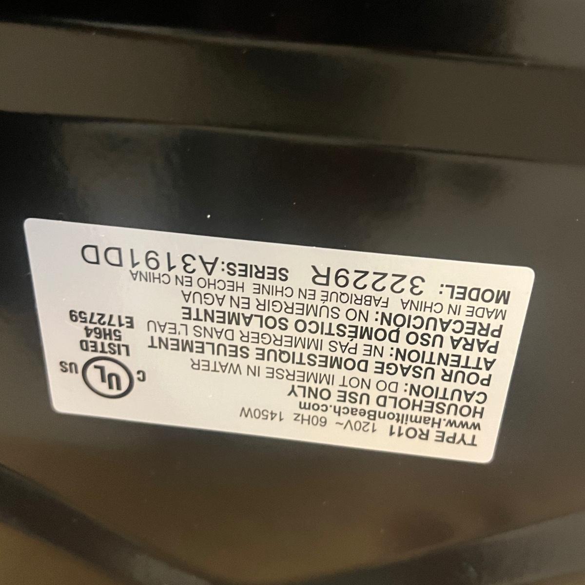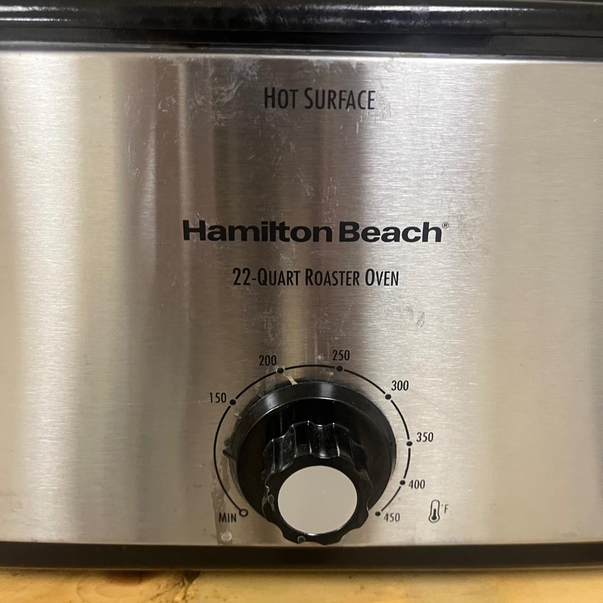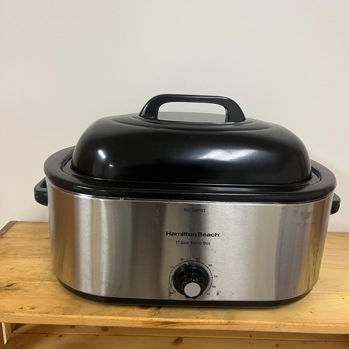 Lot includes a Hamilton Beach 22 quart roaster oven that measures 23” x 14” x 15”H. Oven powered on when plugged in.