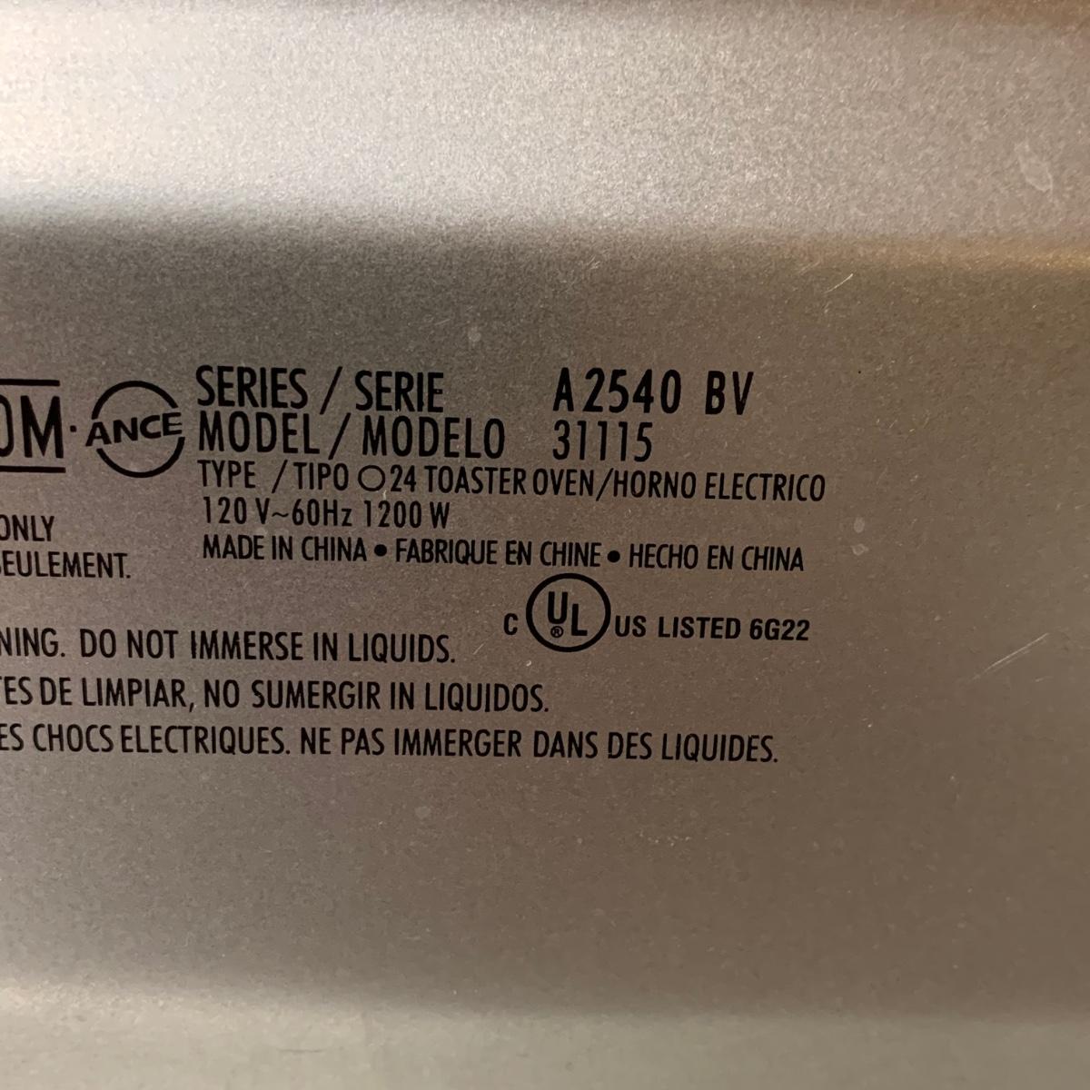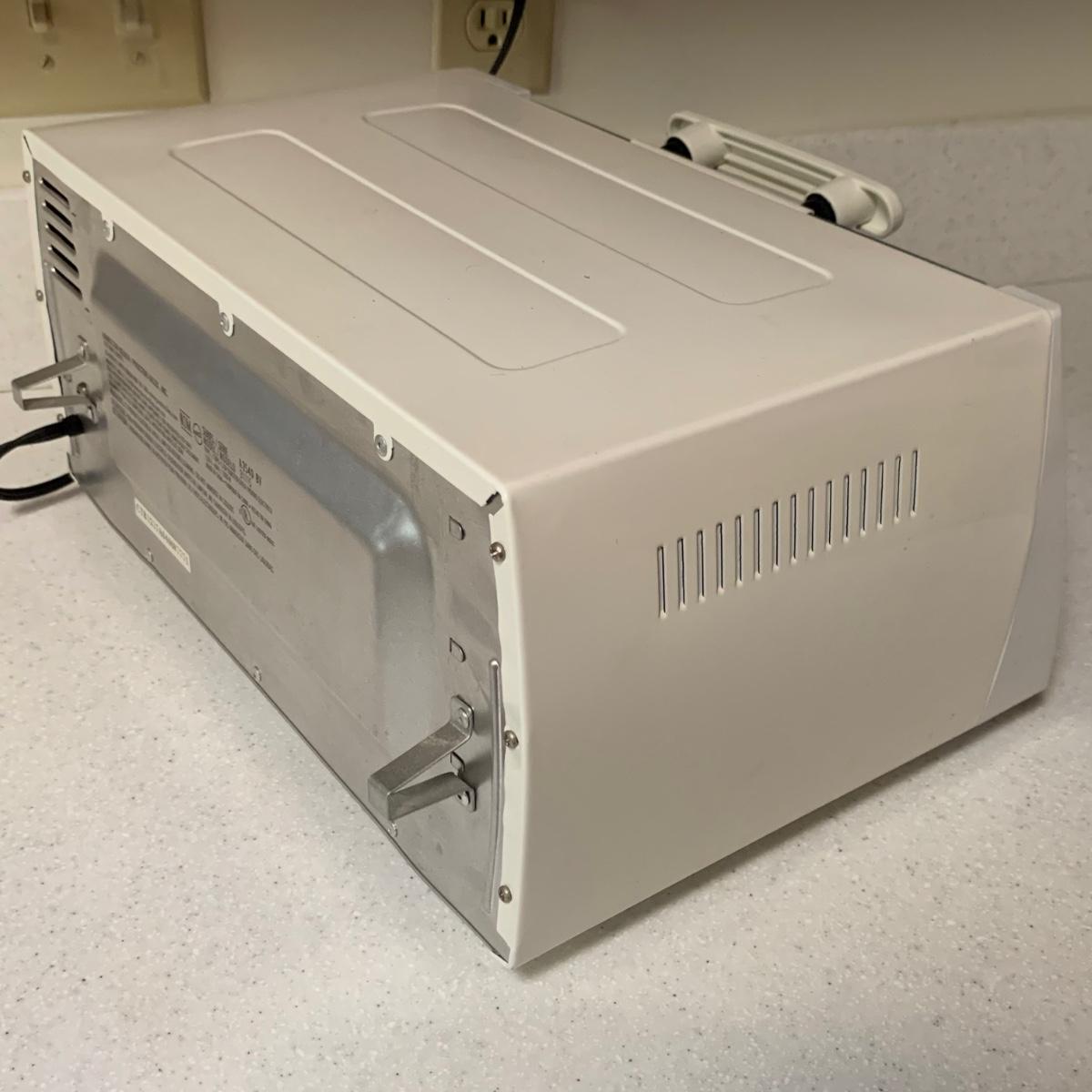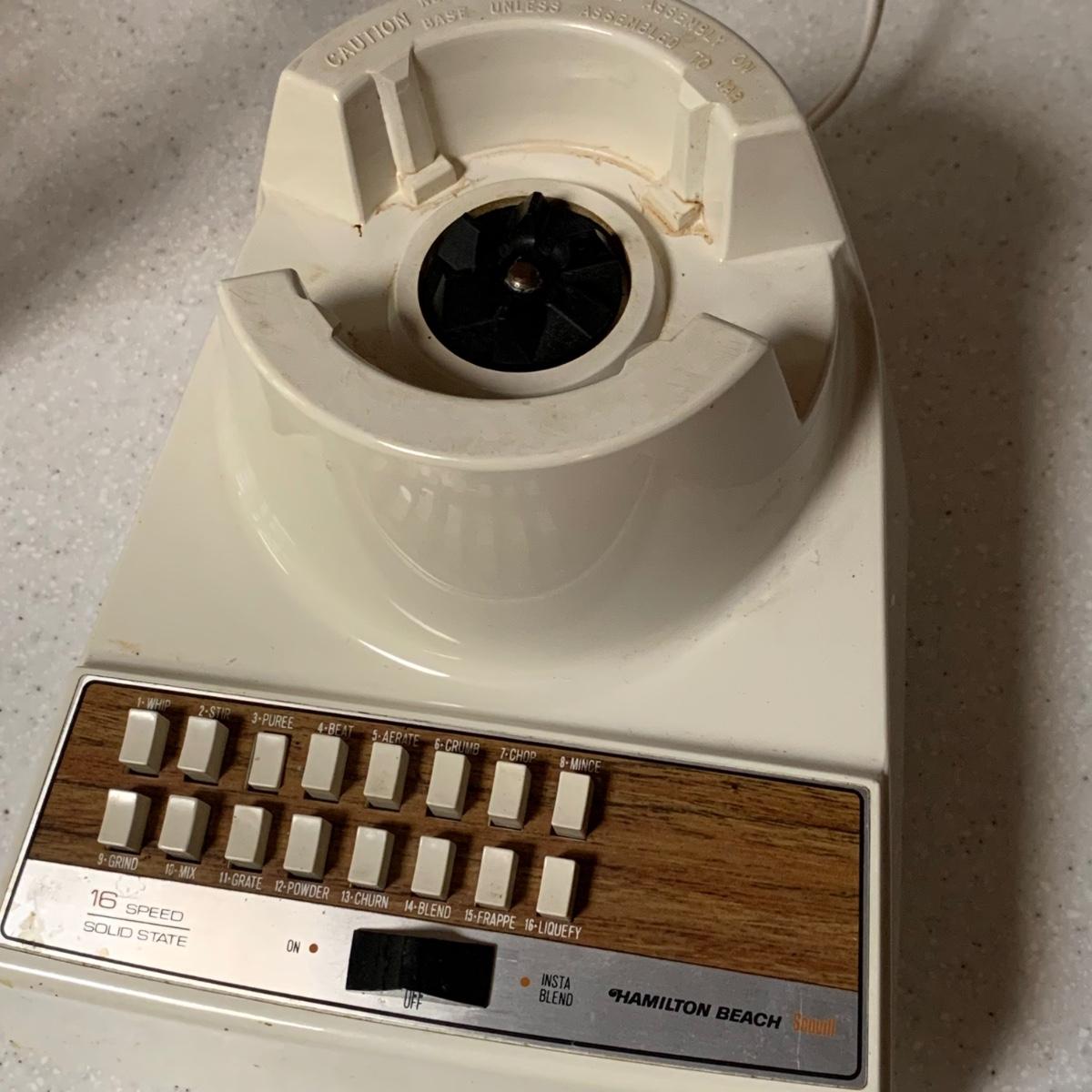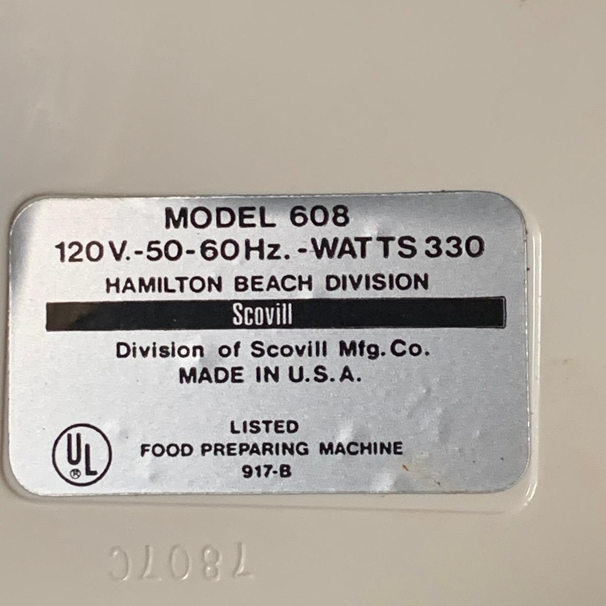 In this lot there is a blender, a toaster oven, and two cutting boards. The blender is a Hamilton Beach Scovill, Model 608, with 16 speeds. It has a plastic pitcher. It is in good condition with the exception of some wear seen on the handle part of the lid, which will not affect its function. The toaster oven is a Proctor Silex, Model 31115. It is in good condition and very clean. Both items functioned when tested. The larger cutting board feels like acrylic and is 24” x 15”. Both cutting boards show signs of use.