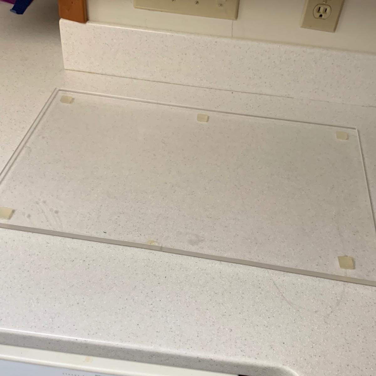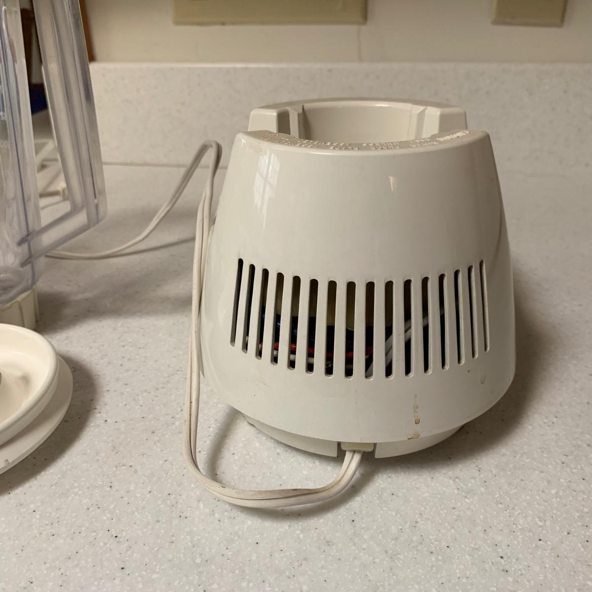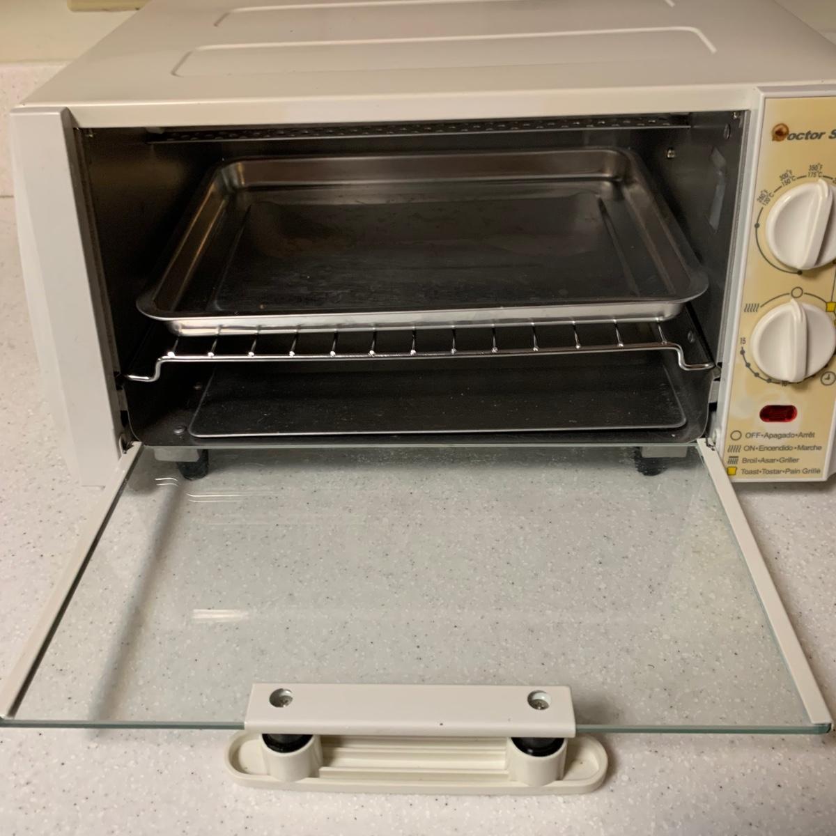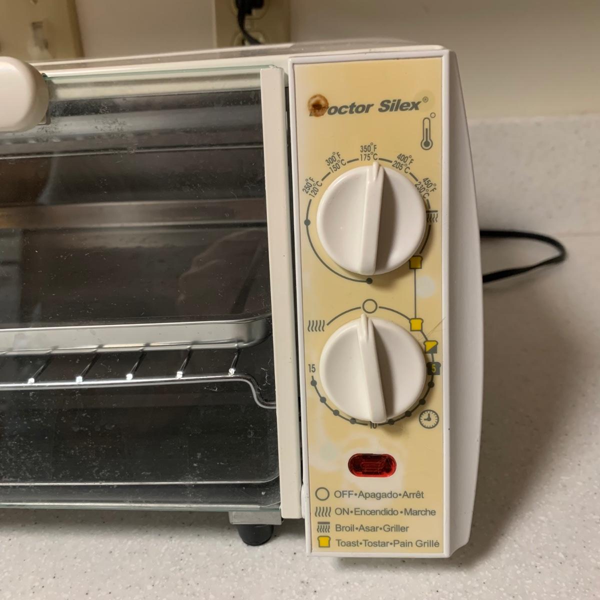 In this lot there is a blender, a toaster oven, and two cutting boards. The blender is a Hamilton Beach Scovill, Model 608, with 16 speeds. It has a plastic pitcher. It is in good condition with the exception of some wear seen on the handle part of the lid, which will not affect its function. The toaster oven is a Proctor Silex, Model 31115. It is in good condition and very clean. Both items functioned when tested. The larger cutting board feels like acrylic and is 24” x 15”. Both cutting boards show signs of use.