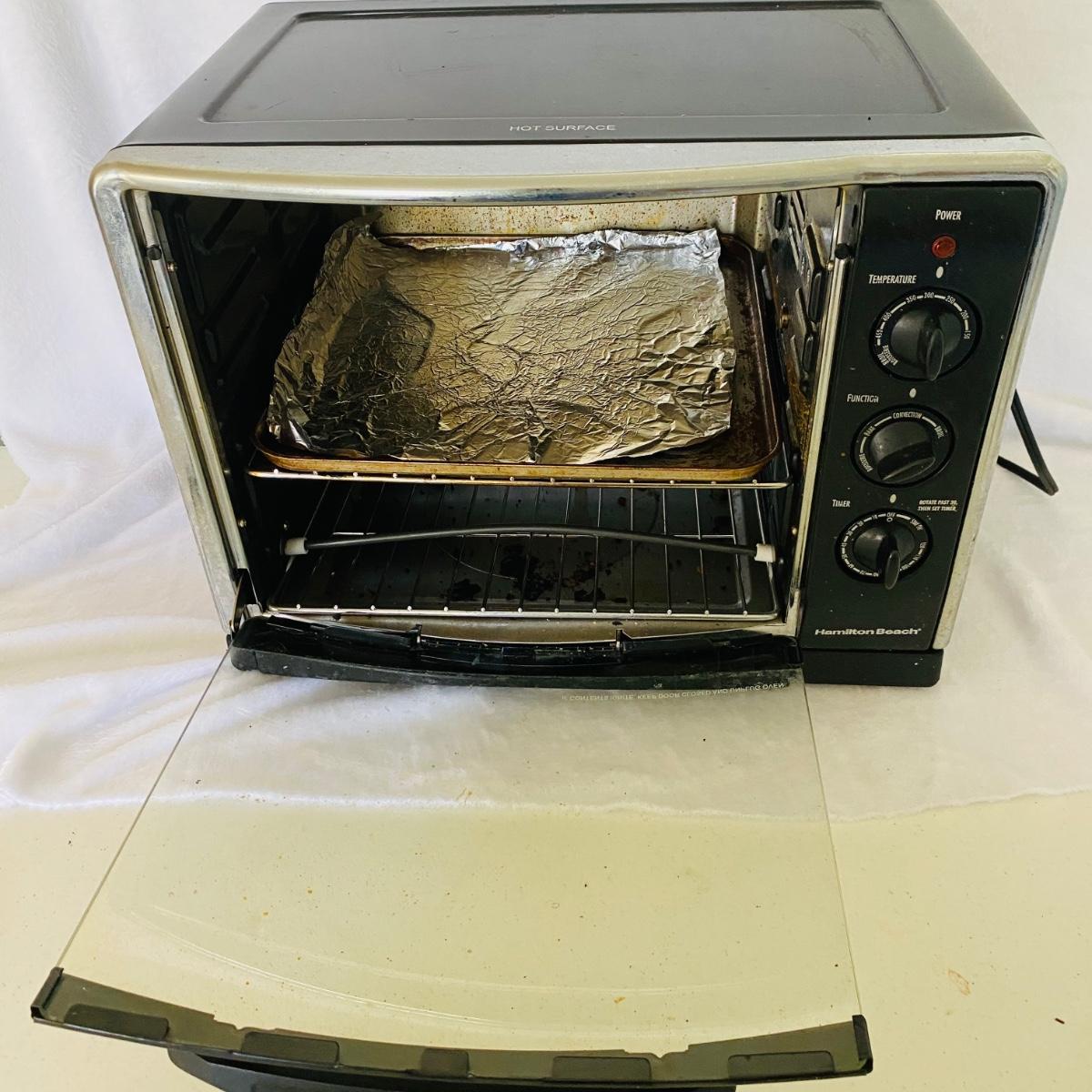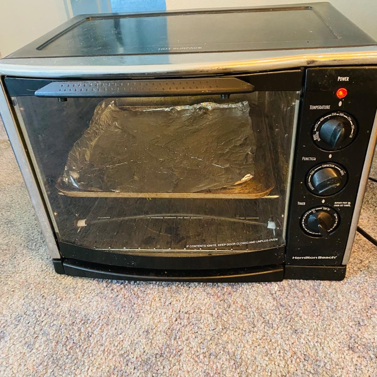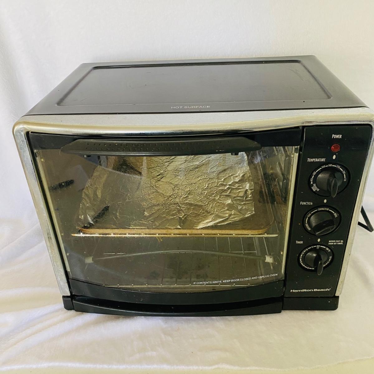 Hamilton Beach convection oven. Measures 18”H x 14”W x 13.5”.H. Powers on when plugged in.