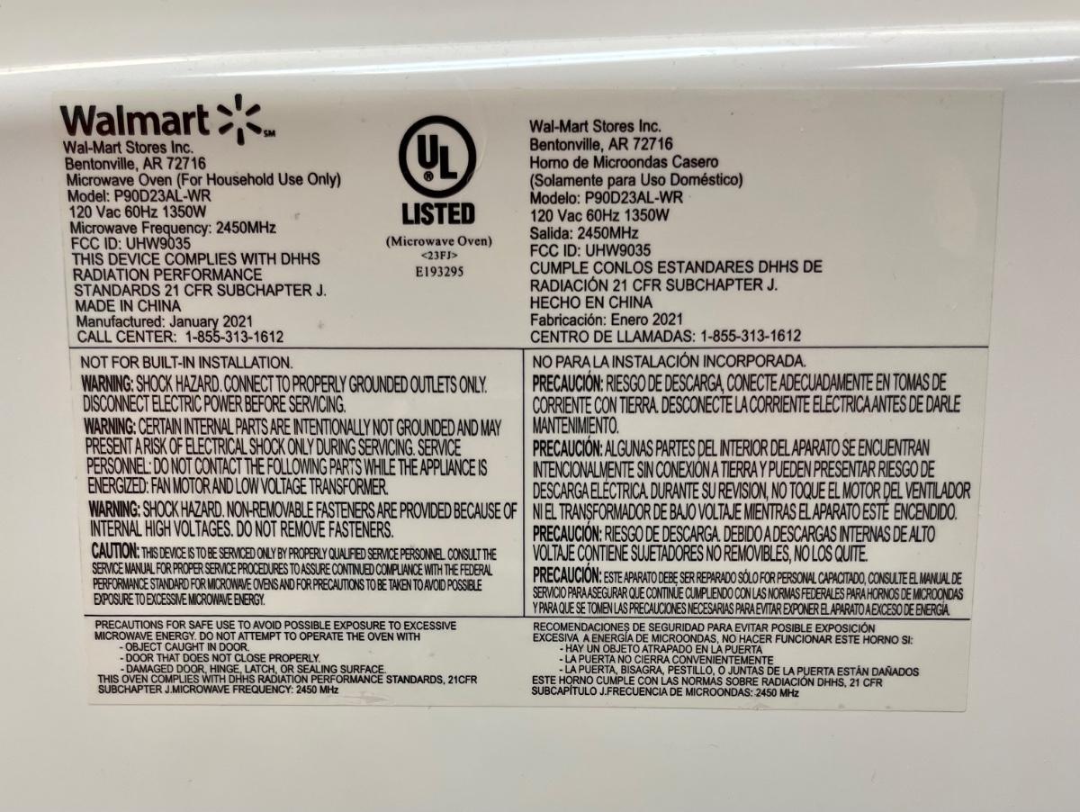 Hamilton Beach Countertop Microwave, Model P90D23AL-WR. 1350 Watts.
