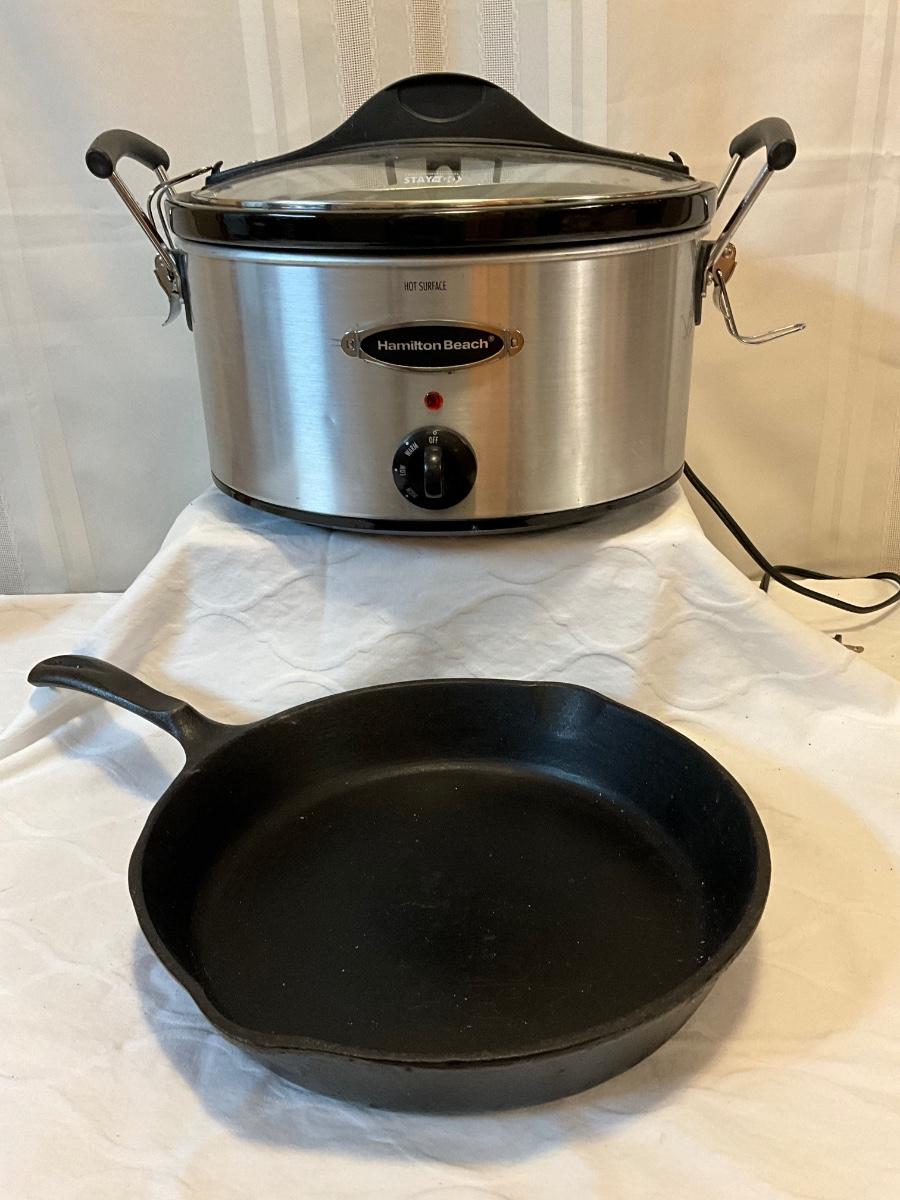 Hamilton Beach crockpot and Wagner’s cast-iron cookware