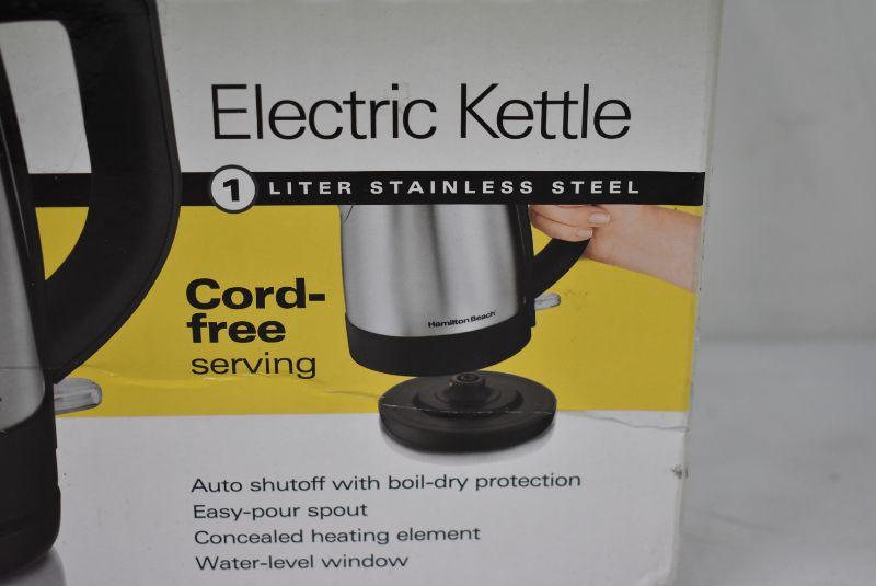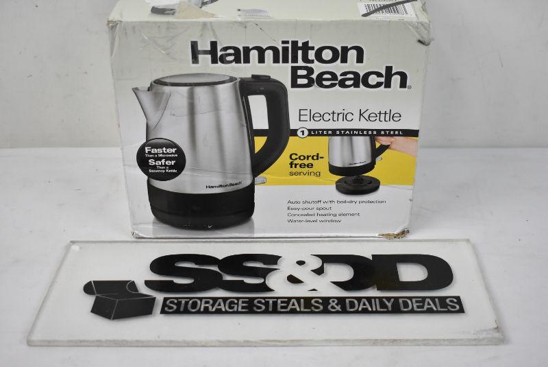 Hamilton Beach Electric Kettle, 1 litre Stainless Steel. "Cord Free Serving" Deep Scratch along the top of the kettle. Complete. Works