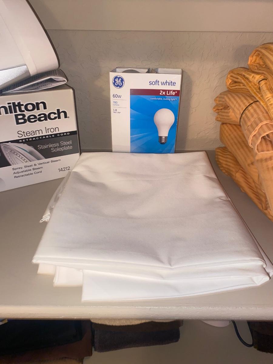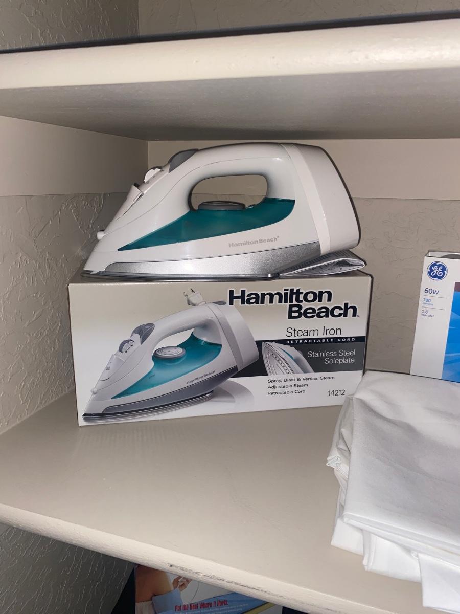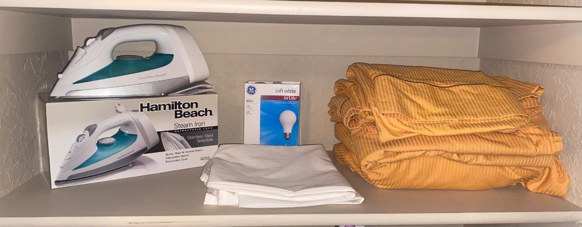 HAMILTON BEACH IRON, KING SHEETS, PILLOWCASE PROTECTORS, AND LIGHTBULBS
