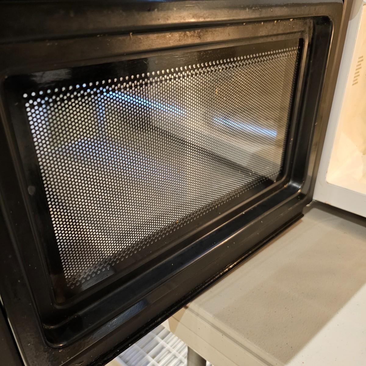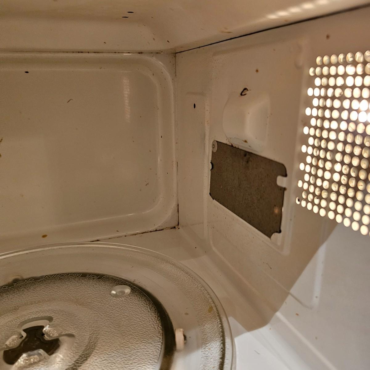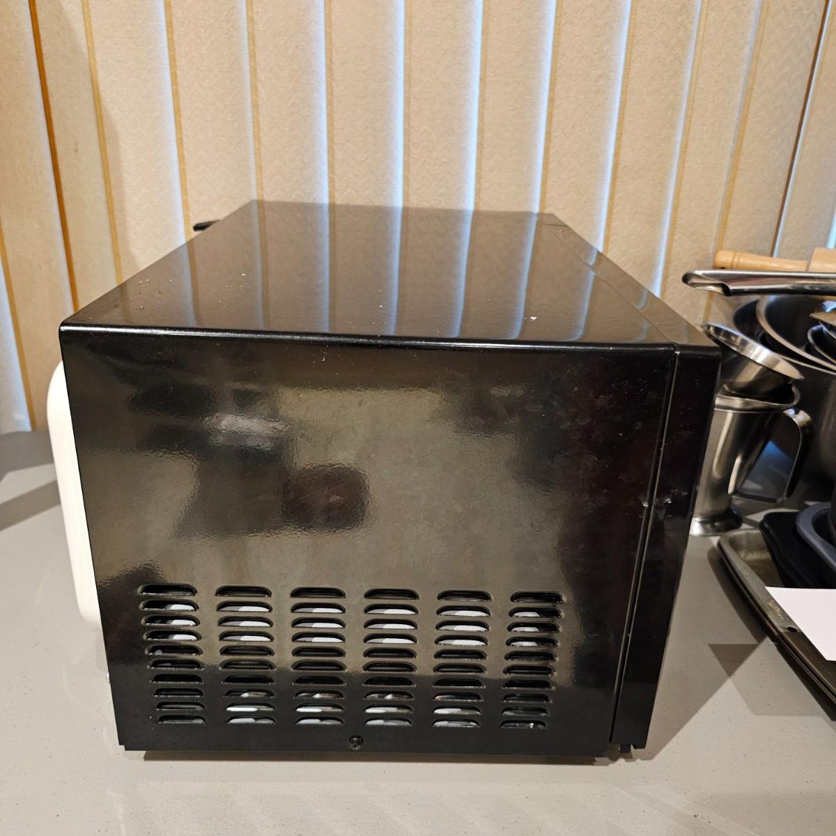 Compact size microwave by Hamilton Beach. Glass turntable, pull door handle. Item measures 19" x 16" x 10.5"H and powered on when plugged in. See photos for details. Local pickup only.