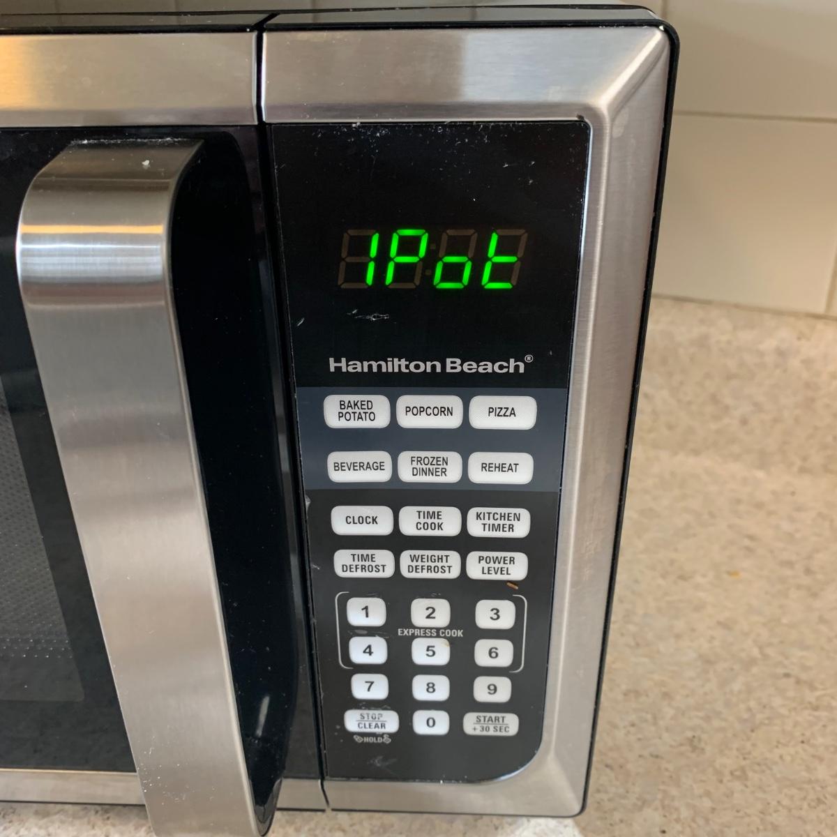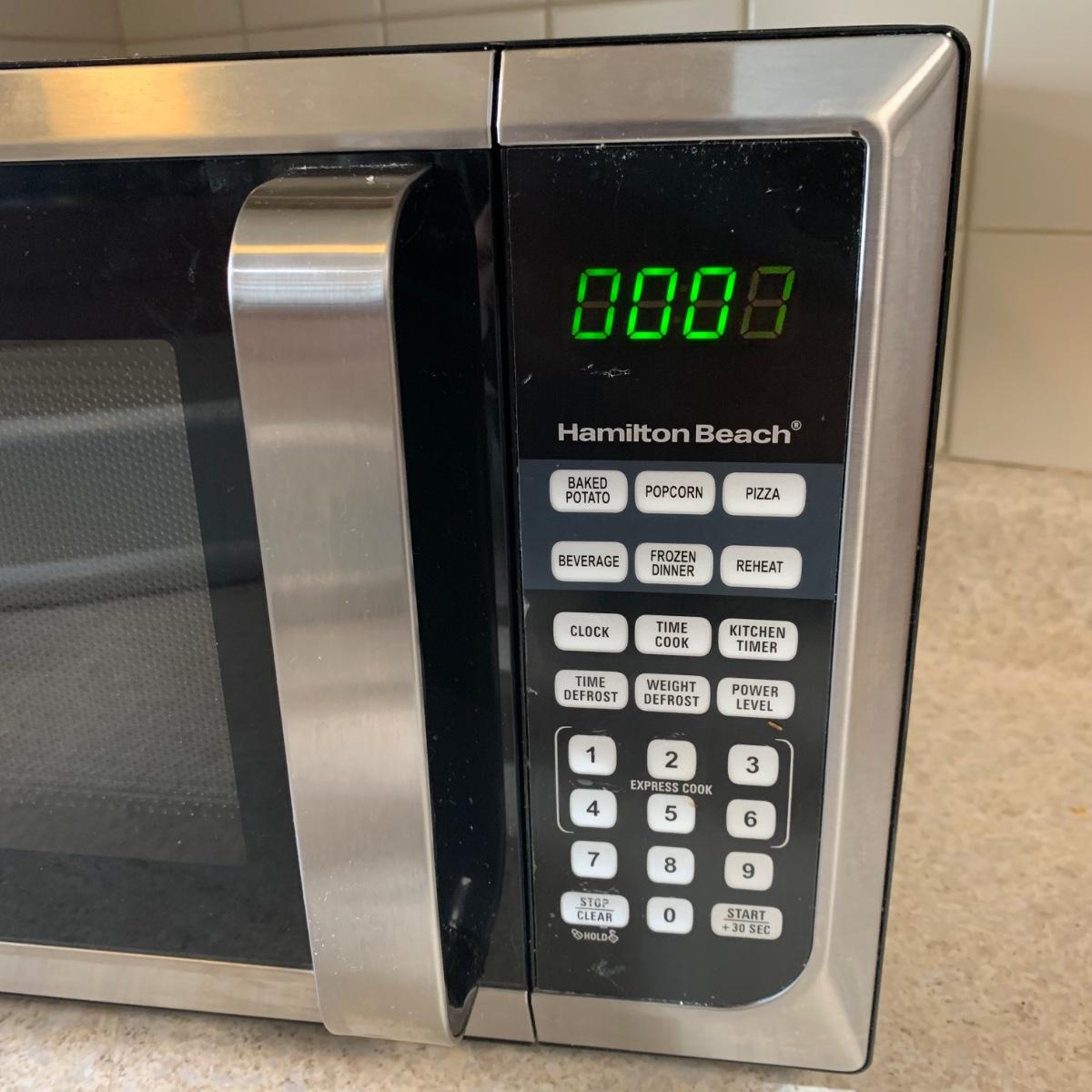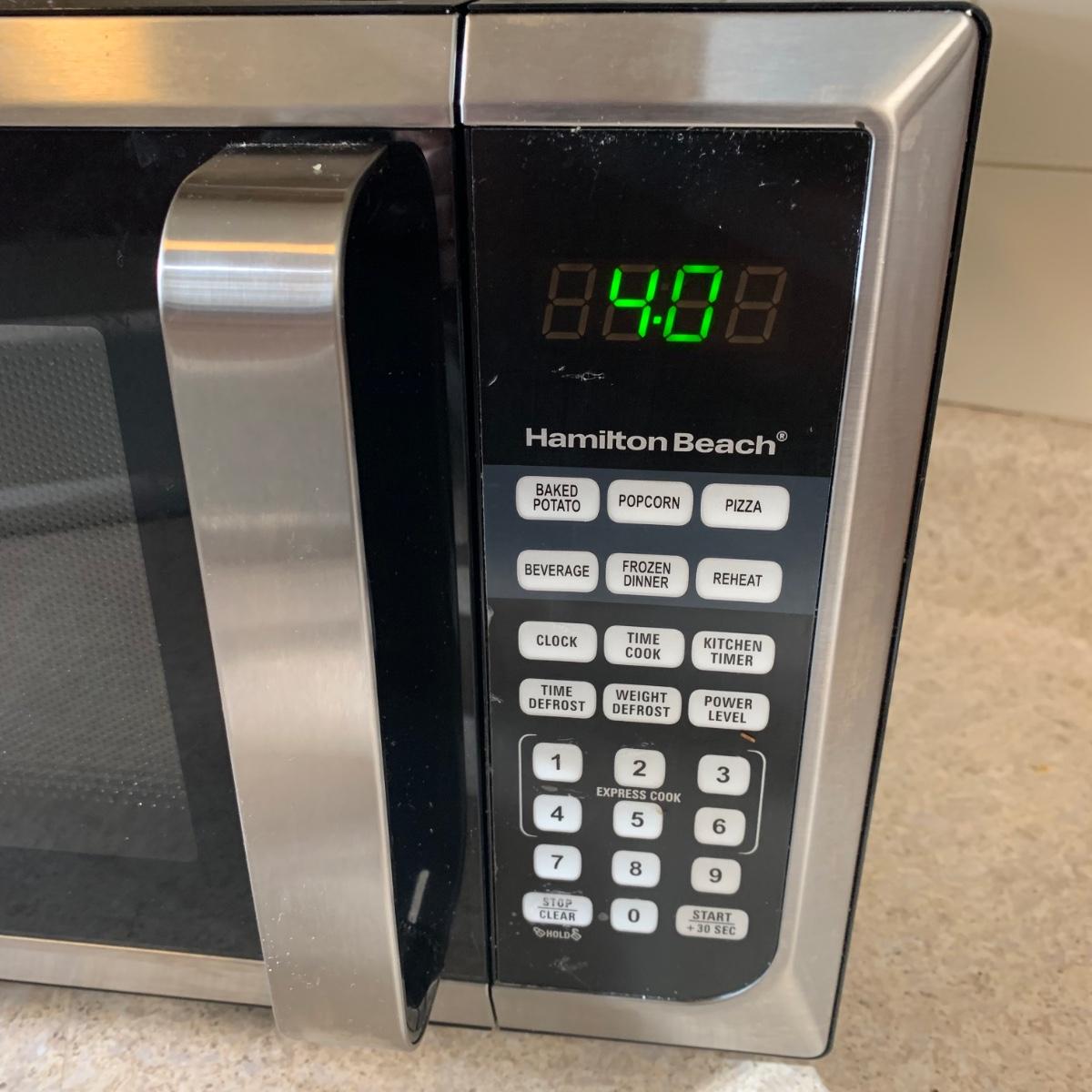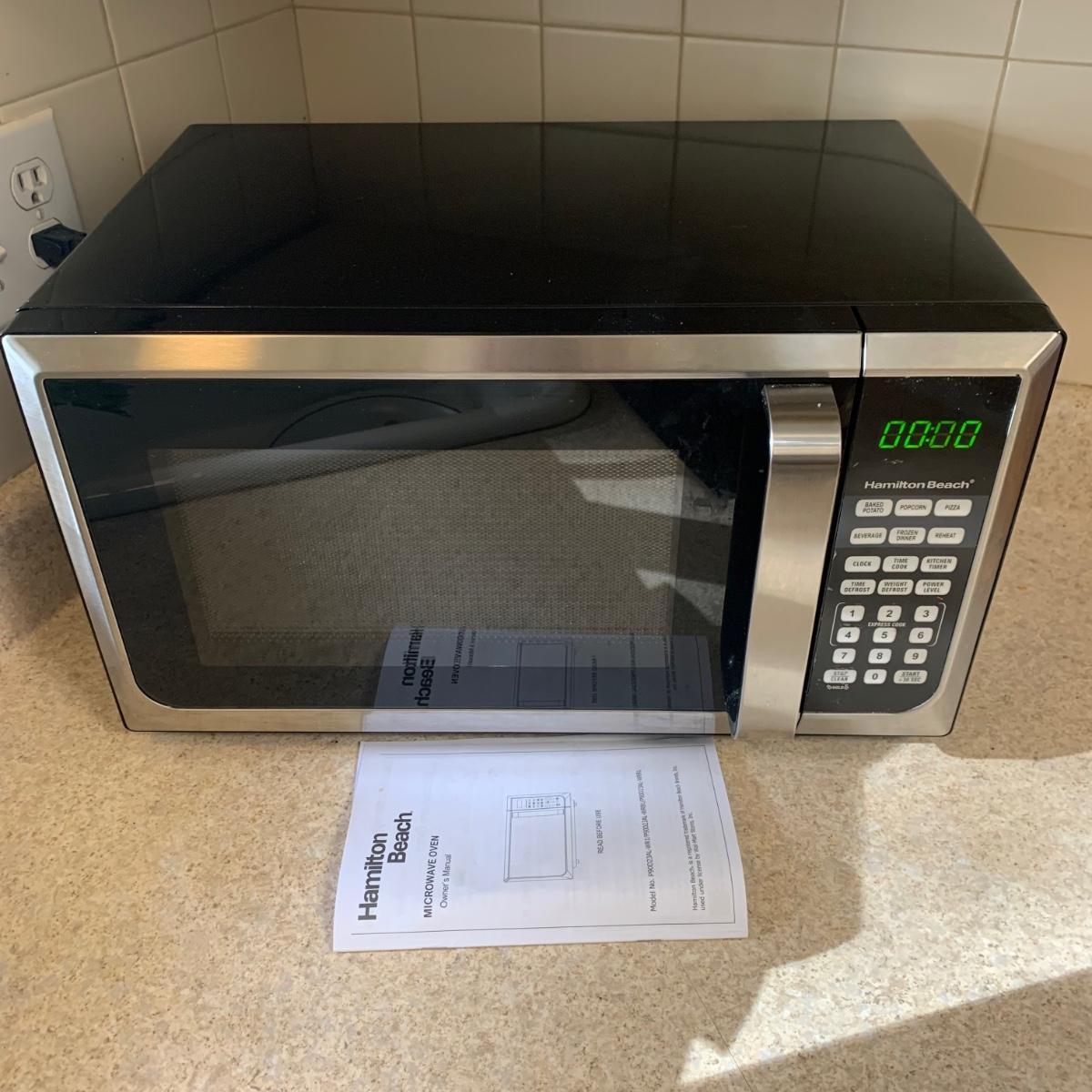 Hamilton Beach Microwave Oven, Model No. P90D23AL-WR1. In good condition and functioned when tested. It could use a good cleaning. Microwave measures 19” x 15” x 11”. Owner’s manual is included.