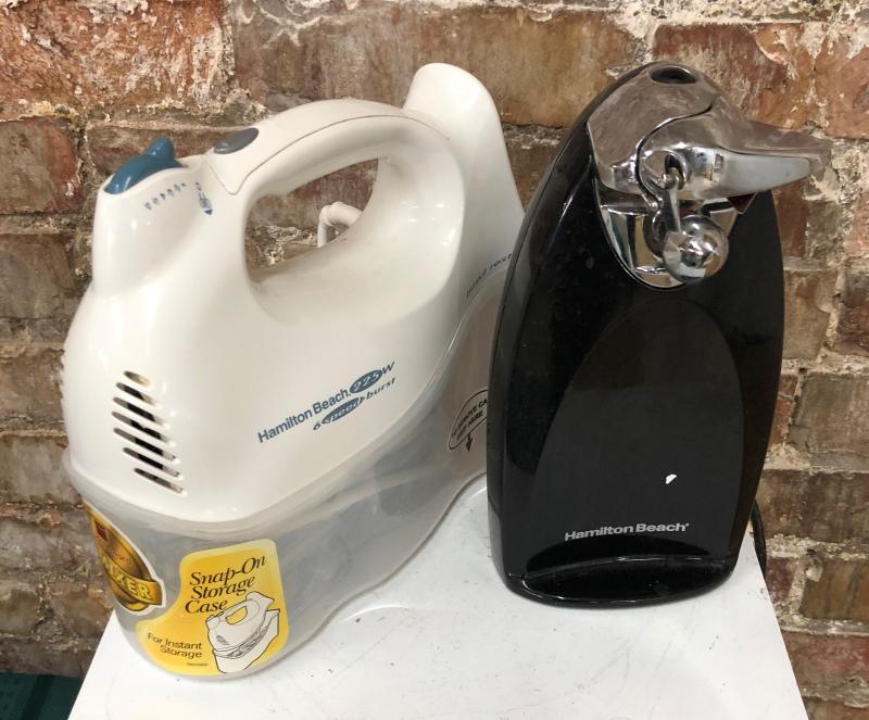 Little or no sign of use on these modern electric appliances..A .Hamilton Beach 225W six speed burst mixer and a Hamilton Beach automatic can opener...