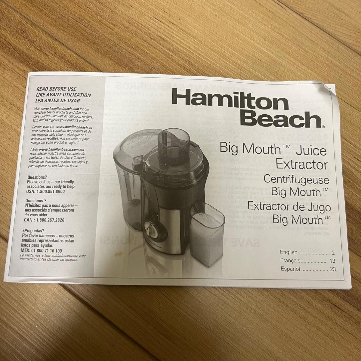 Two clean appliances in this lot that includes a Hamilton Big Mouth juicer and a Cuisinart chop/grind mini-prep. The Hamilton Beach juicer measures approximately 10" x 7" x 14"H. Both powered on when plugged in.
