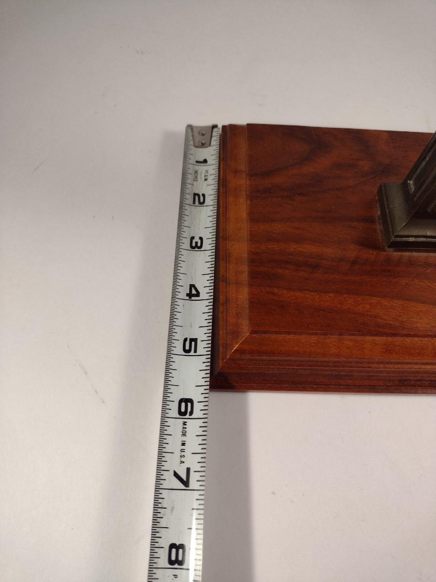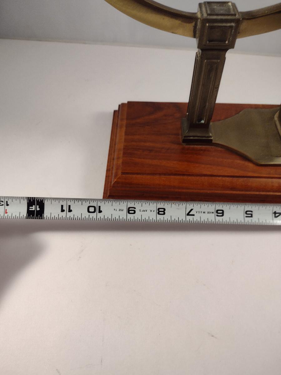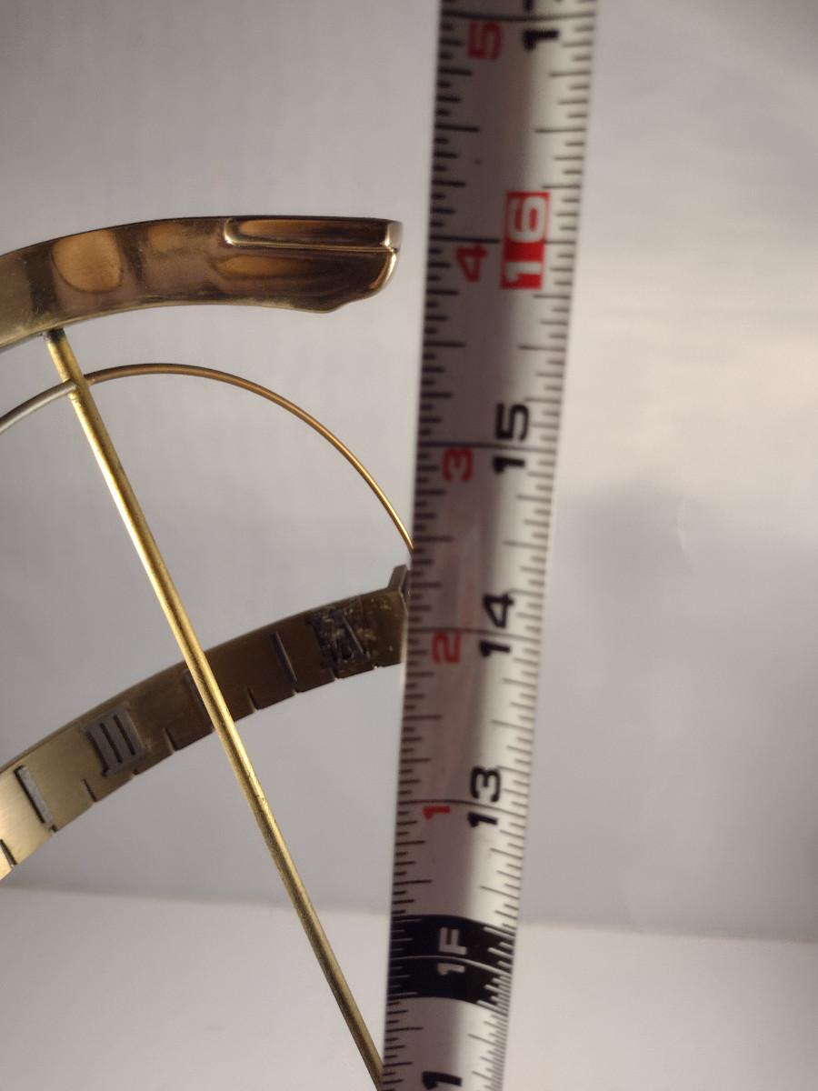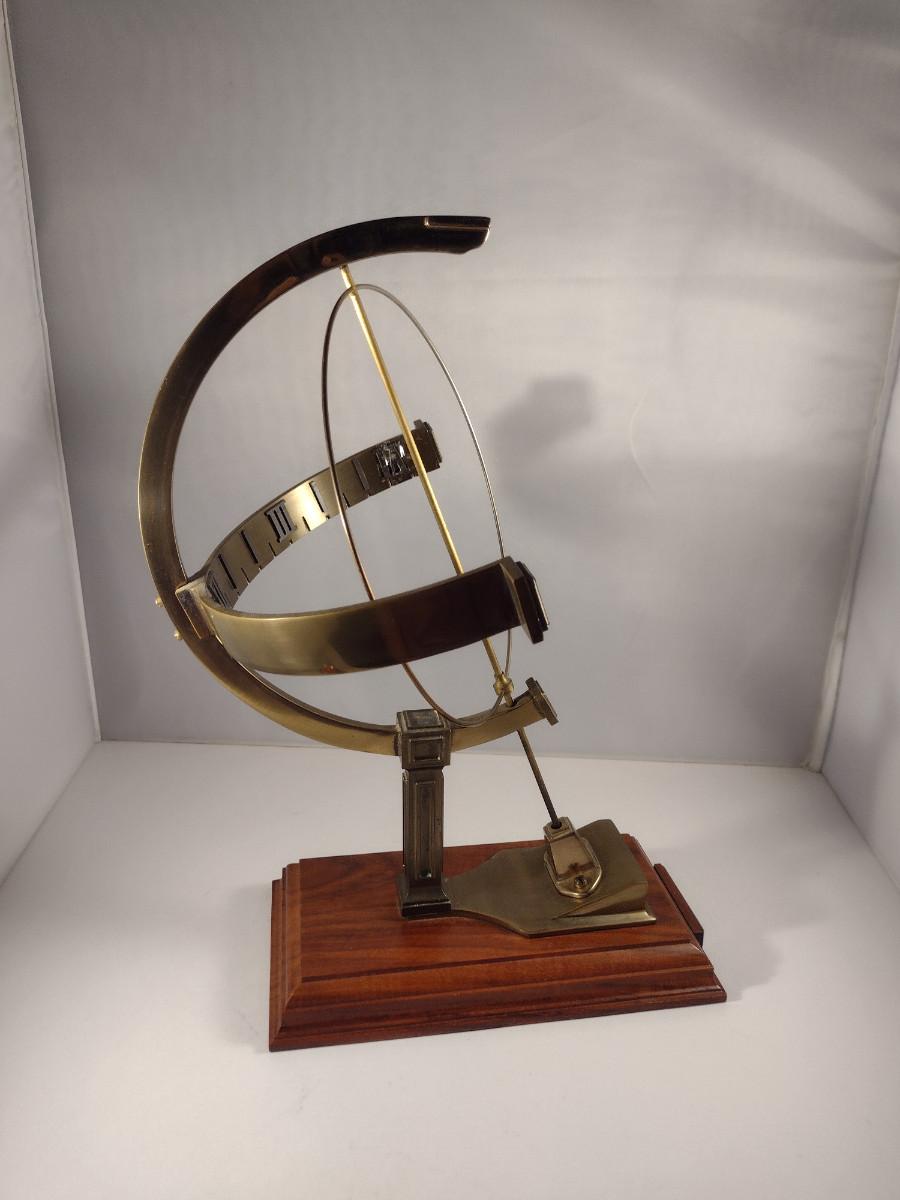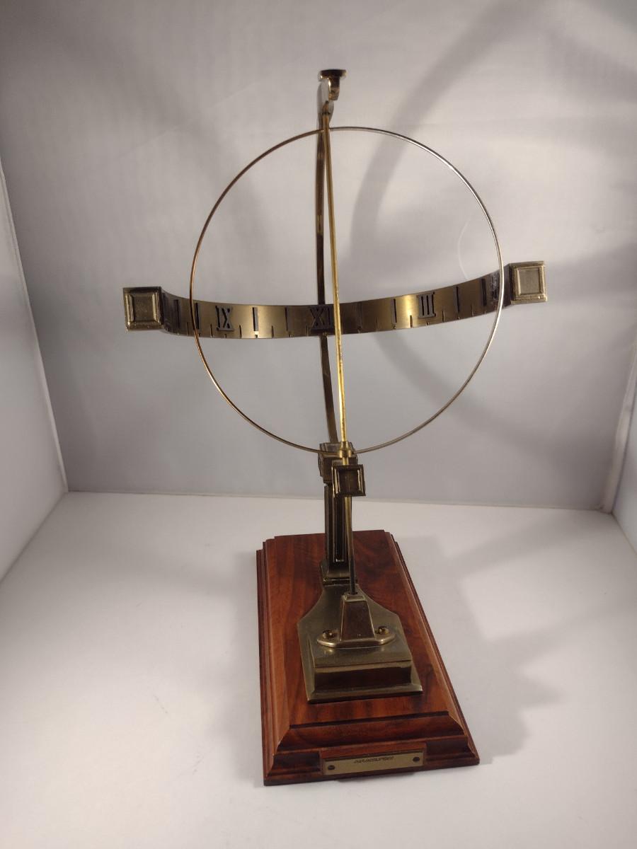 Hamilton Metal Armillary Design Table Top Clock with Wooden Base. Item is untested and measures approx 16" tall.