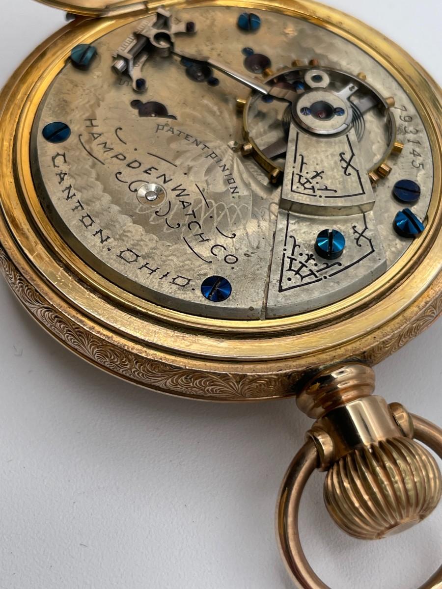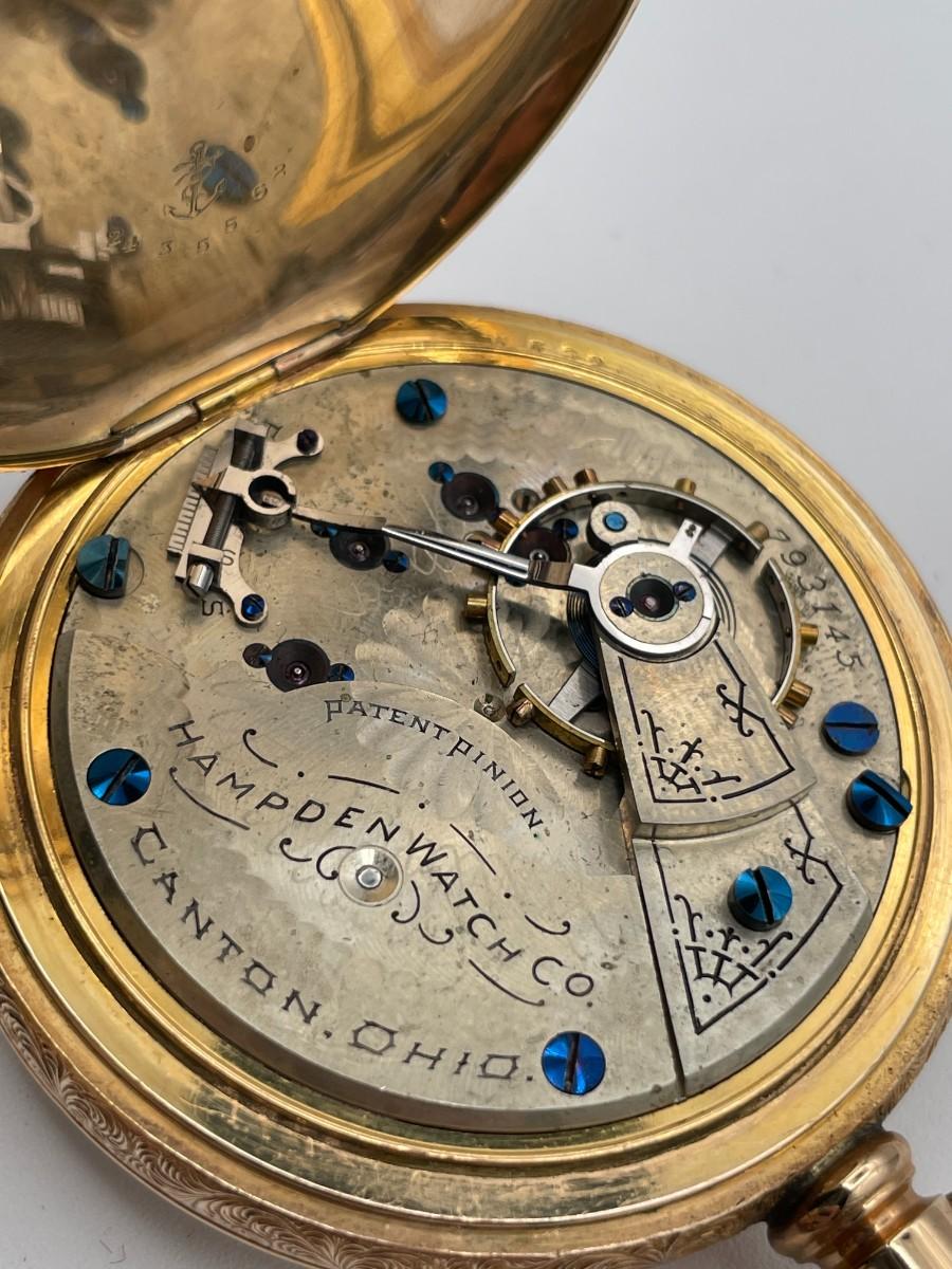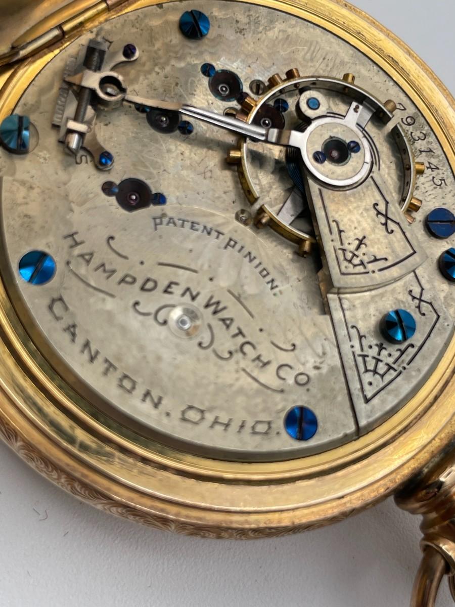 Hampden Pocket Watch, No. (793145), Size 18s, Prod Yr 1893. Case: Dueber 2435562, GF. Condition - Winder & watch are in working order. This is not a guarantee that all parts are original nor is the watch autheniticated.
