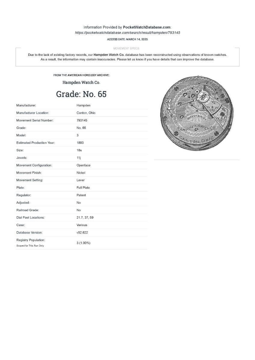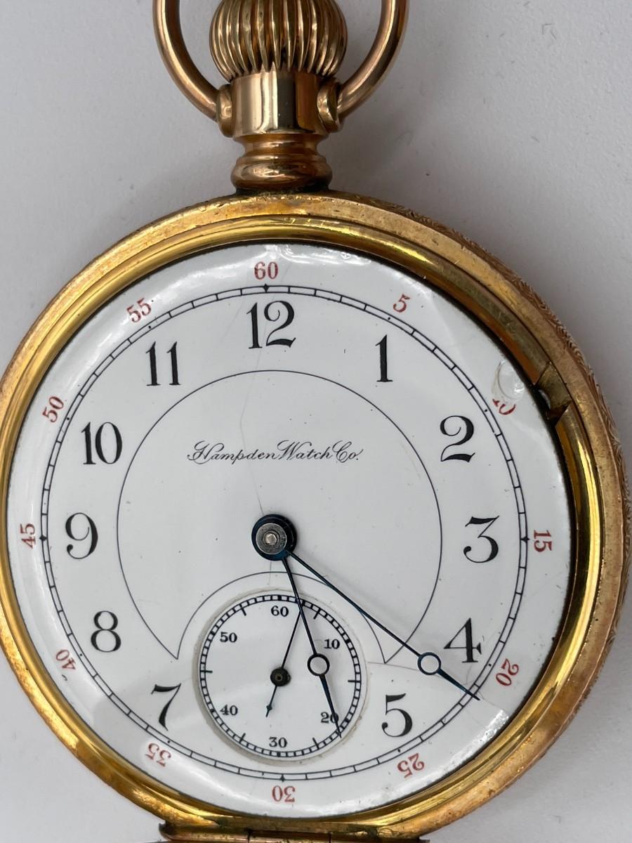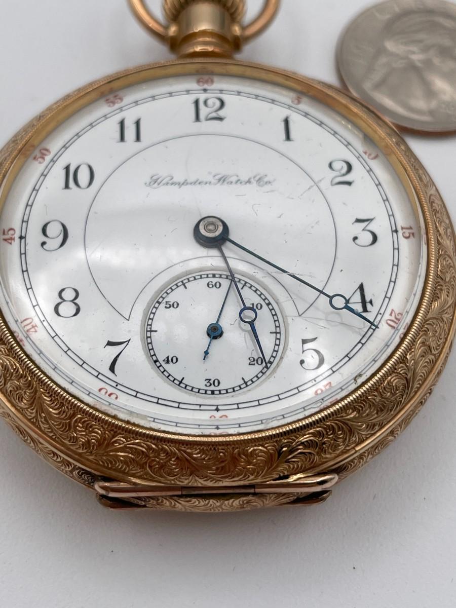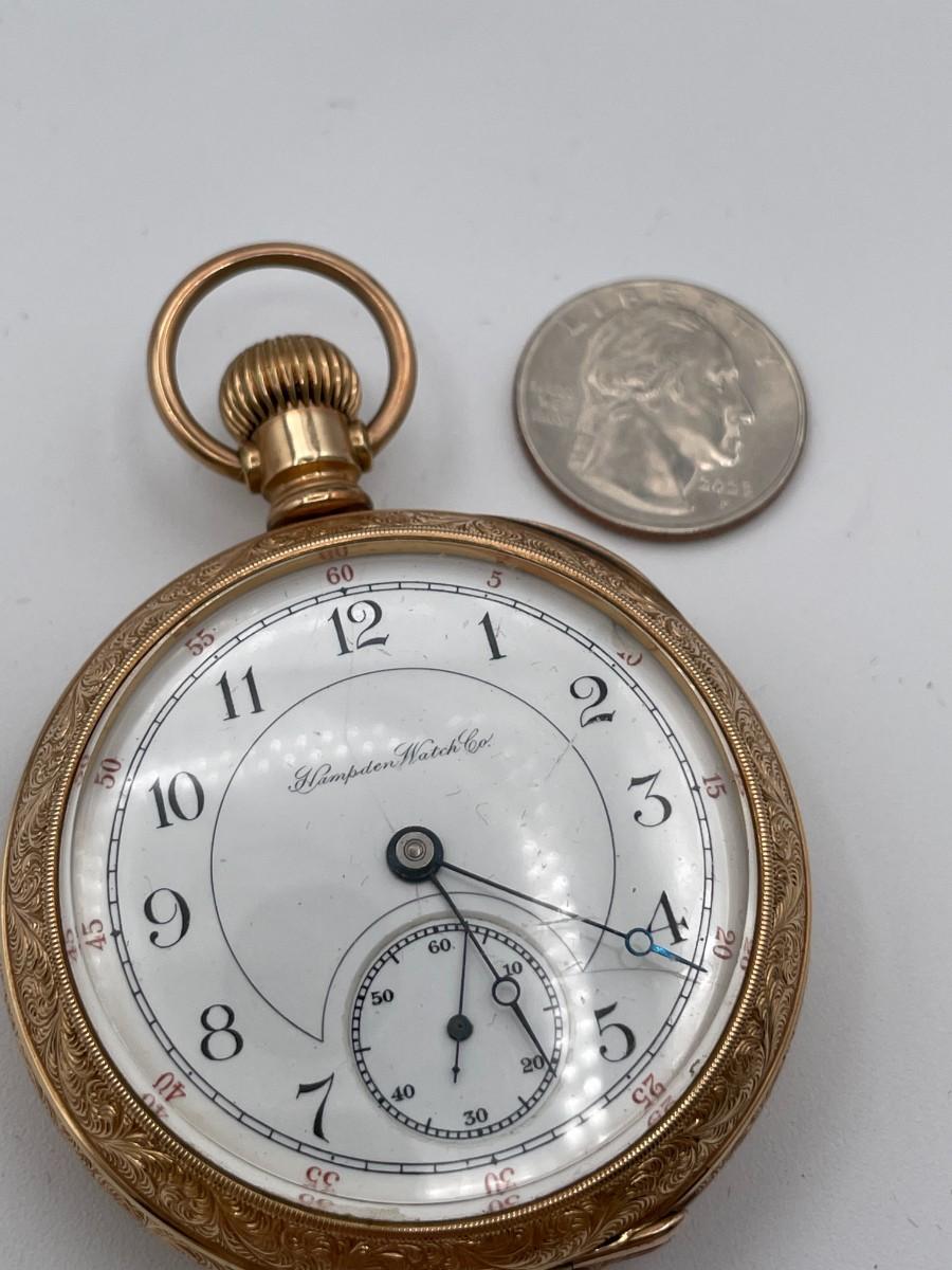 Hampden Pocket Watch, No. (793145), Size 18s, Prod Yr 1893. Case: Dueber 2435562, GF. Condition - Winder & watch are in working order. This is not a guarantee that all parts are original nor is the watch autheniticated.