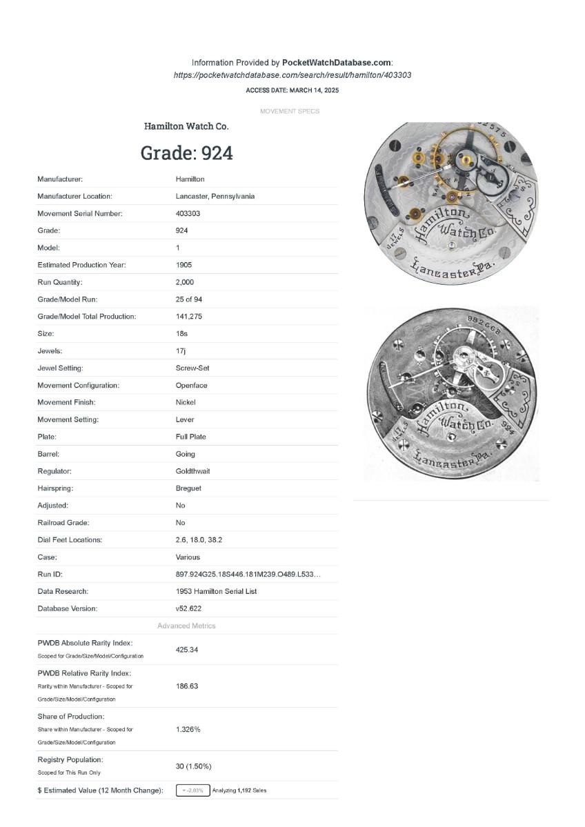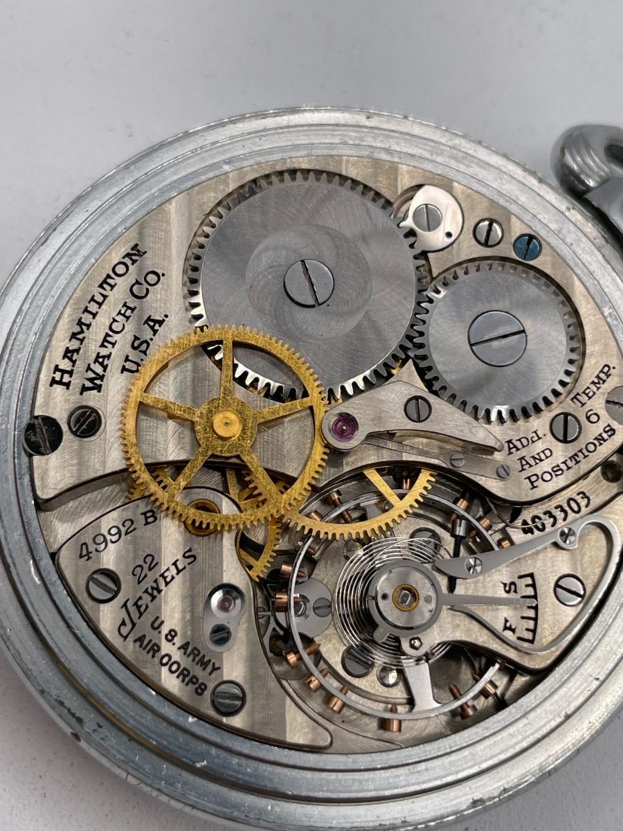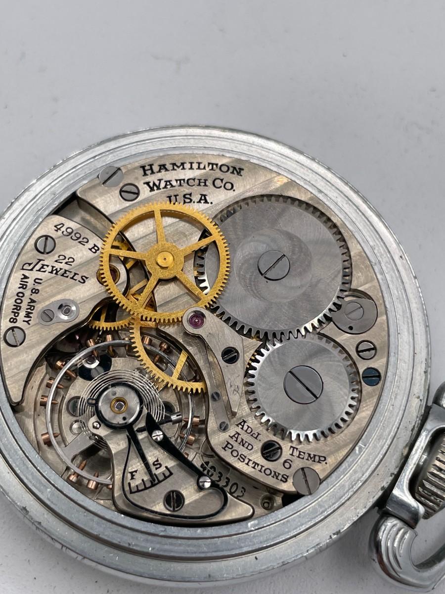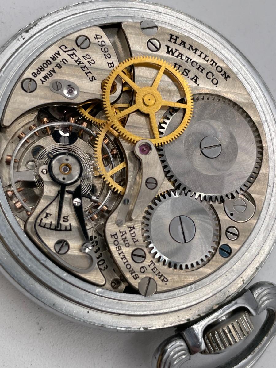 Hamilton Watch Co. GCT, No. (403303), Size 18s, Prod Yr. 1905, 22 Jewels, Engraved Us Army Air Corps. Case: Keystone No. 1330740, Base Metal, Engraved on back also. Condition - Winder & watch are in working order. This is not a guarantee that all parts are original nor is the watch autheniticated.