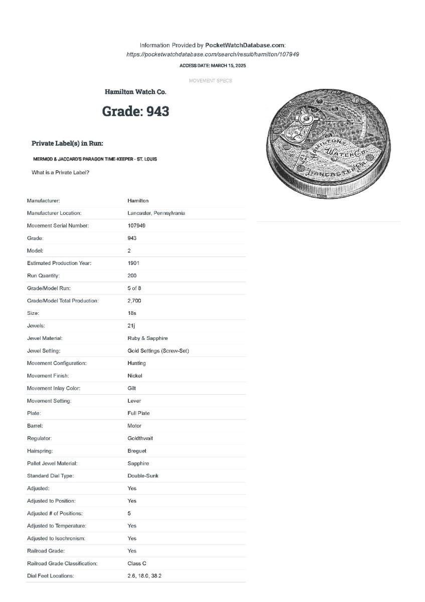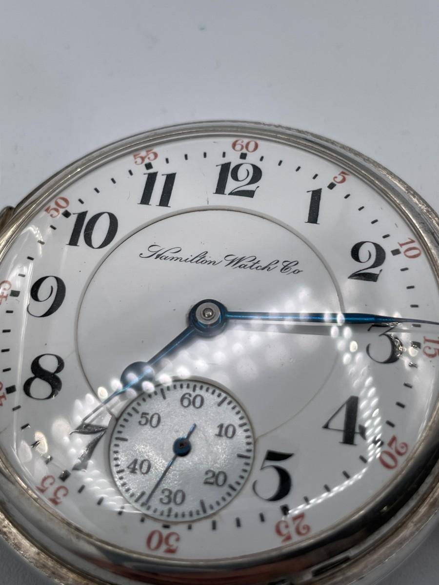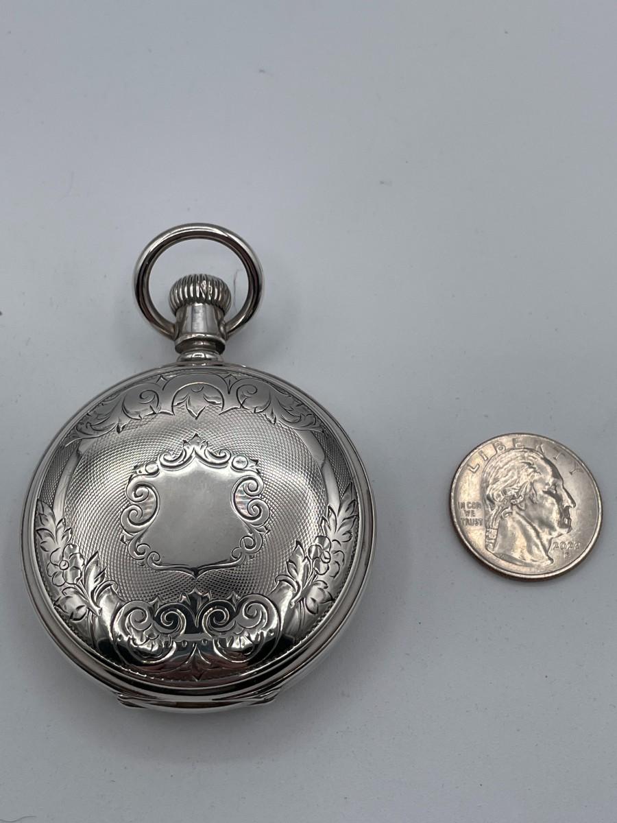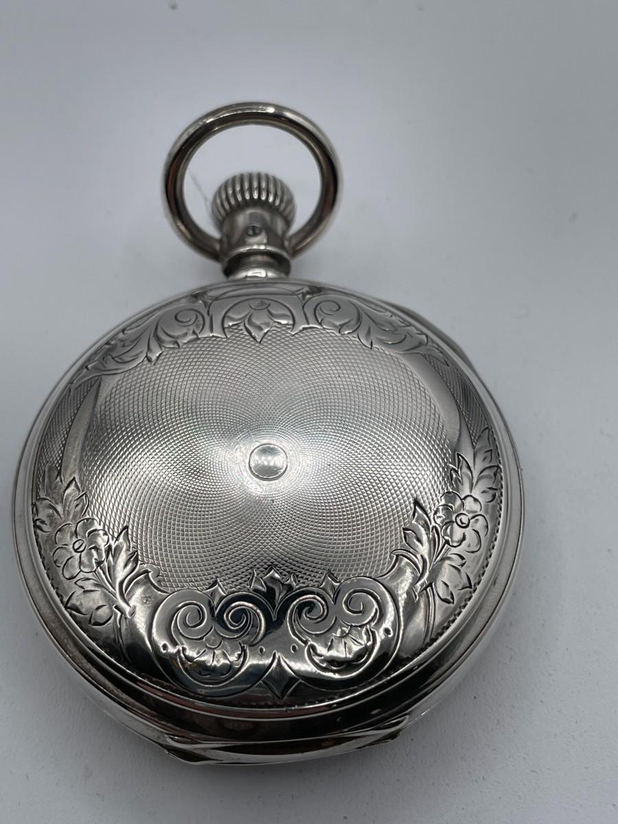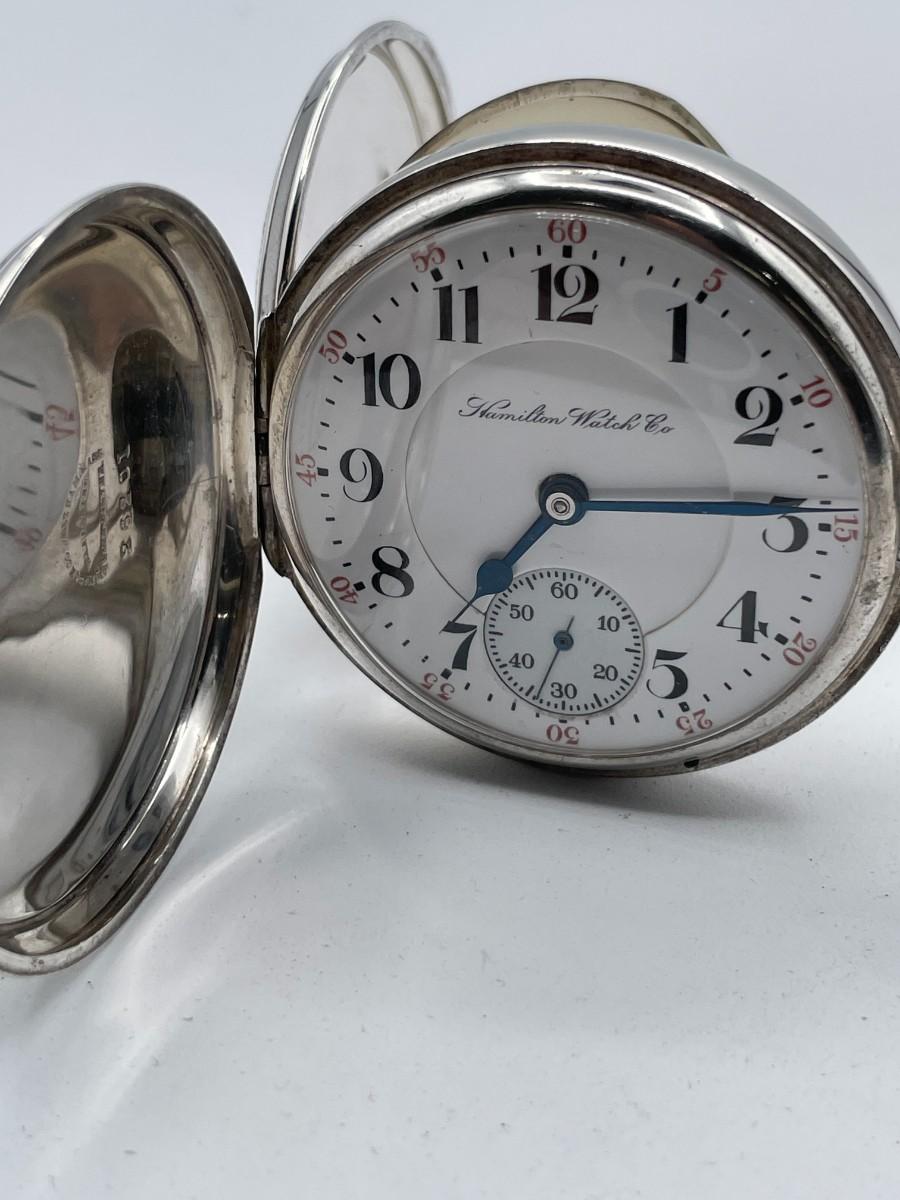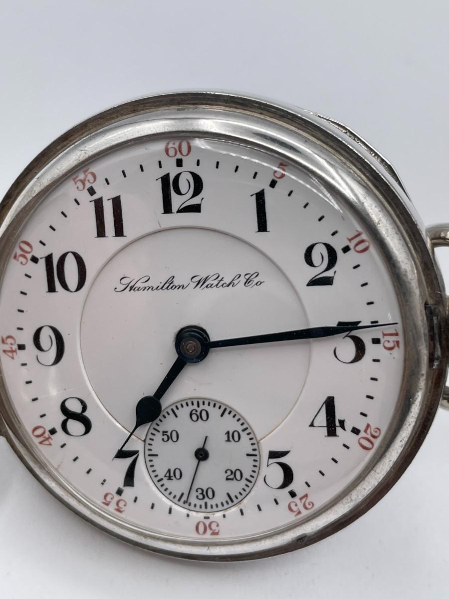 Hamilton Pocket watch No. (107949), Size 18S, Production Yr. 1901, 21 Jewels. Case: A M Watch CC, Coin Silver, No. 26201, Decorative case. Condition - Winder & watch are in working order. This is not a guarantee that all parts are original nor is the watch autheniticated.
