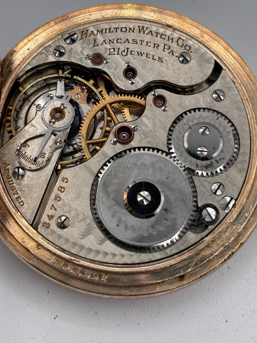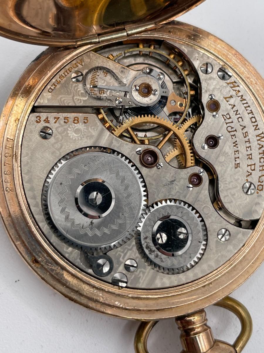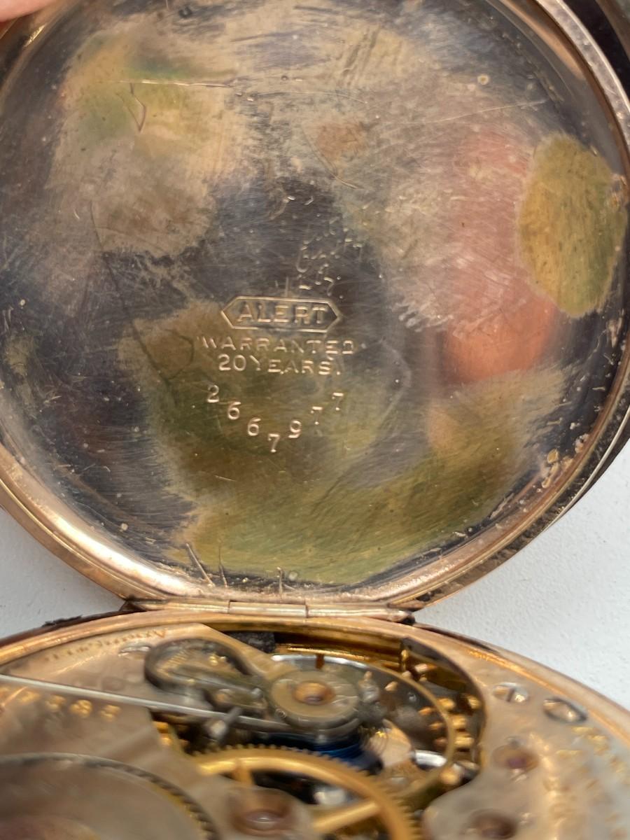 Hamilton Pocket watch No. (347585), Size 16S, Production Yr. 1906, 21 Jewels. Case: Alert Warrantied 20 years, No. 2667977 - No glass or Rim. Condition - Winder & watch are in working order. This is not a guarantee that all parts are original nor is the watch autheniticated.