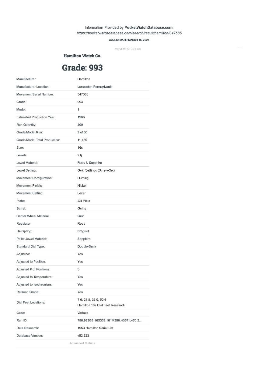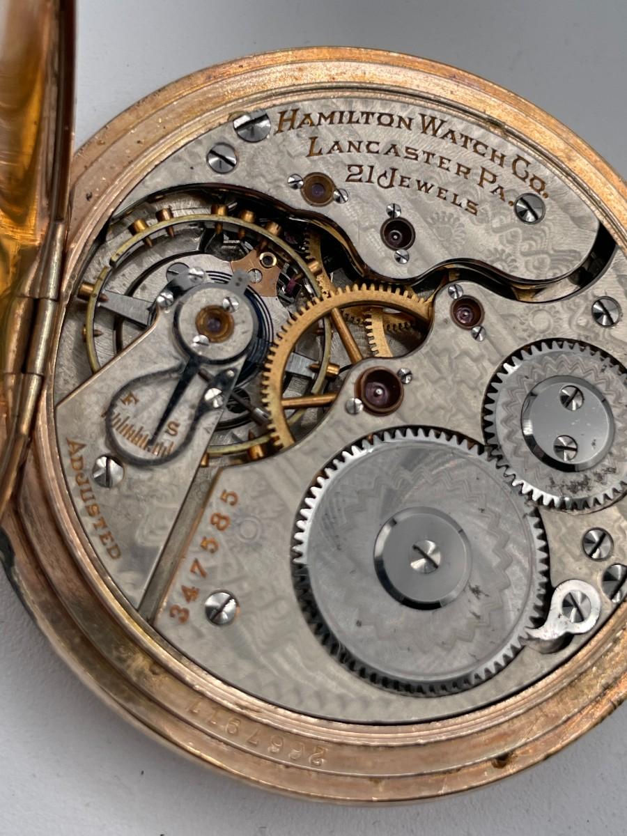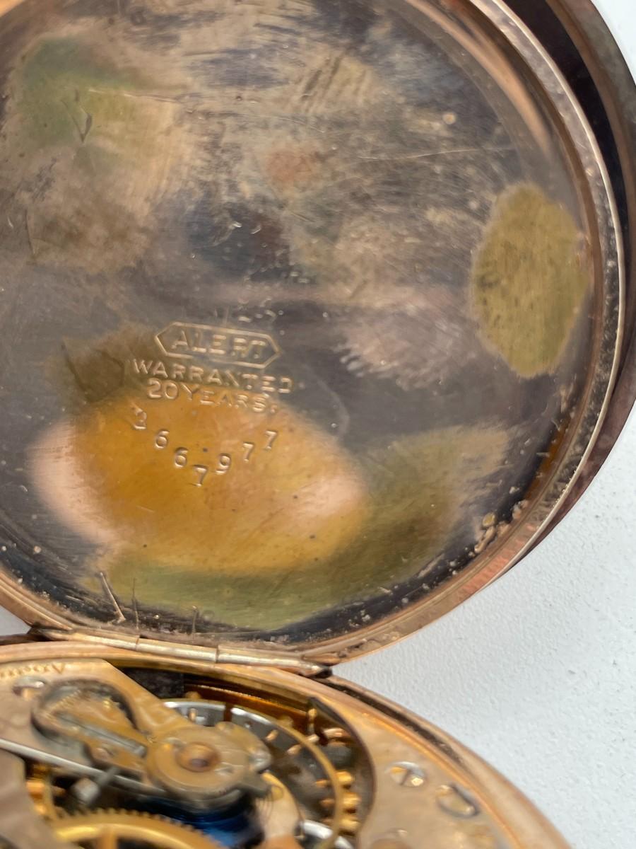 Hamilton Pocket watch No. (347585), Size 16S, Production Yr. 1906, 21 Jewels. Case: Alert Warrantied 20 years, No. 2667977 - No glass or Rim. Condition - Winder & watch are in working order. This is not a guarantee that all parts are original nor is the watch autheniticated.