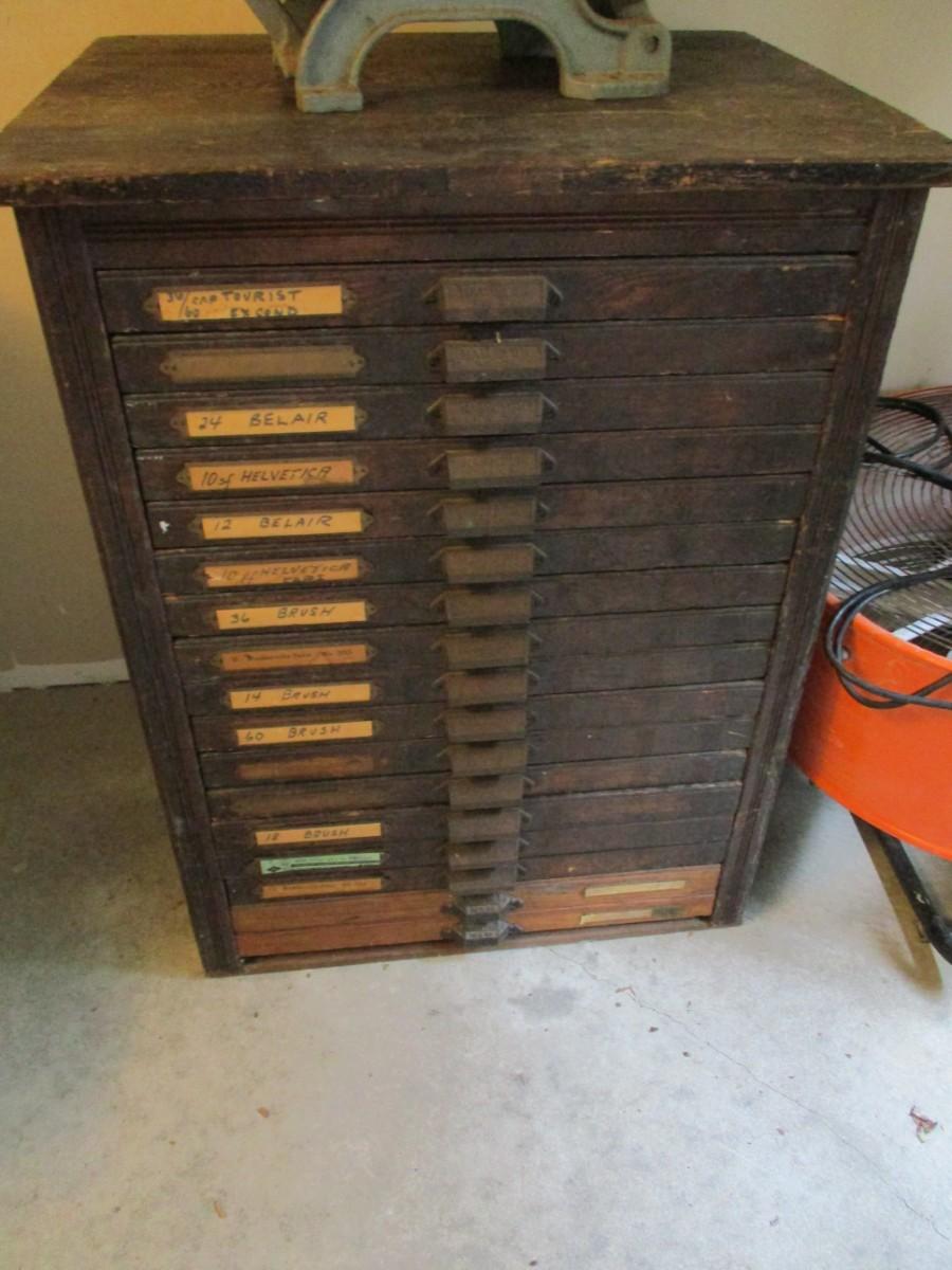 Rare Antique Hamilton Type Setter's Cabinet Complete with all Drawers includes Print Letters