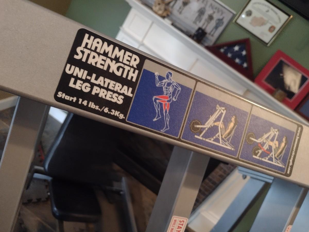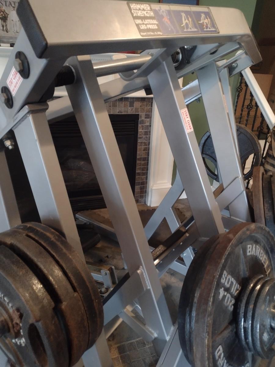 Hammer Strength Uni-Lateral Leg Press Plate Loaded Workout Station (Plates not included), Bring tools to breakdown to remove from home gymnasium. Level to driveway.