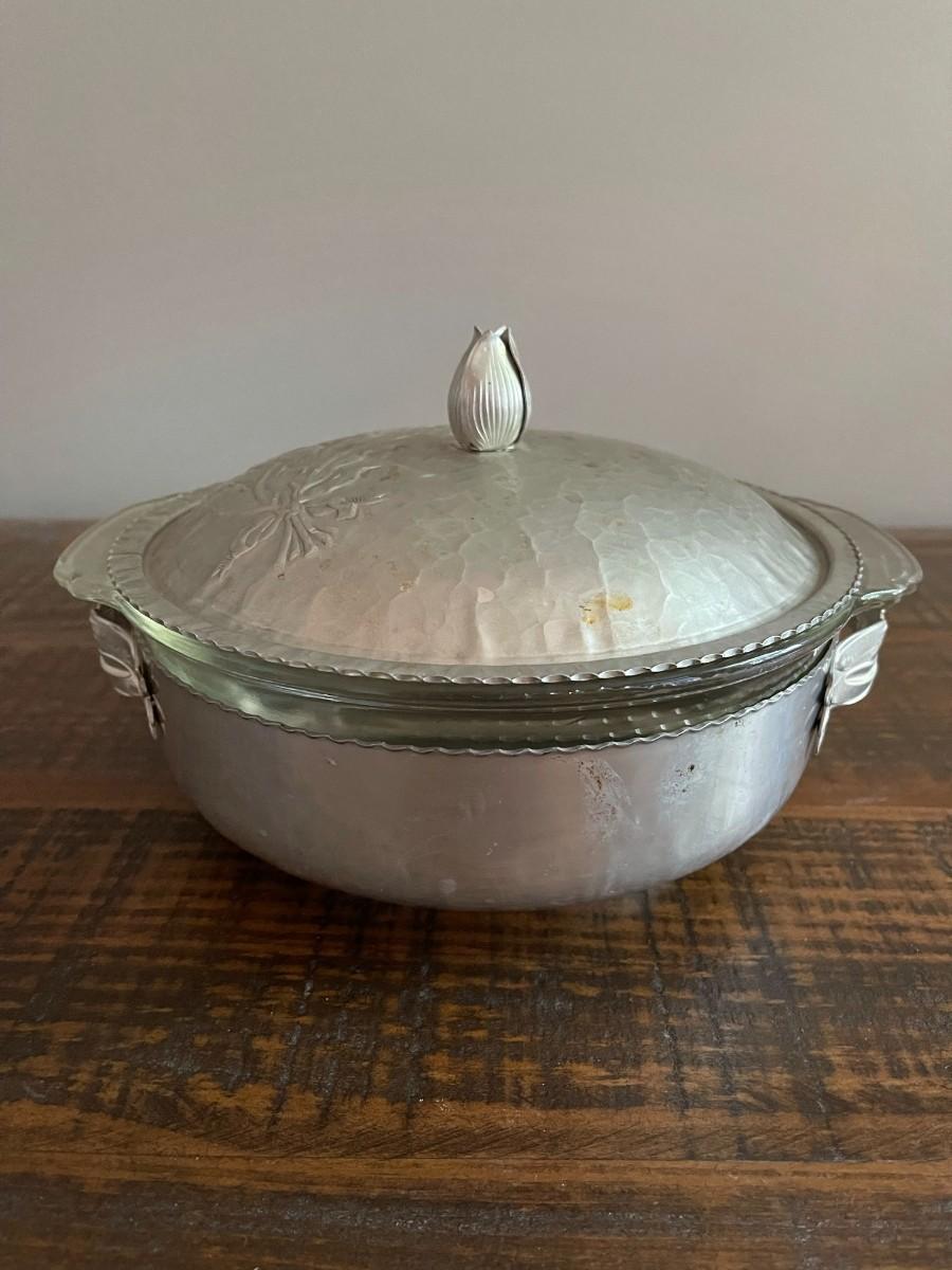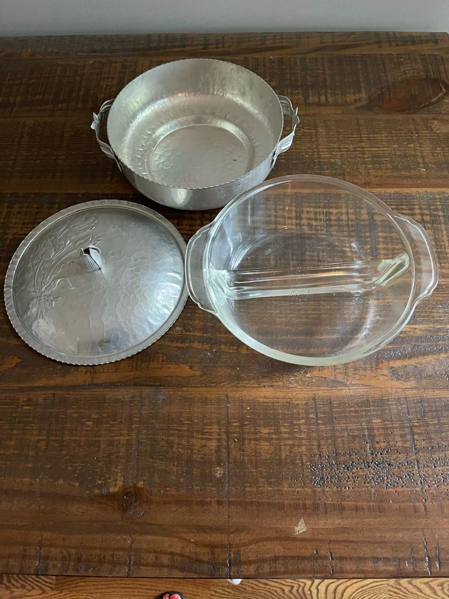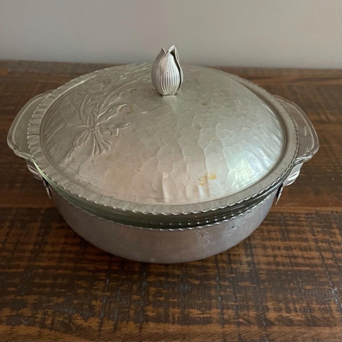 LOT 58 - Hammered Aluminum Covered Serving Dish - Glass insert