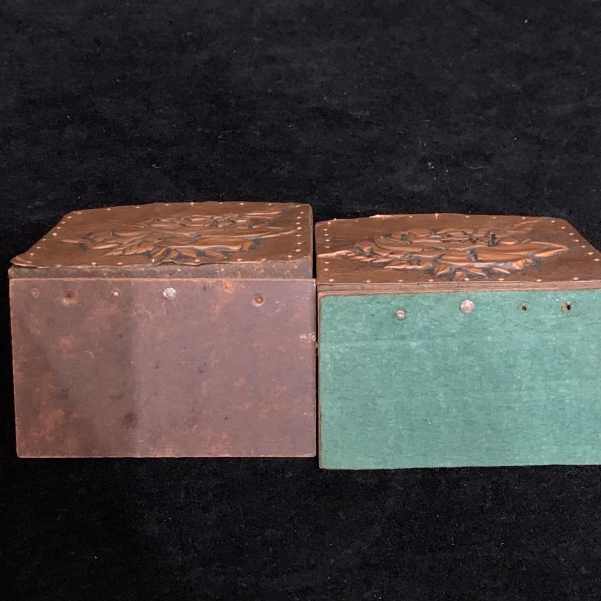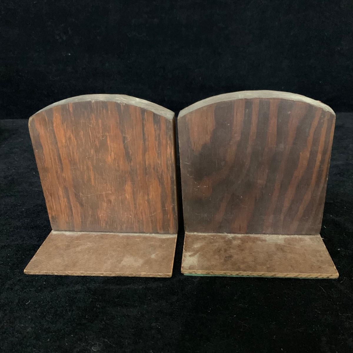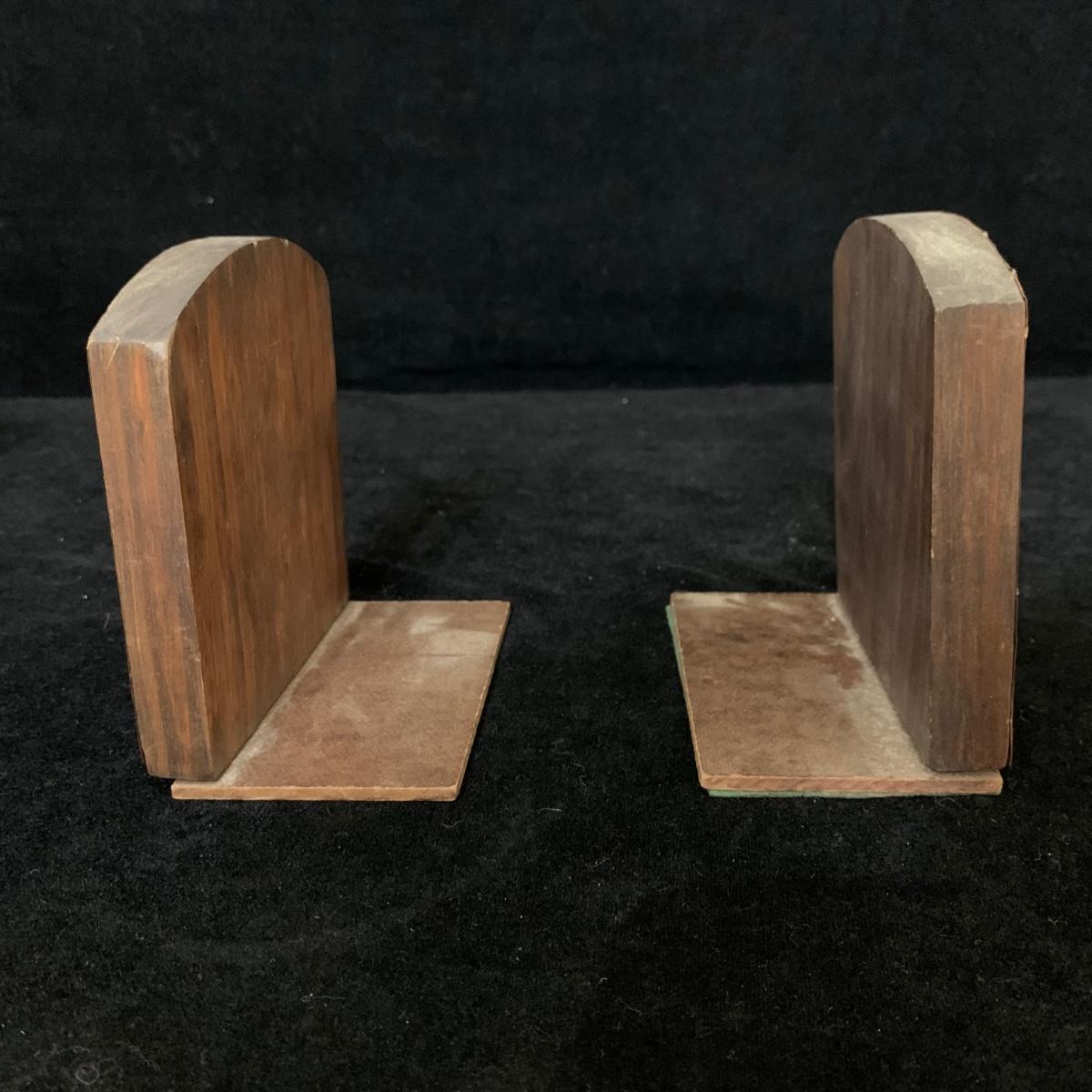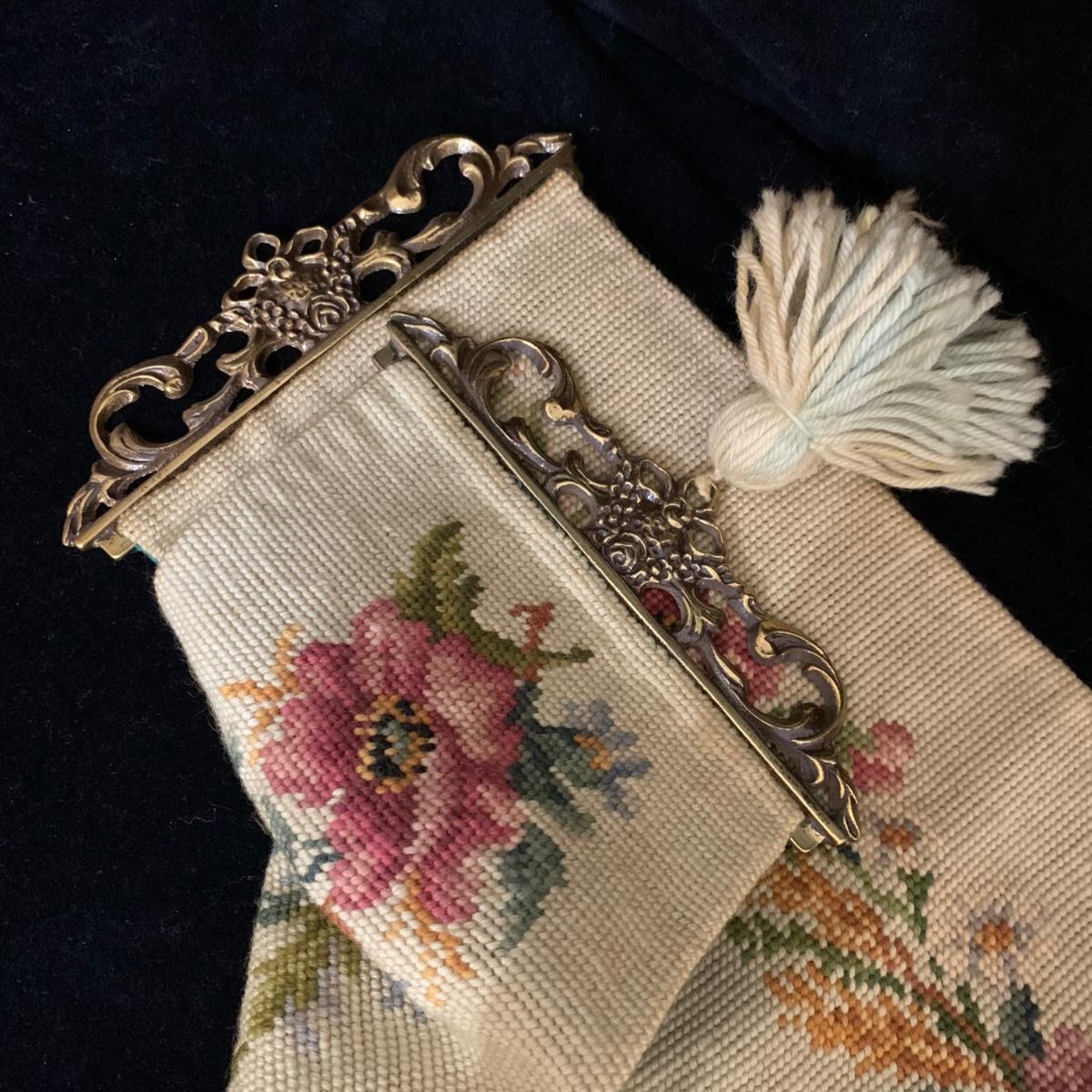Unique and lovely hammered copper rose bookends on wooden backs. Bookends are 5”x 5.5”. Their bases are loose and need small repairs to reattach sturdily. The long needlepoint wall hanging features a floral motif and has ornate brass pieces on the top and bottom, as well as a tassel attached to the bottom. The wall hanging measures 8” x 69”.