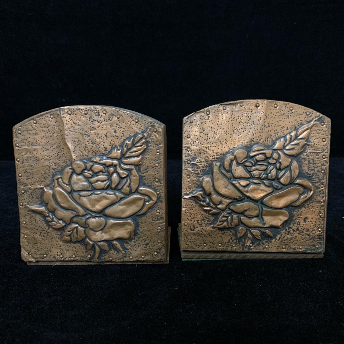 Hammered Copper Rose Bookends w/ Floral Needlepoint Wall Hanging (DR-HS)