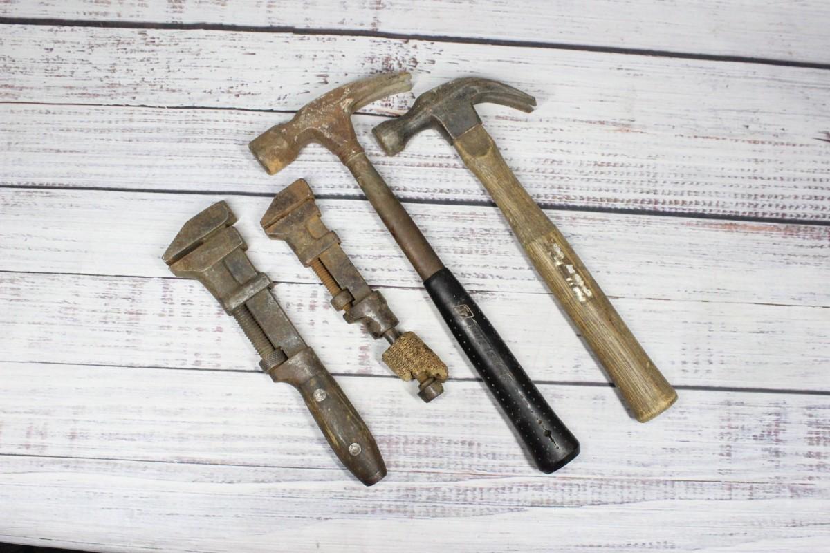 Hammers and Adjustable Wrench Lot, there's no significant damage to any of the tools and is in fair working condition. See pictures for sizing and for more details.