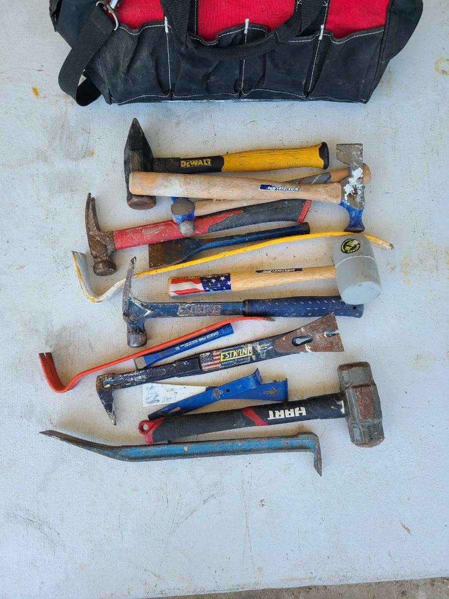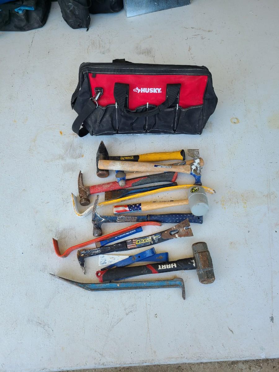 Hammers, Chisels and Prybar Lot w/ a Husky Carry Bag