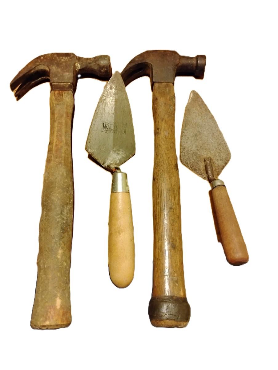 Hammers, trowel, and a crowbar
