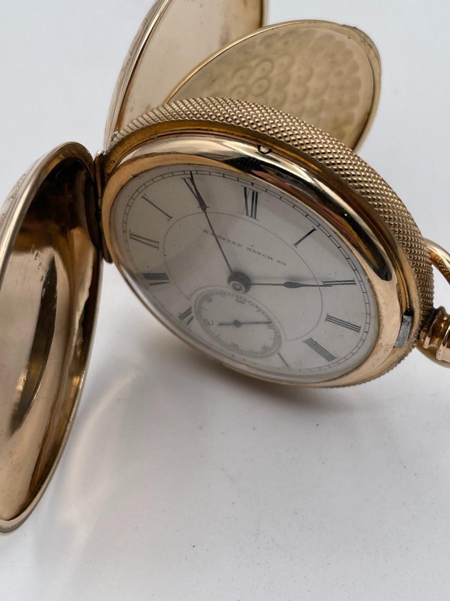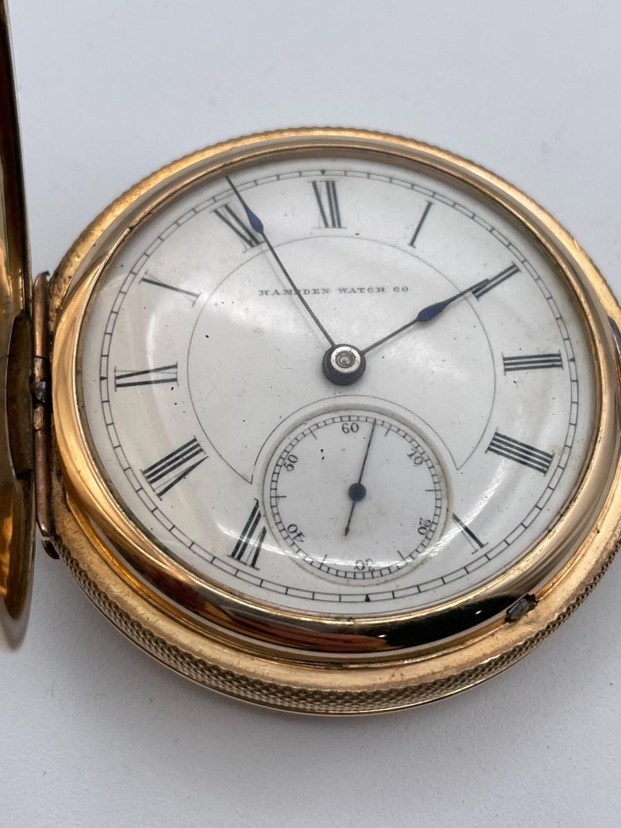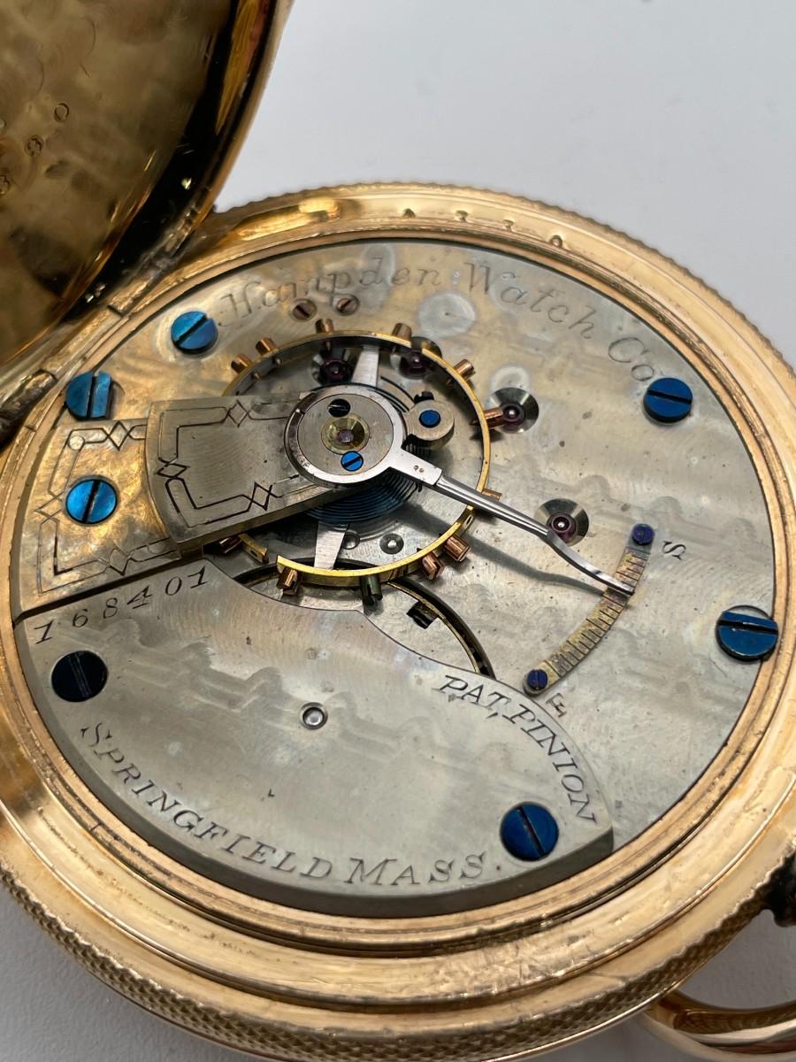 Hampden Watch Co. Pocket Watch, No. (168401), Size 18s, Prod Yr. 1880. Case: No. 94330, Acid Tested 14k. Condition - Winder & watch are in working order. This is not a guarantee that all parts are original nor is the watch autheniticated.