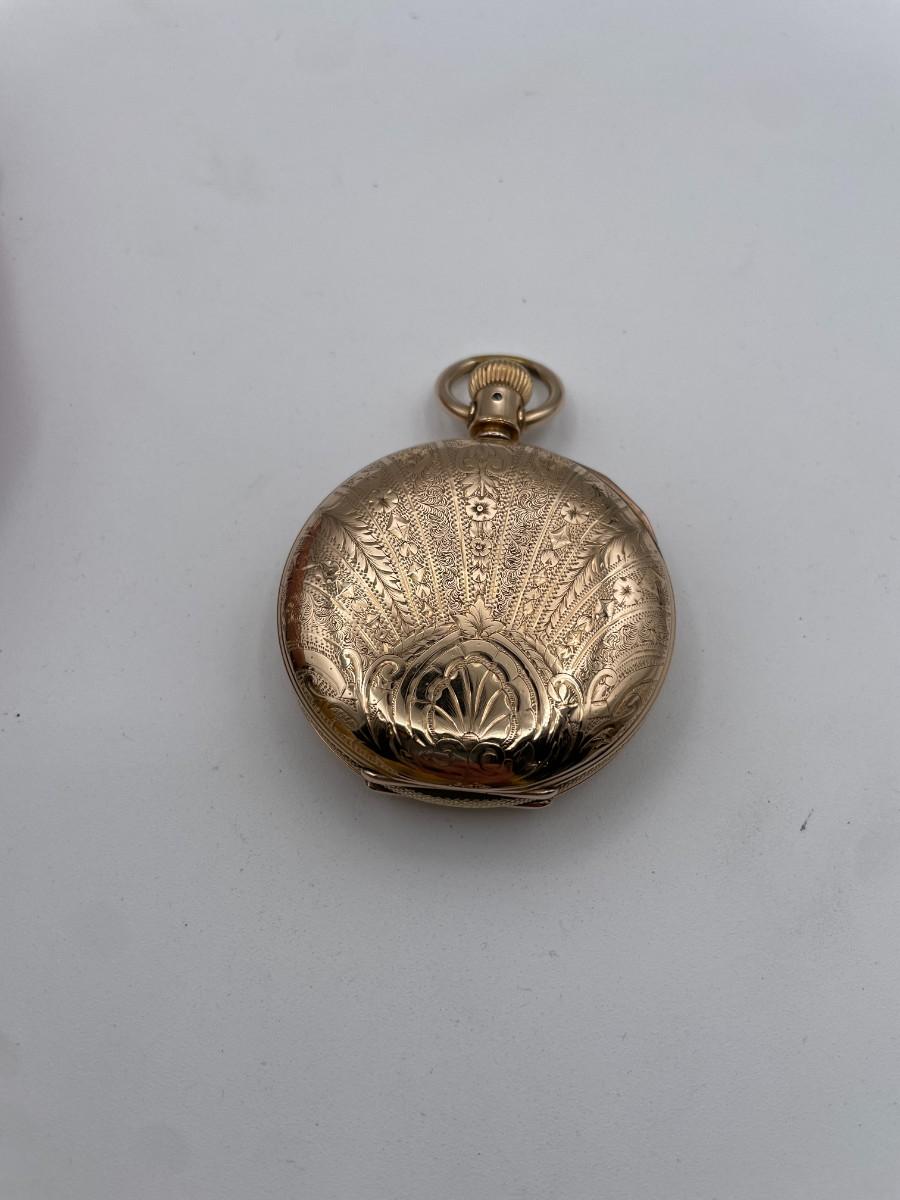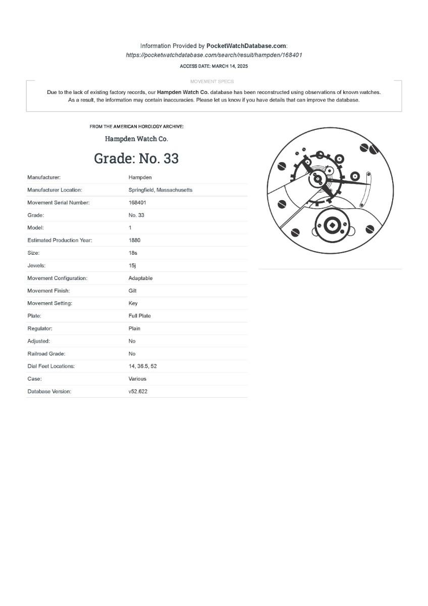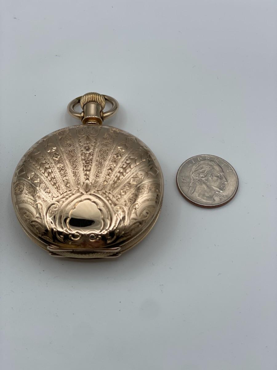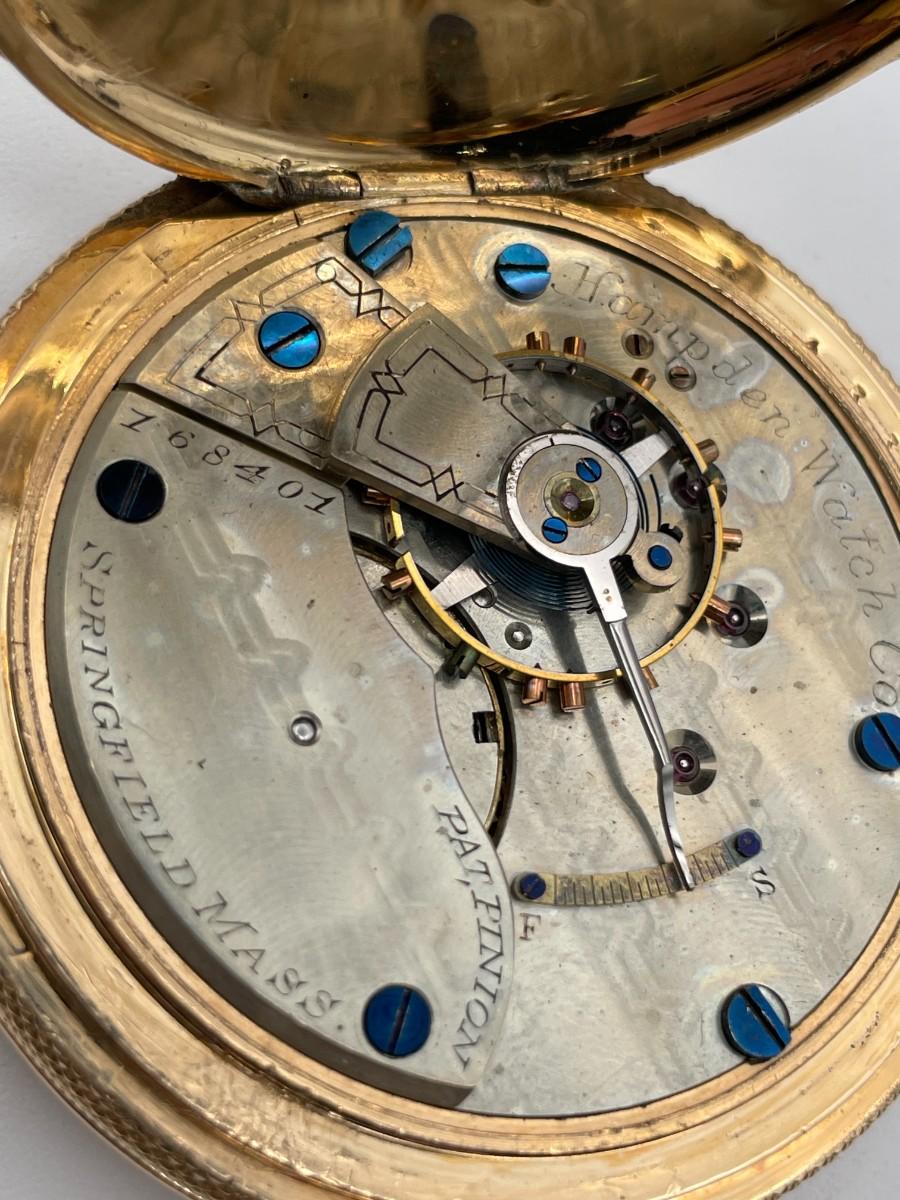 Hampden Watch Co. Pocket Watch, No. (168401), Size 18s, Prod Yr. 1880. Case: No. 94330, Acid Tested 14k. Condition - Winder & watch are in working order. This is not a guarantee that all parts are original nor is the watch autheniticated.