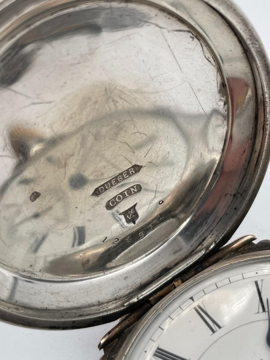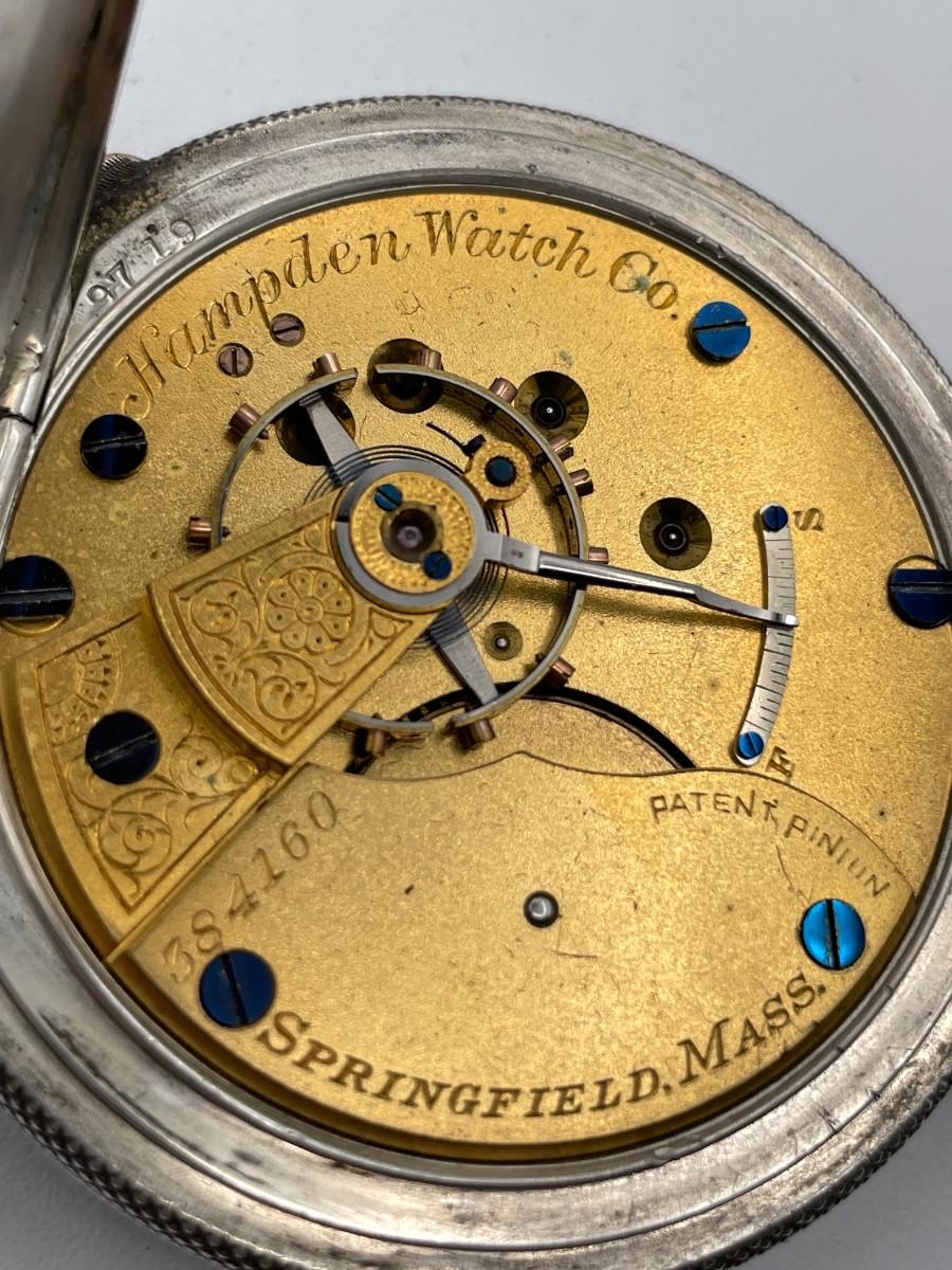 Hampden Watch Co. Pocket Watch, No. (384160), Size 18s, Prod Yr. 1885. Case: No. 1249719, Dueber Coin. Condition - Winder & watch are in working order. This is not a guarantee that all parts are original nor is the watch autheniticated.