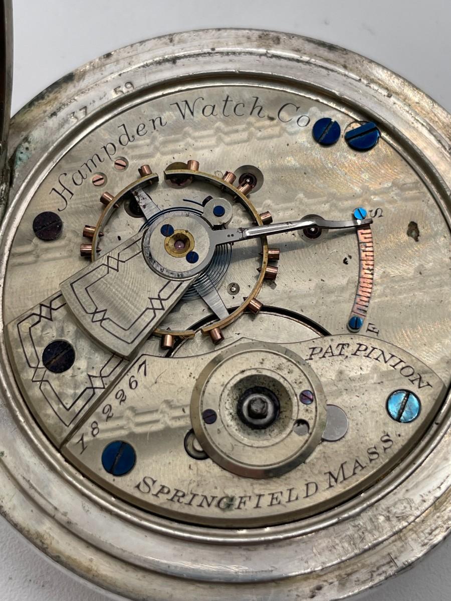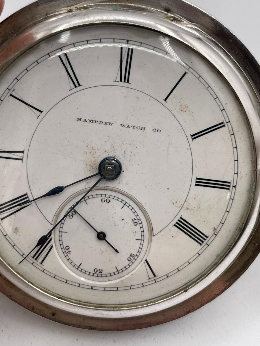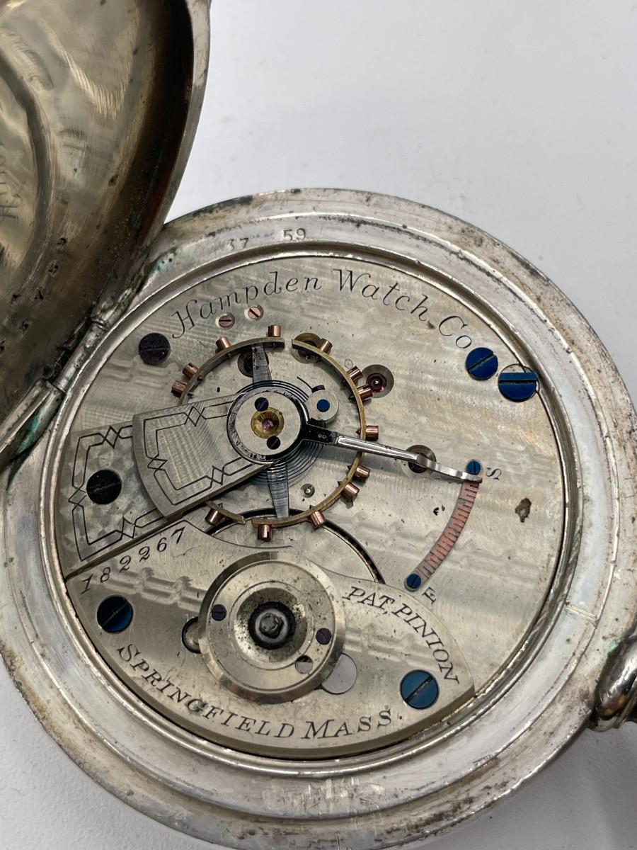 Hampden Watch Co. Pocket Watch, No. (182267), Size 18s, Prod Yr. 1880. Case: No. 433759, Newport Coin. Needs Key for winding. Condition - Winder & watch are in working order. This is not a guarantee that all parts are original nor is the watch autheniticated.