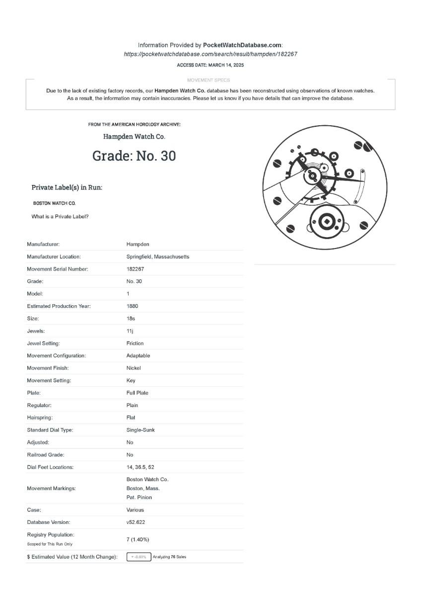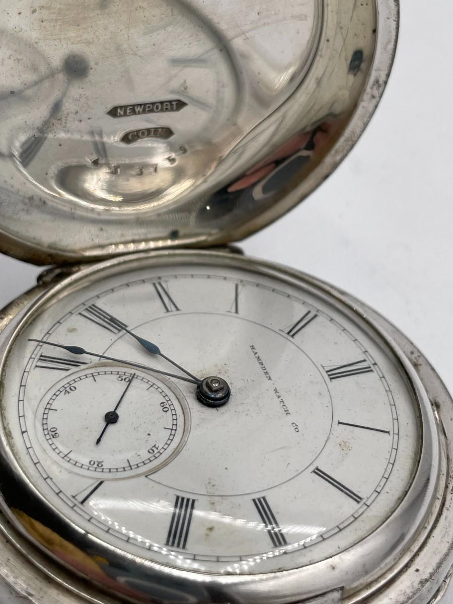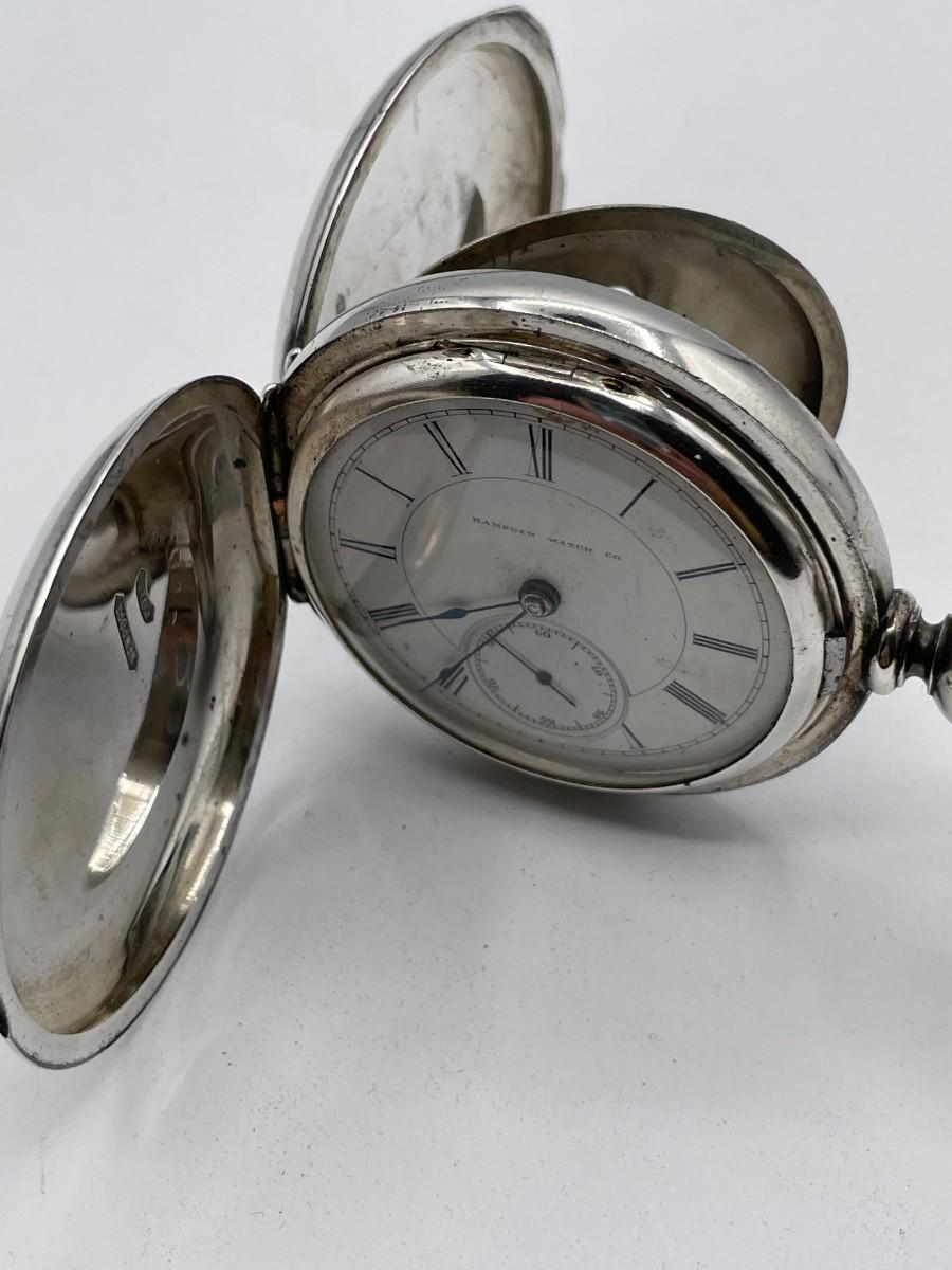 Hampden Watch Co. Pocket Watch, No. (182267), Size 18s, Prod Yr. 1880. Case: No. 433759, Newport Coin. Needs Key for winding. Condition - Winder & watch are in working order. This is not a guarantee that all parts are original nor is the watch autheniticated.