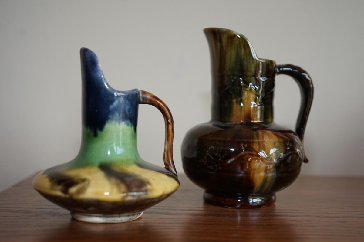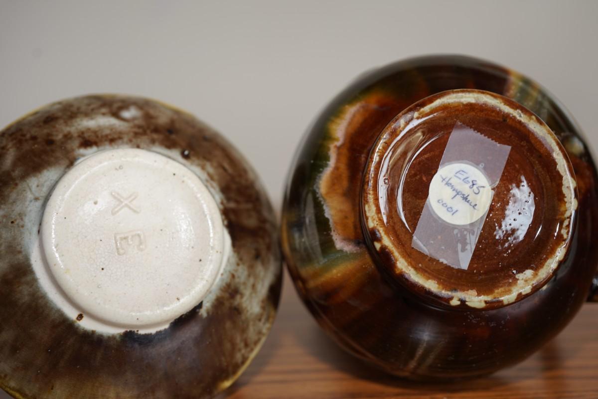 Early 1900's -1920's of the arts and crafts period antique New Hampshire pottery handled vases two