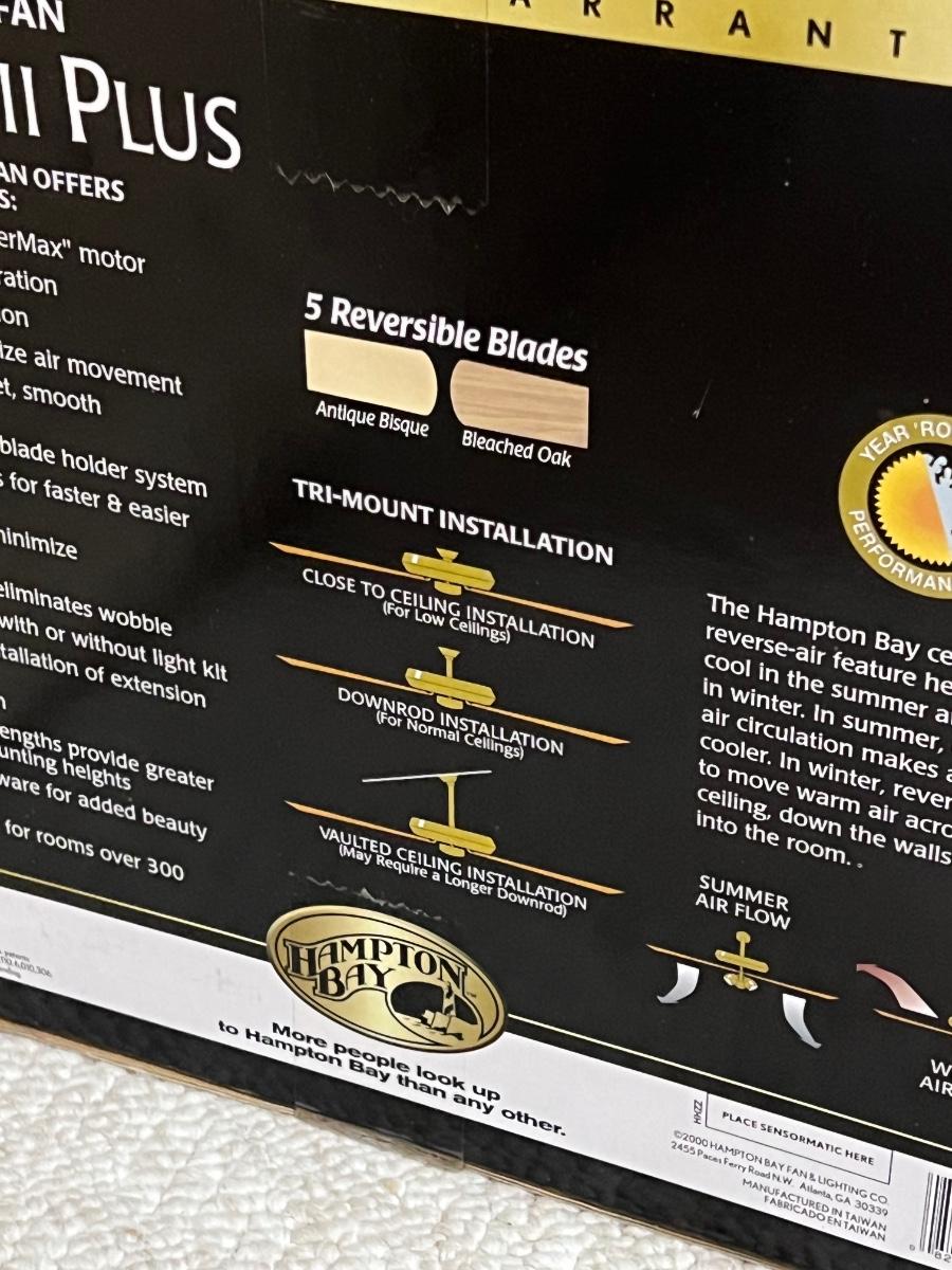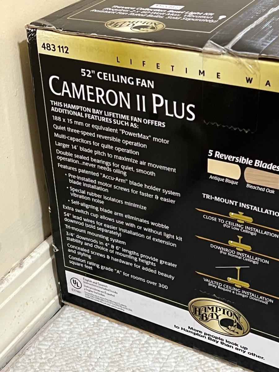 HAMPTON BAY ~ Cameron II Plus ~ 52" Indoor Ceiling Fan ~ NIB