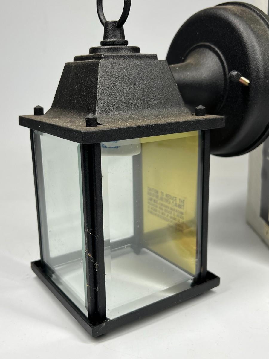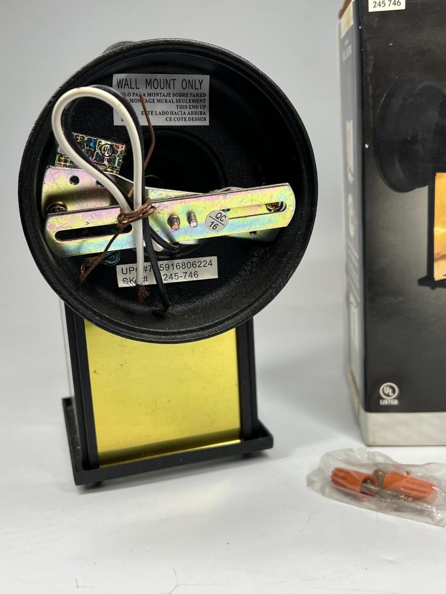 Uses 60W standard bulb. Looks to be new in box, never installed. There is no significant damage to the glass or the lamp frame and is in overall good useable condition. Check pictures for more details, has not been checked for completness.