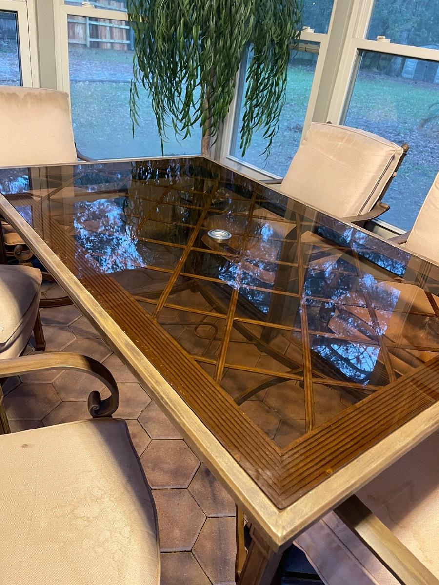 HAMPTON BAY ~ Outdoor Glass Top Table & 6 Chairs ~ *See Details