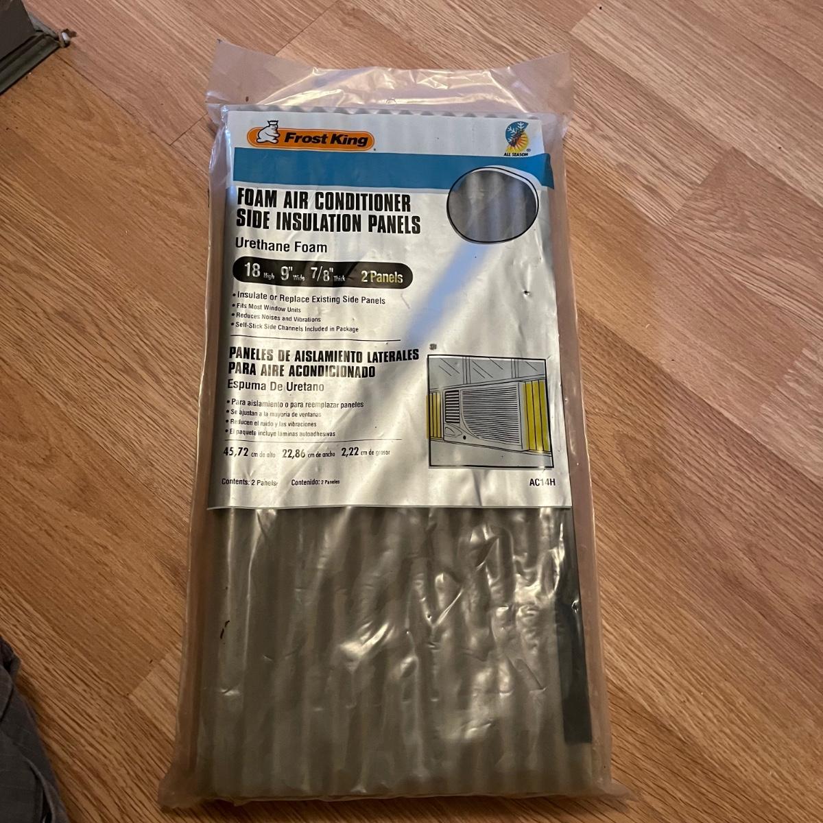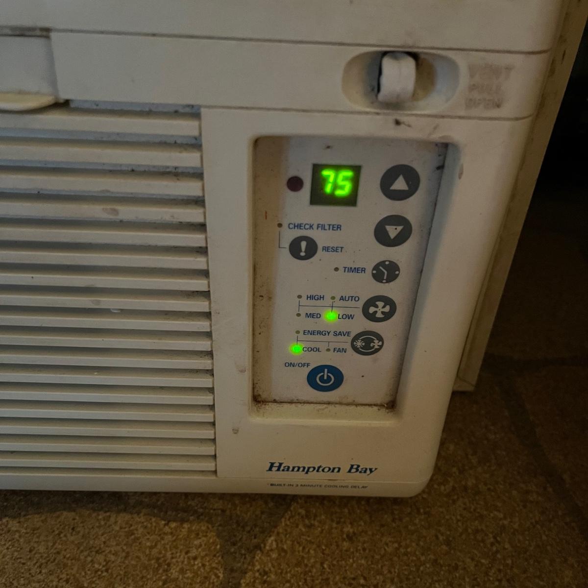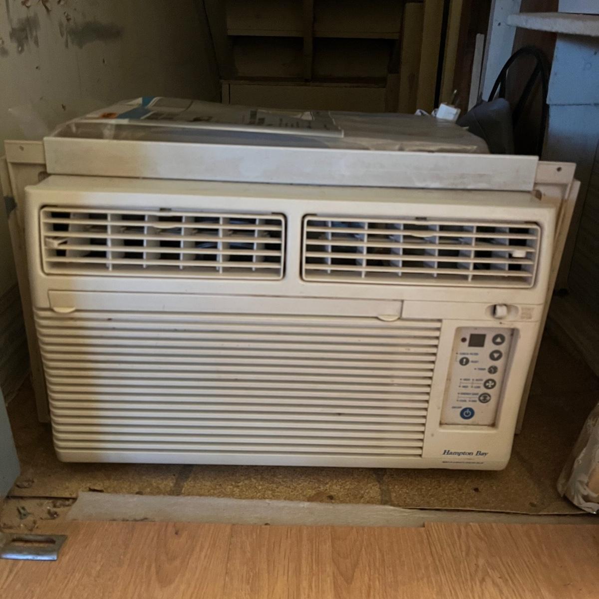 Lot includes a Hampton Bay window air conditioning unit that powered on when tested. Also includes foam side insulation panels. A/C unit measures 18” x 20” x 14”.
