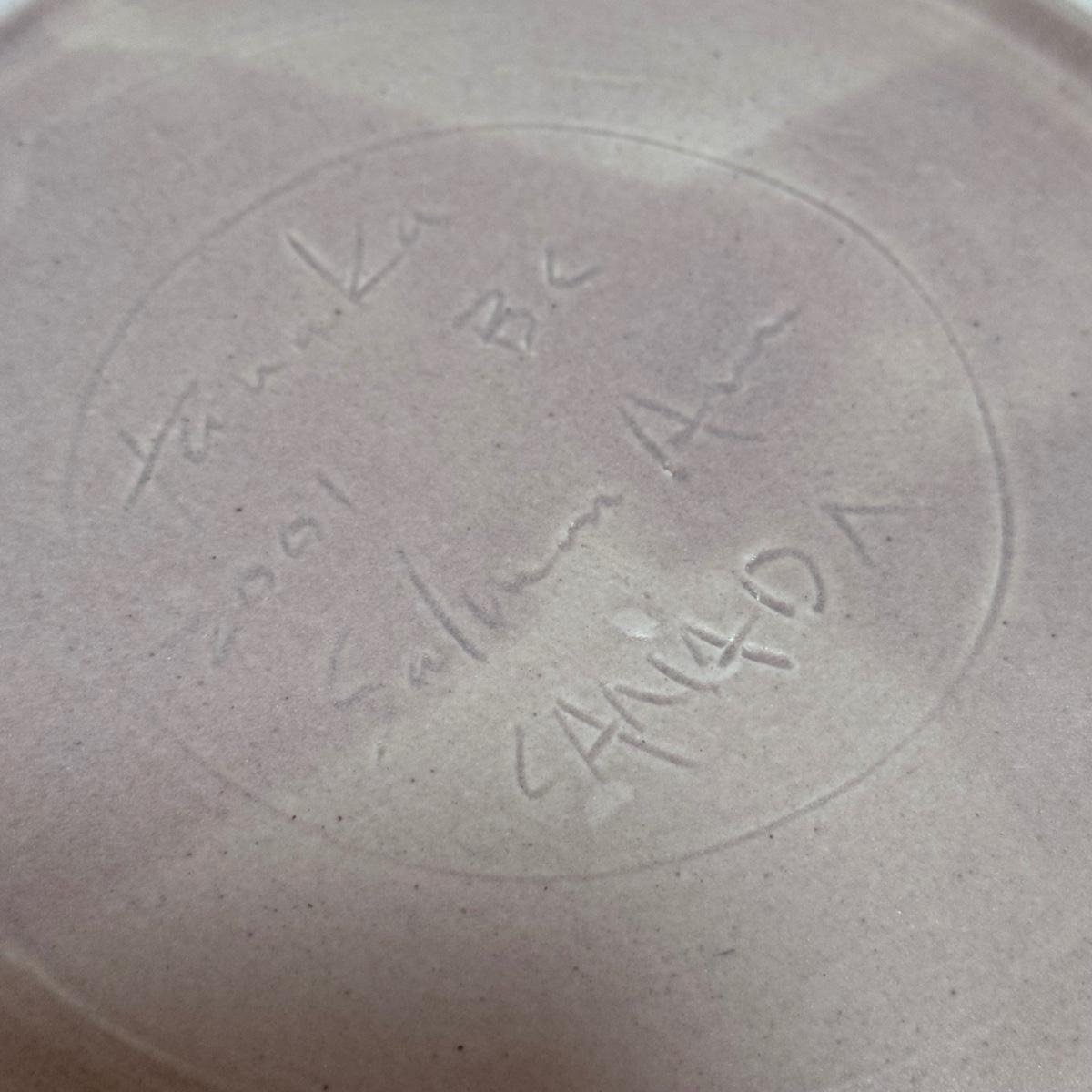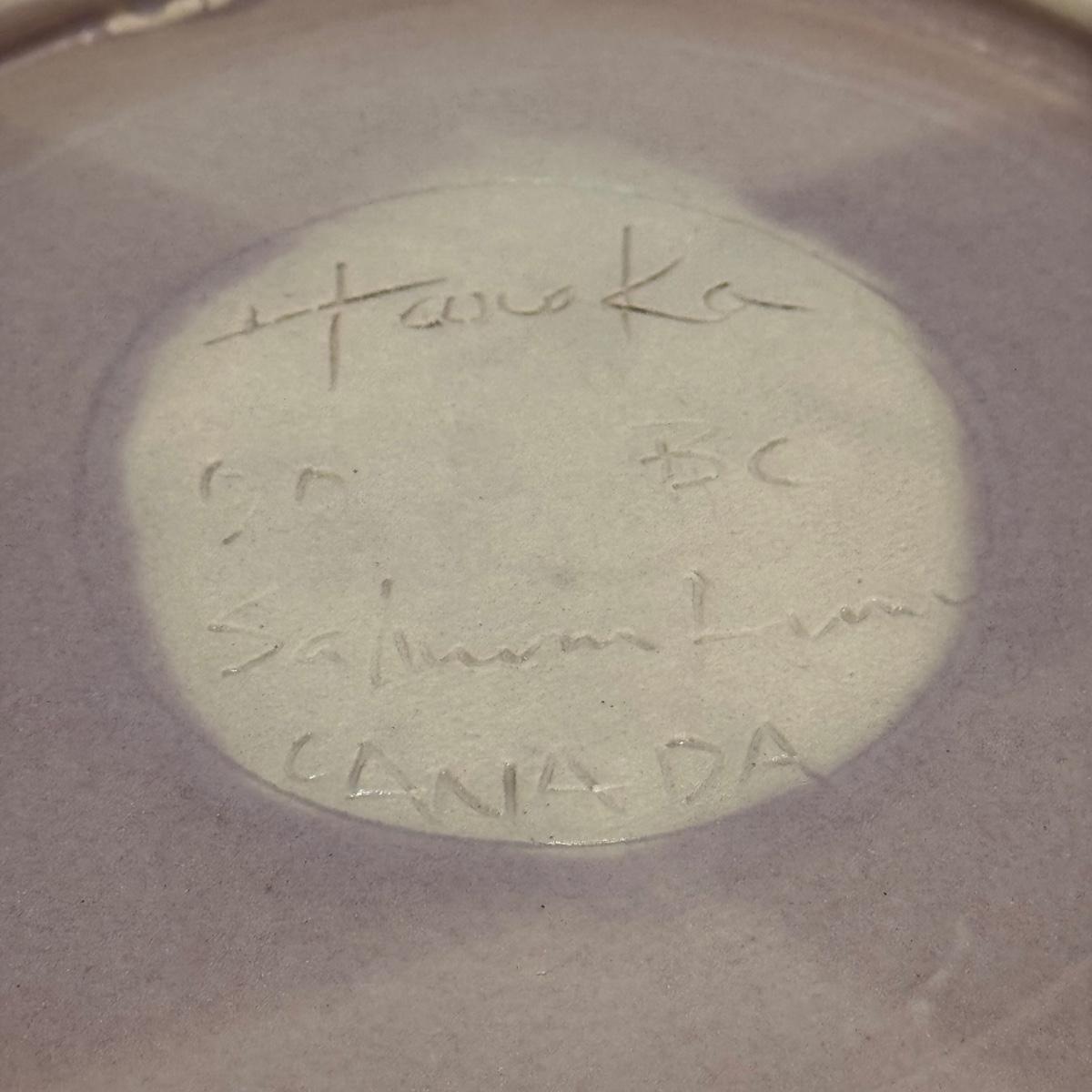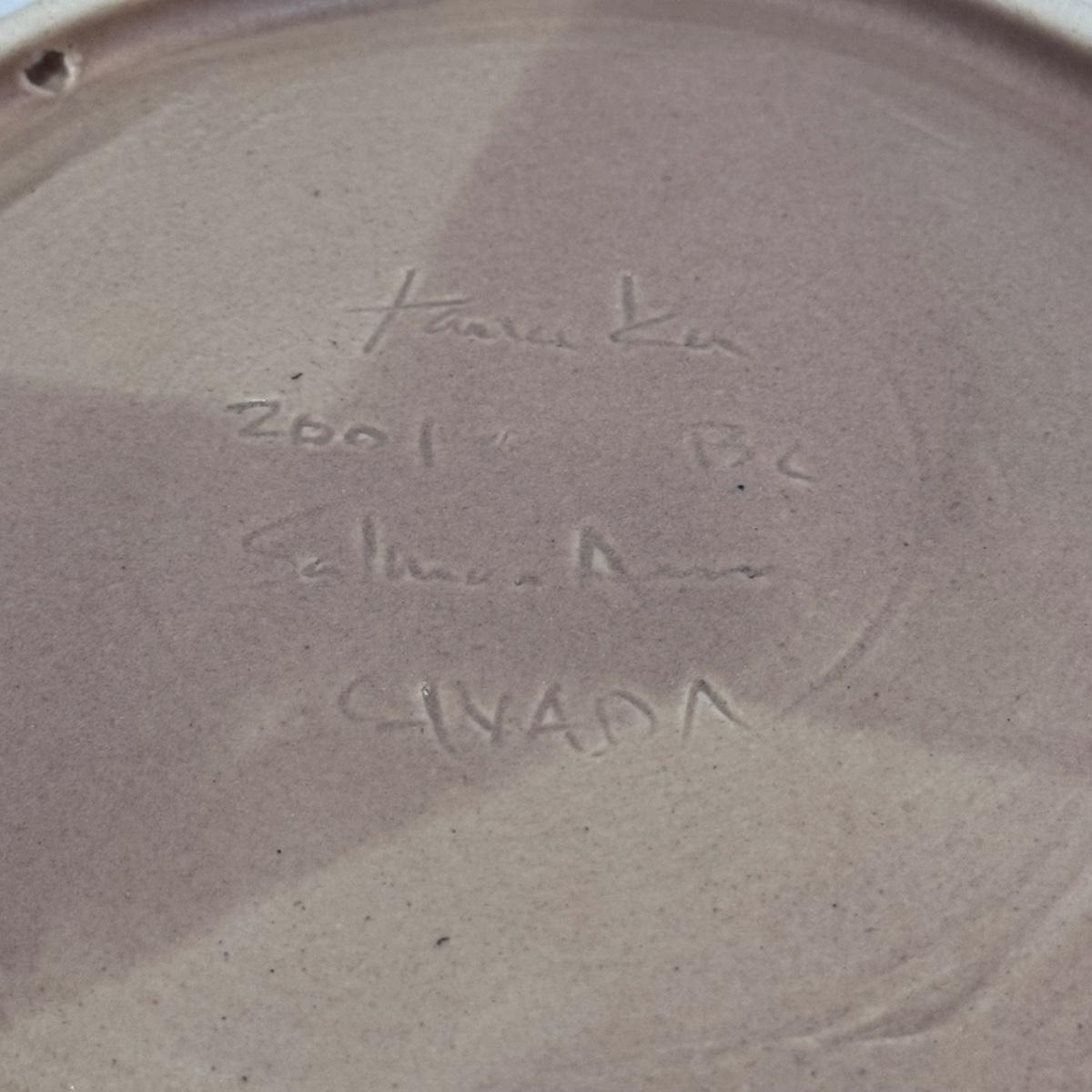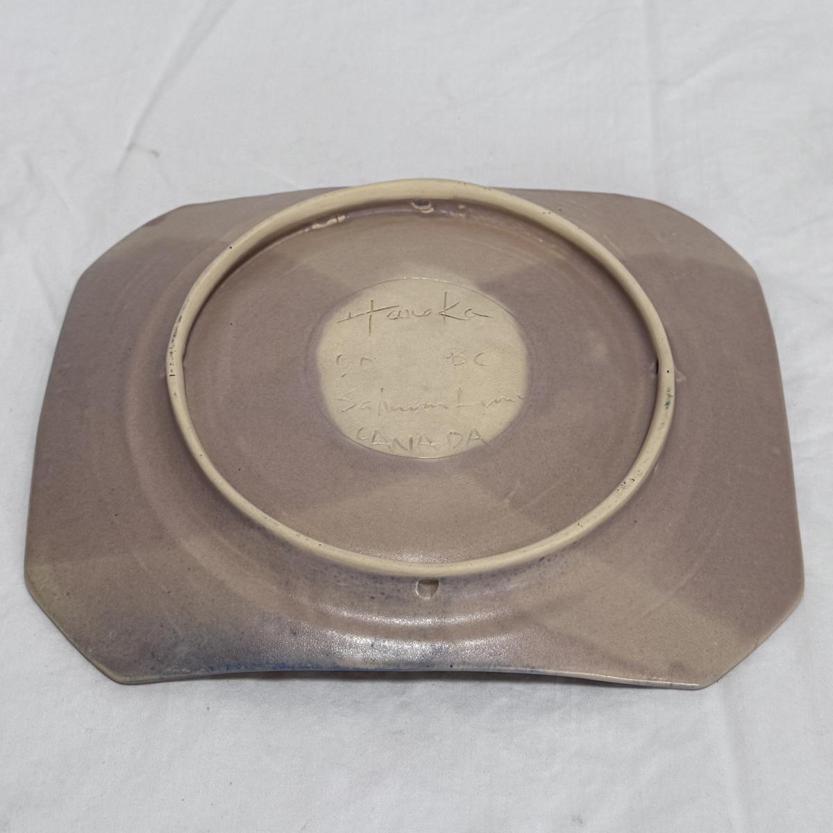 This lot includes five Hanaka handcrafted pottery dishes made in Salmon Arm, British Columbia. All pieces are signed on the back and have holes for hanging purposes, if desired. The largest dish measures 10.5” x 10” x 1”H. Shipping available.