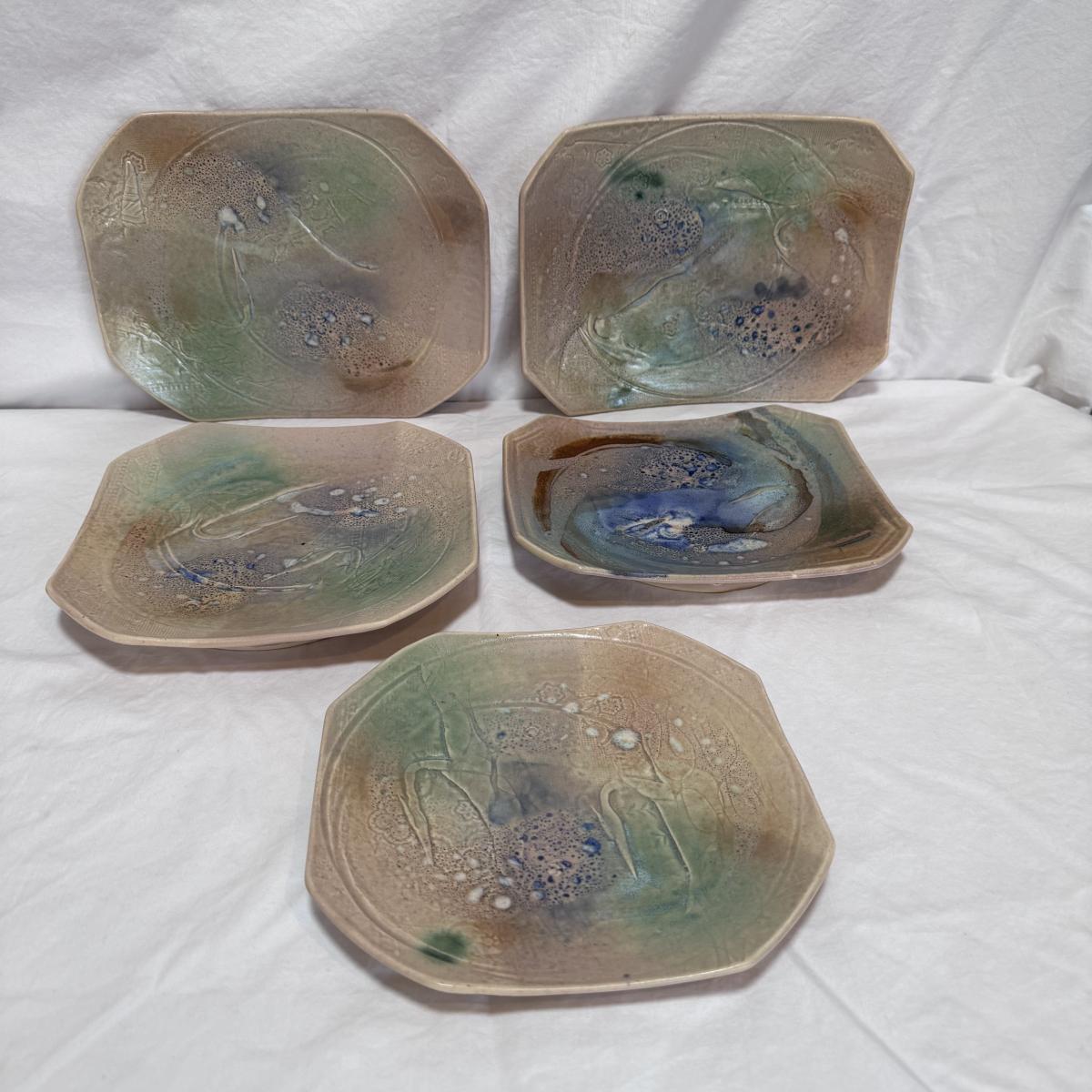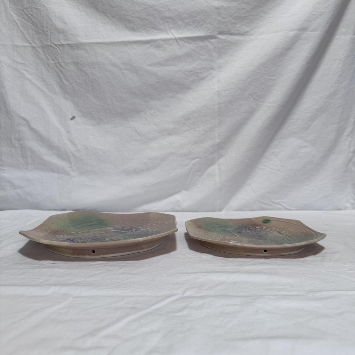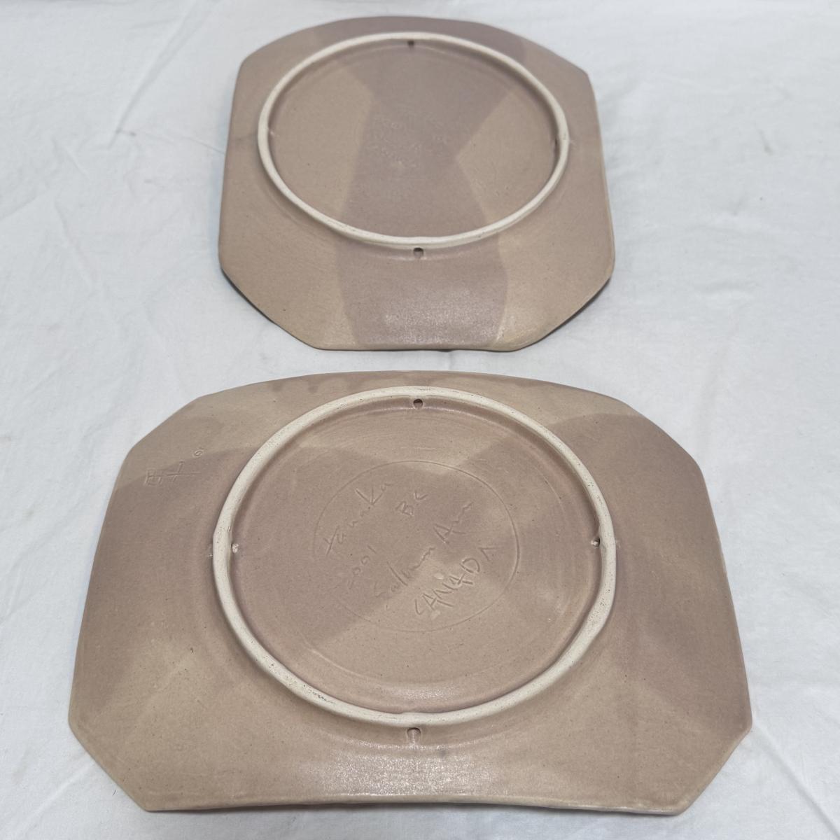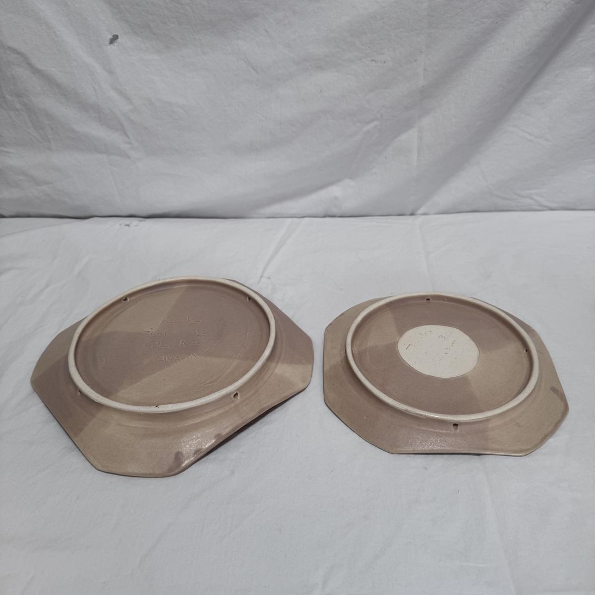 This lot includes five Hanaka handcrafted pottery dishes made in Salmon Arm, British Columbia. All pieces are signed on the back and have holes for hanging purposes, if desired. The largest dish measures 10.5” x 10” x 1”H. Shipping available.