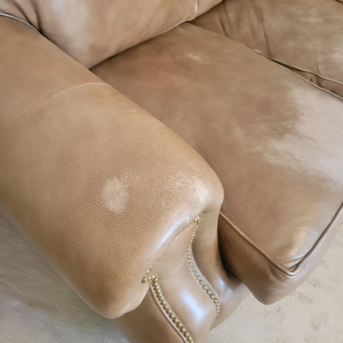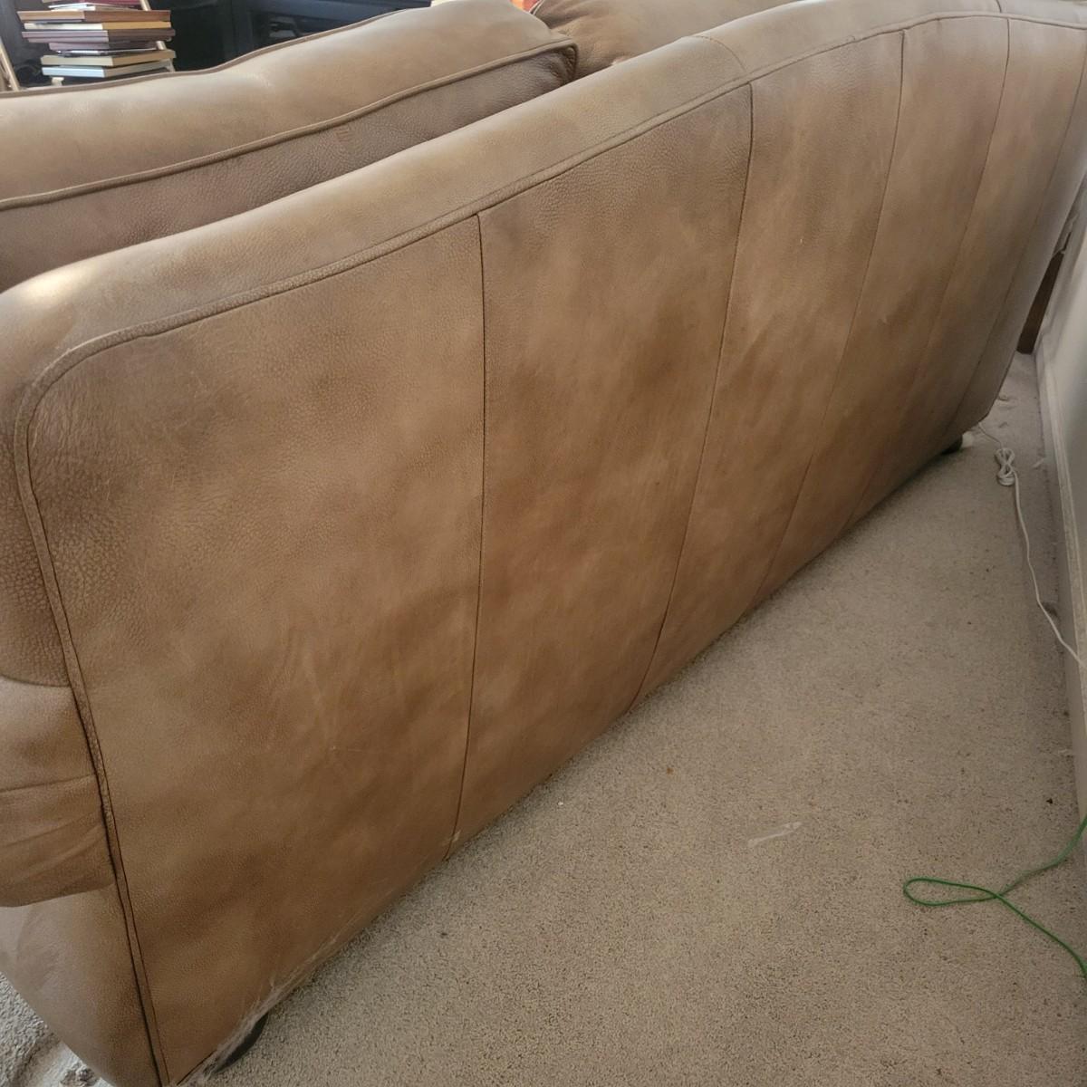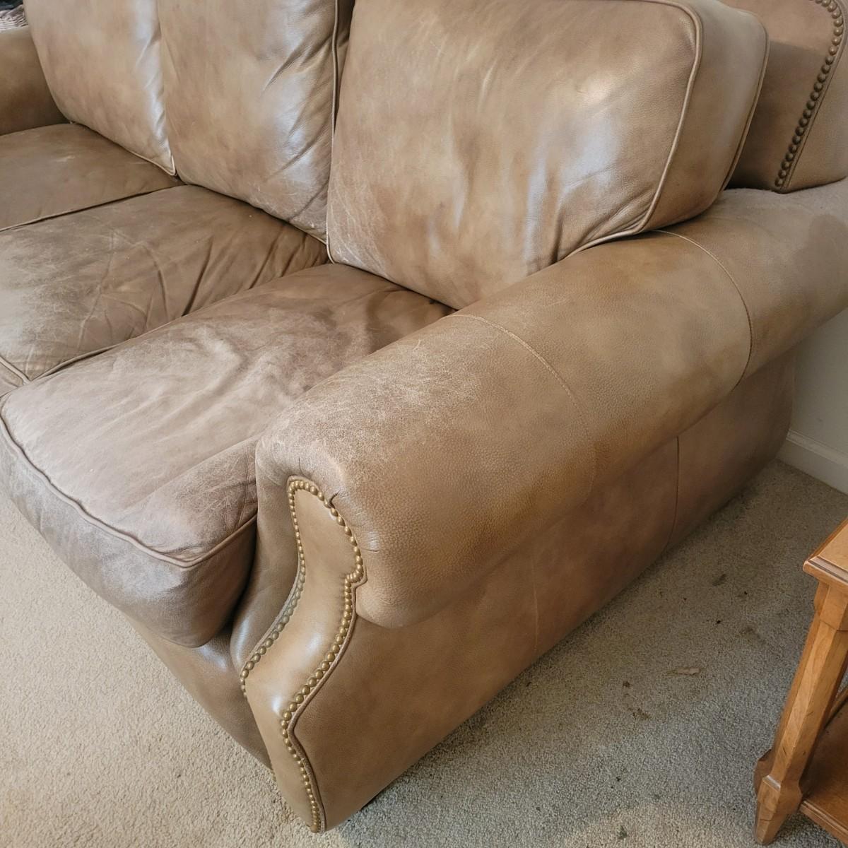 A leather couch manufactured by Hancock and Moore. This couch has removable cushions that are held in place by velcro. The leather in a medium brown color that does show some wear. It measures approximately 84" x 44" x 35"H. Local pickup only. Winning bidder must bring assistance to help move and load this item due to its weight and/or size.