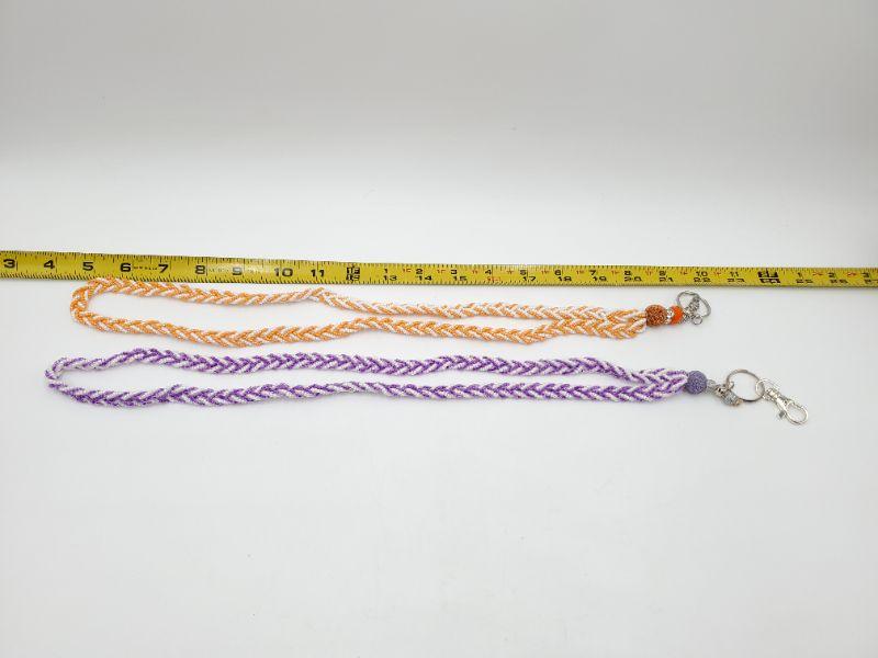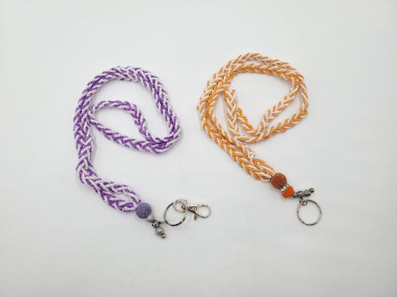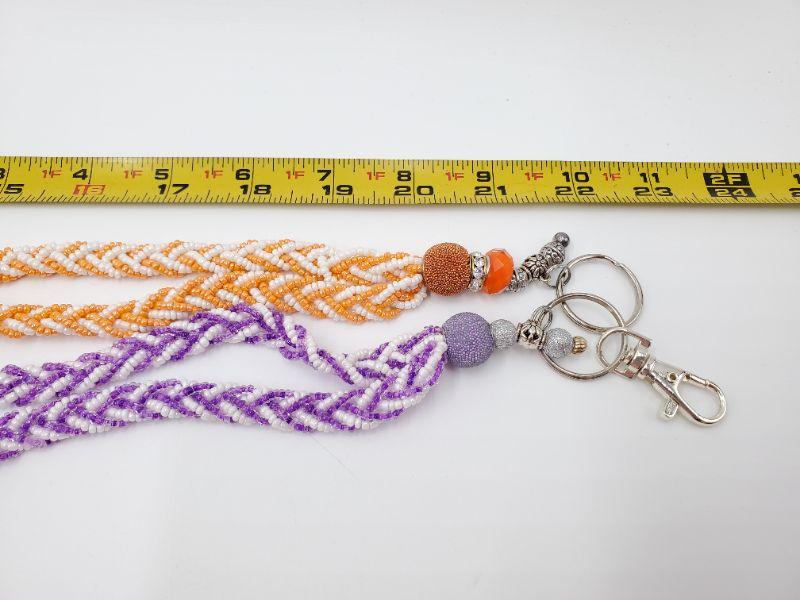 2 hand beaded lanyards, orange, purple and white glass beads, very nice!