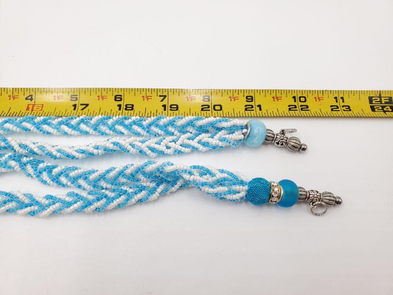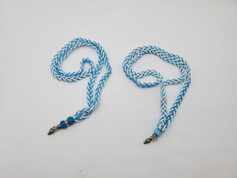 Lot of 2 blue and white glass hand beaded lanyards, approximately 18in, very pretty!!