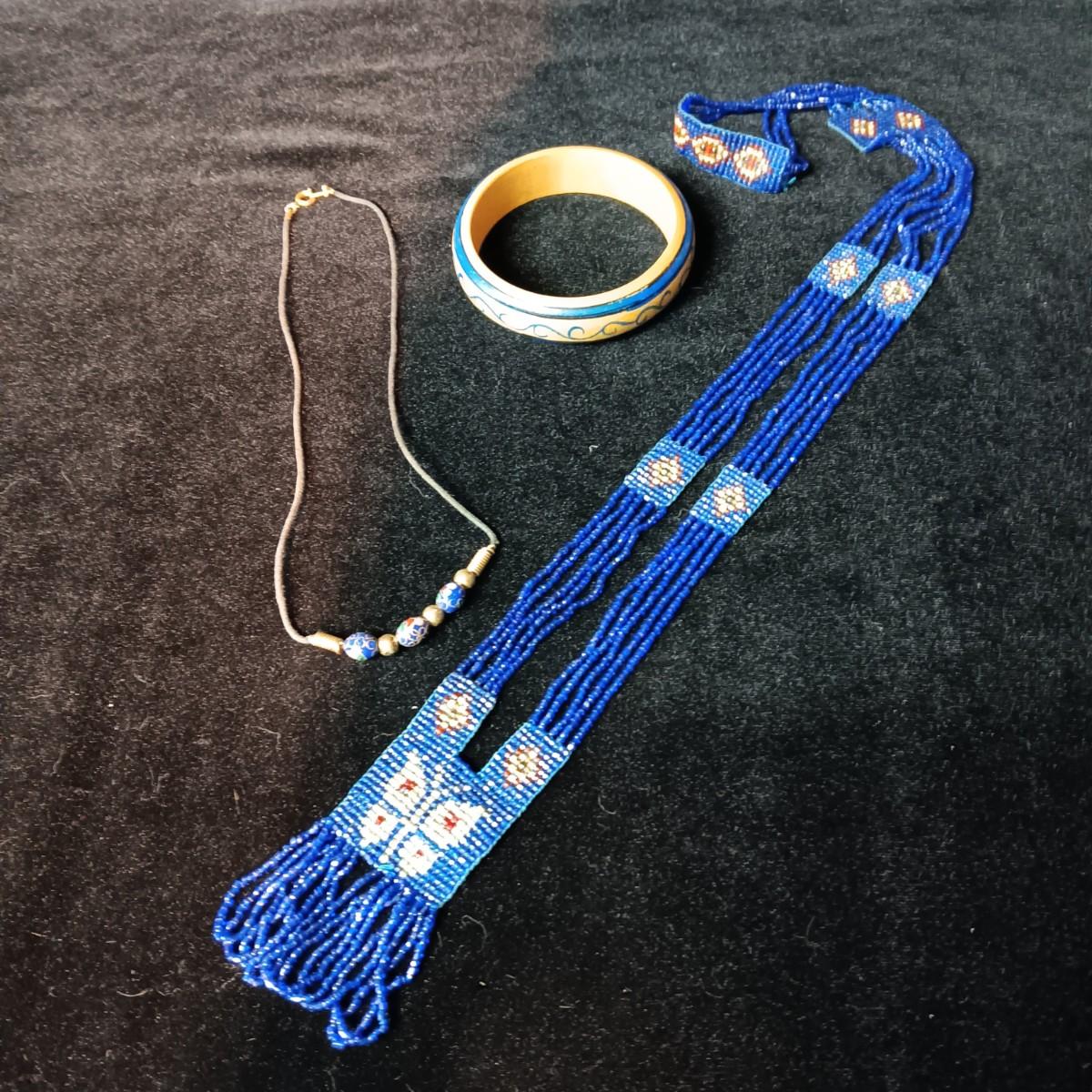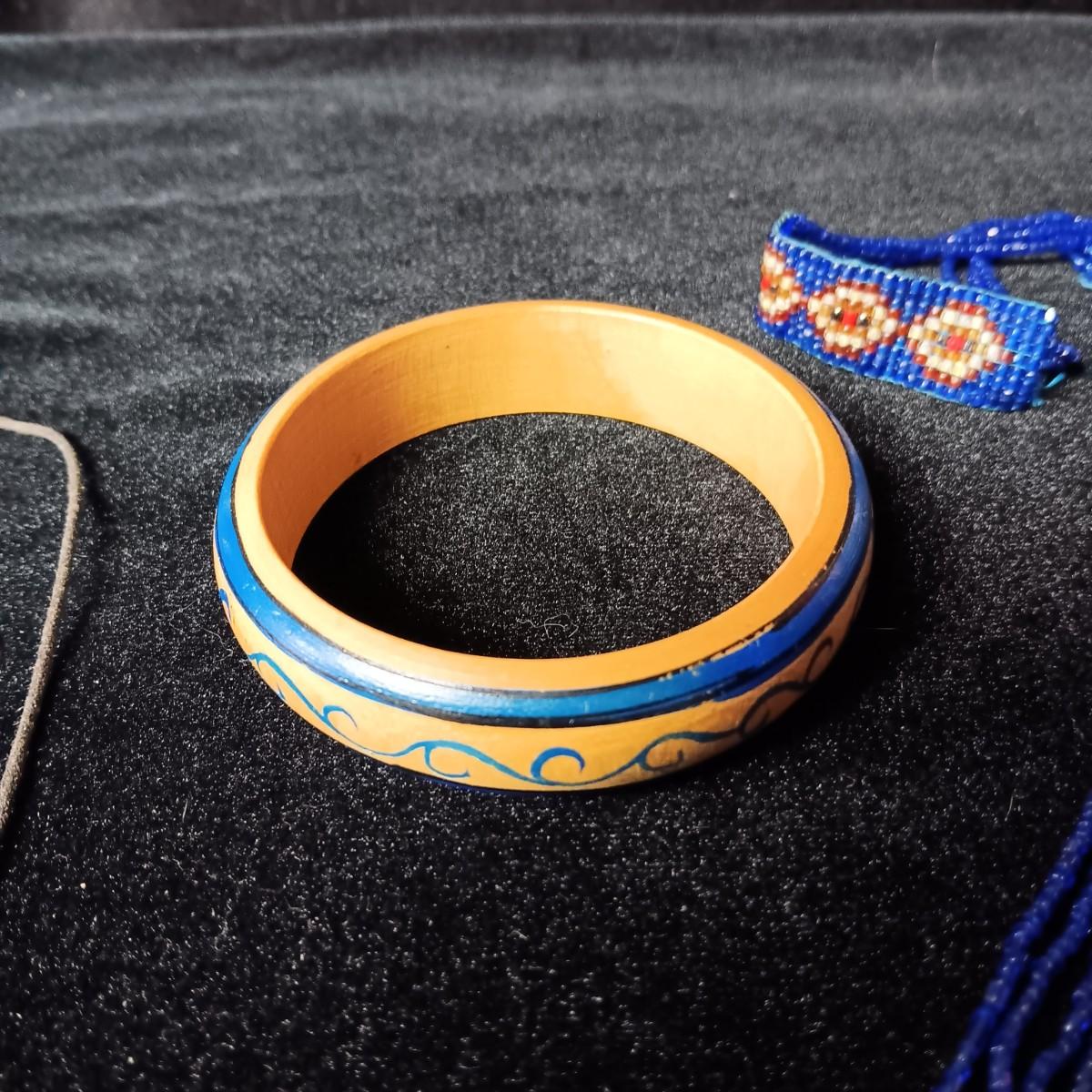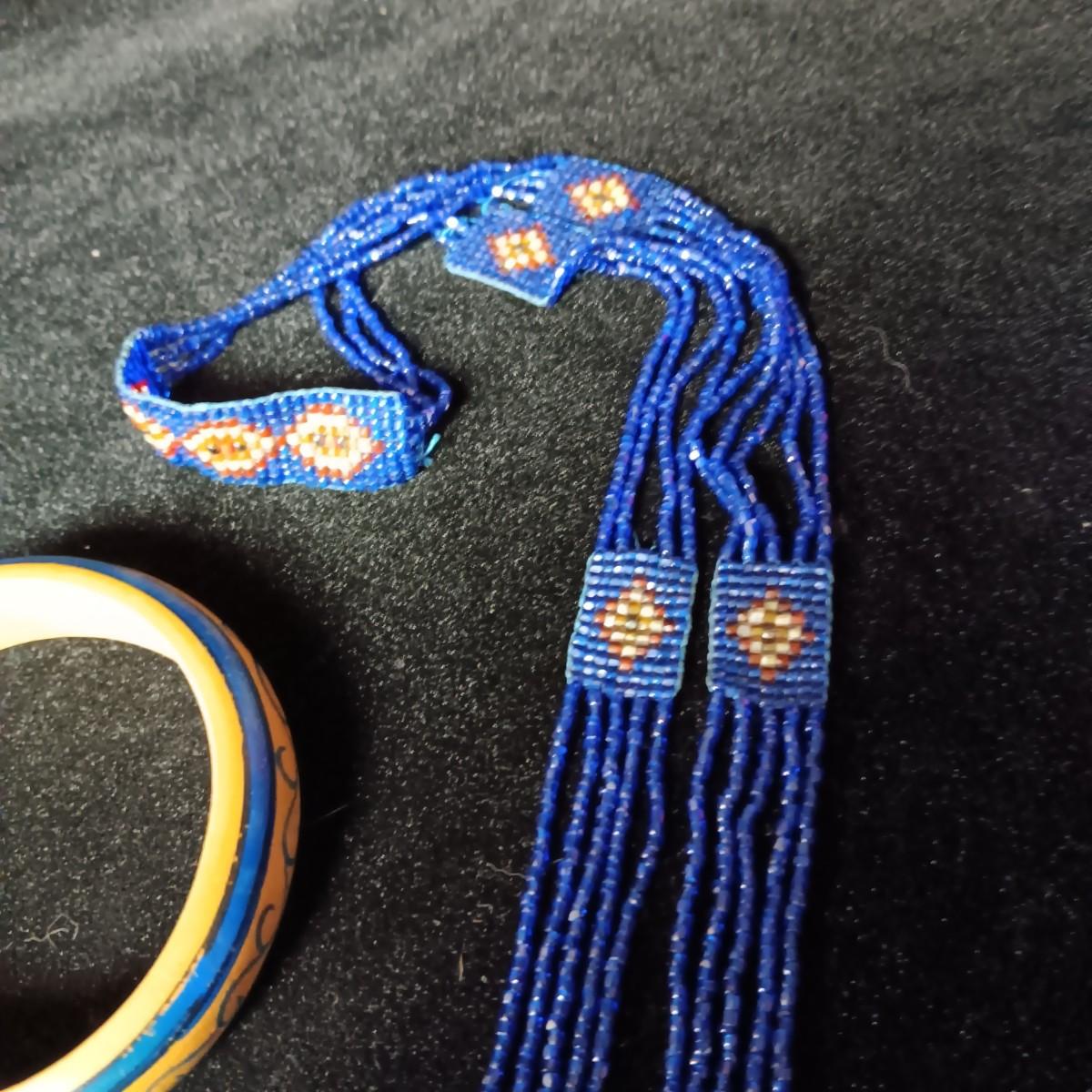 HAND BEADED NATIVE AMERICAN NECKLACE, WOODEN BRACELET & BEADED CHAIN NECKLACE