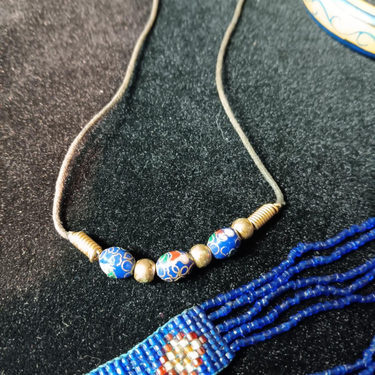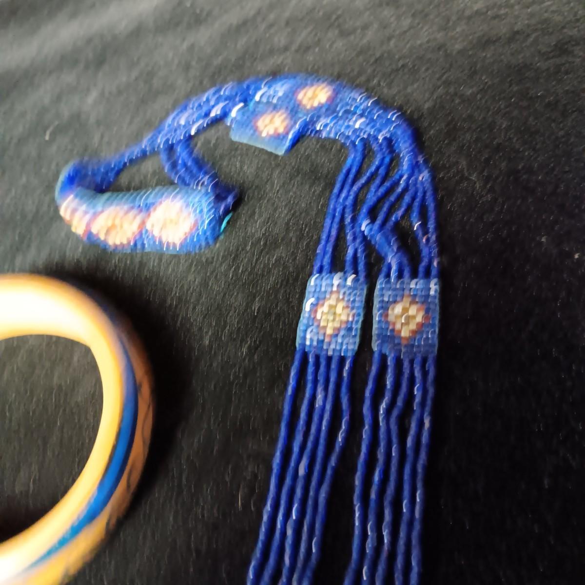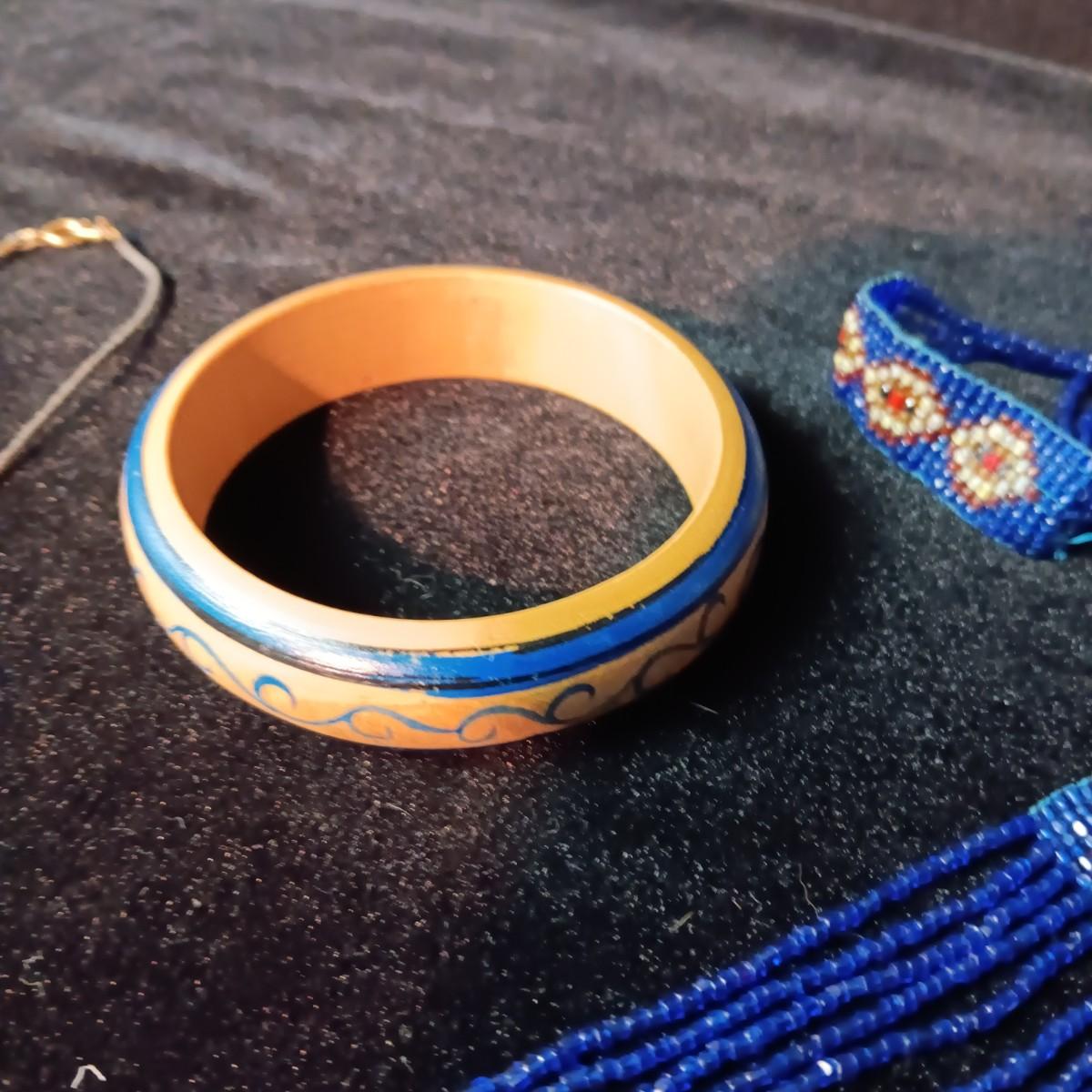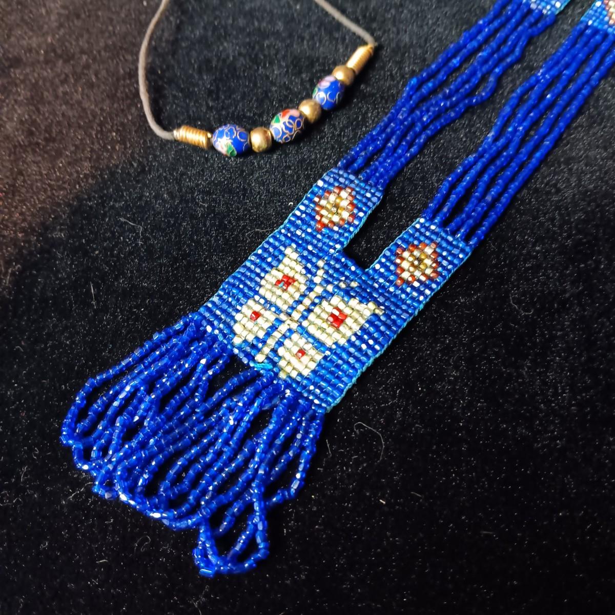 HAND BEADED NATIVE AMERICAN NECKLACE, WOODEN BRACELET & BEADED CHAIN NECKLACE