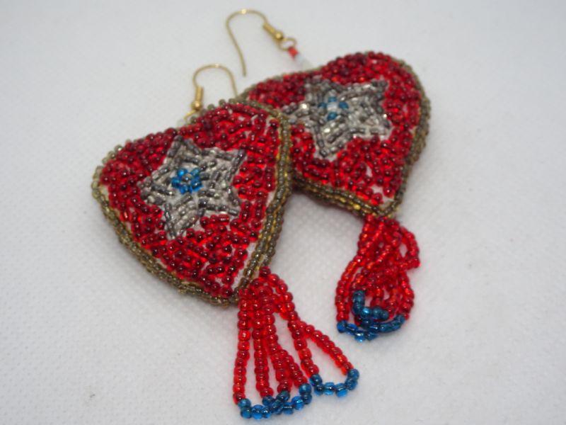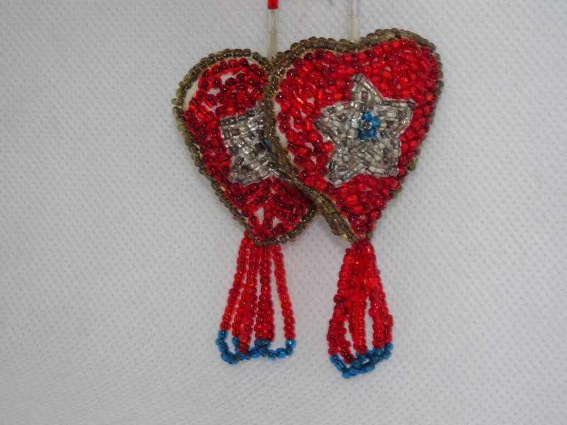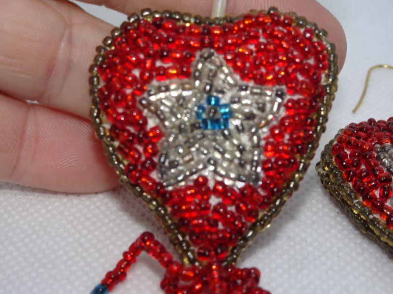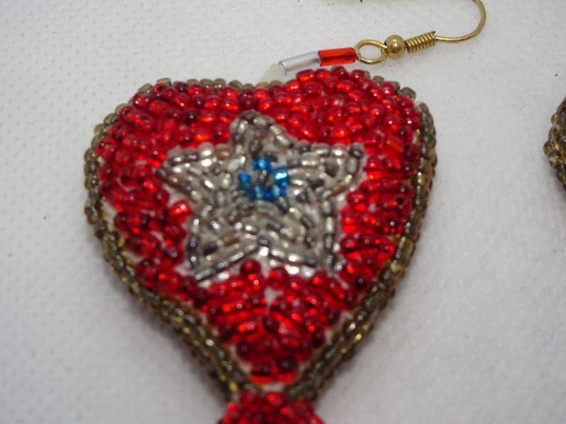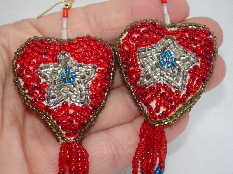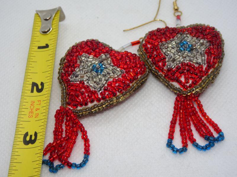 Hand Beaded Red White & Blue Beaded Heart Earrings, Lone Star - Houston Stock Show Jewelry