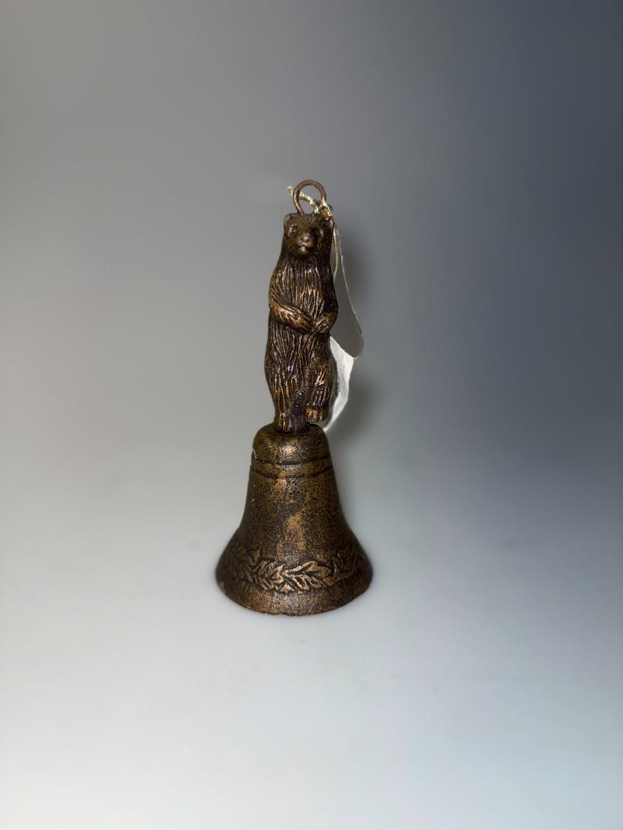 Hand Bell Brass Dancing Bear w Oak Leaf Trim 6 inches 359
