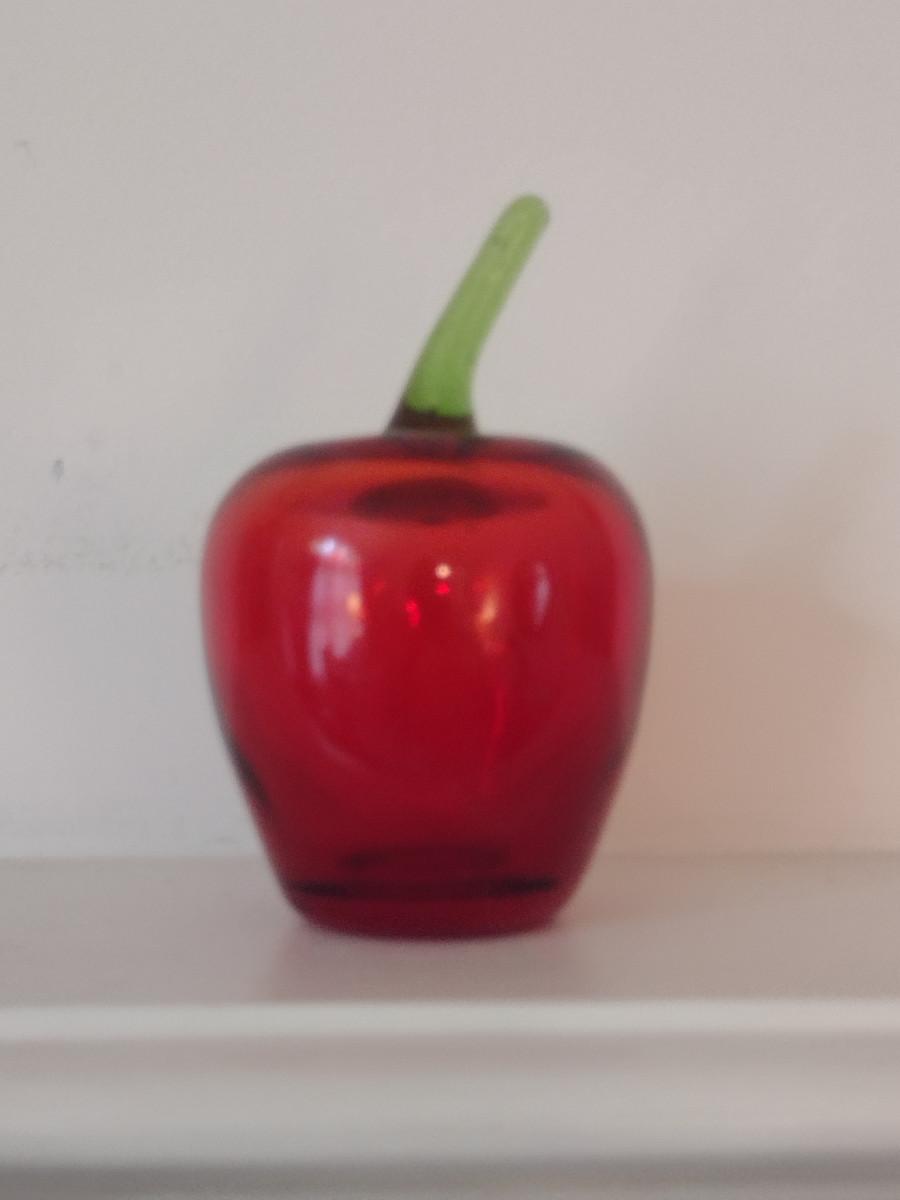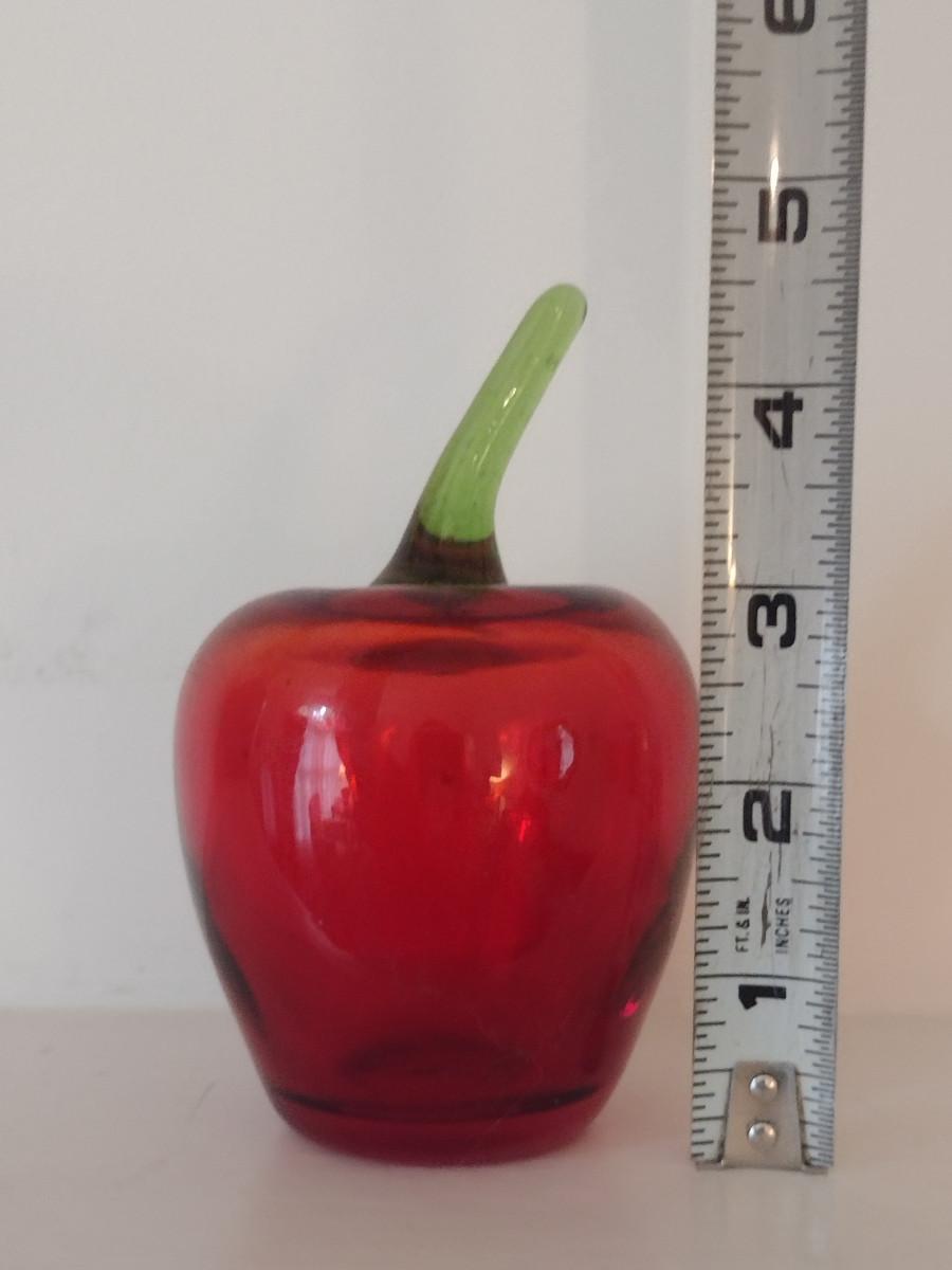 Hand Blown Art Glass Apple- Possibly Viking- Approx 4 1/2" Tall