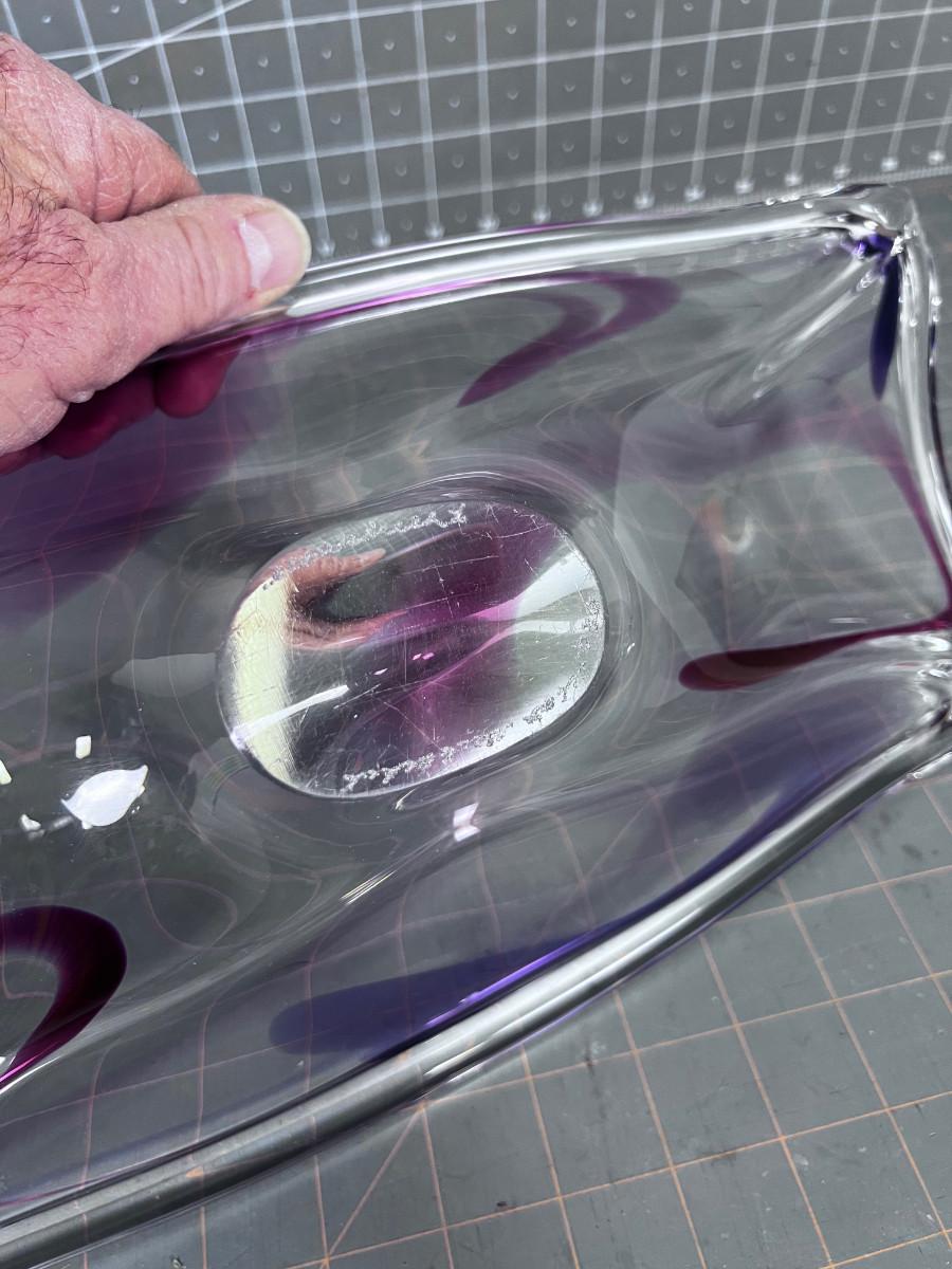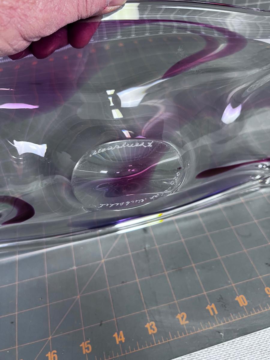 WOW! Neat! ART!!! And Useful if you want it to be. Kind of a Purple Blue Hue. Approx. 15" Long X 8" Wide.