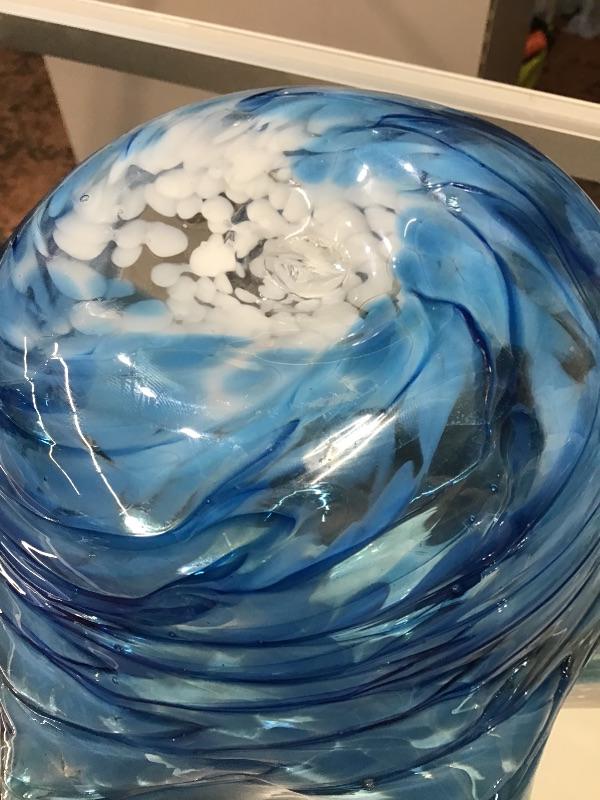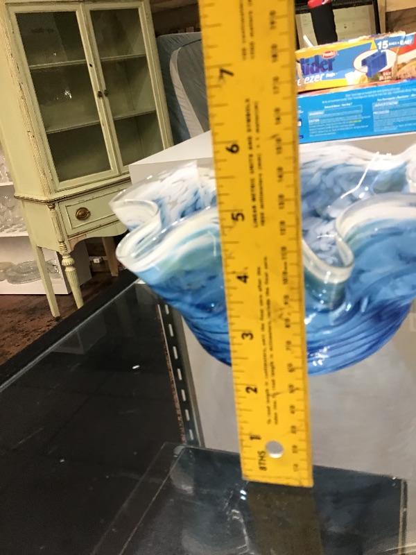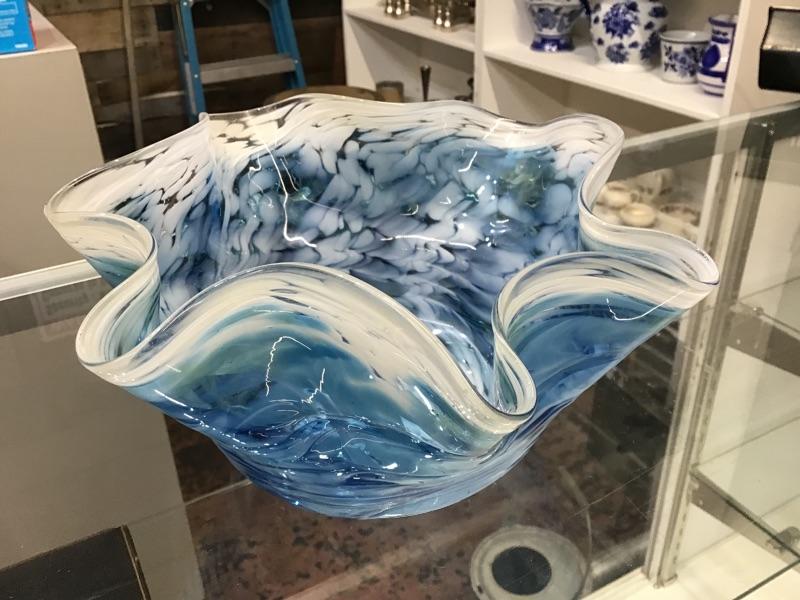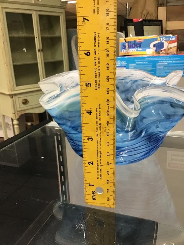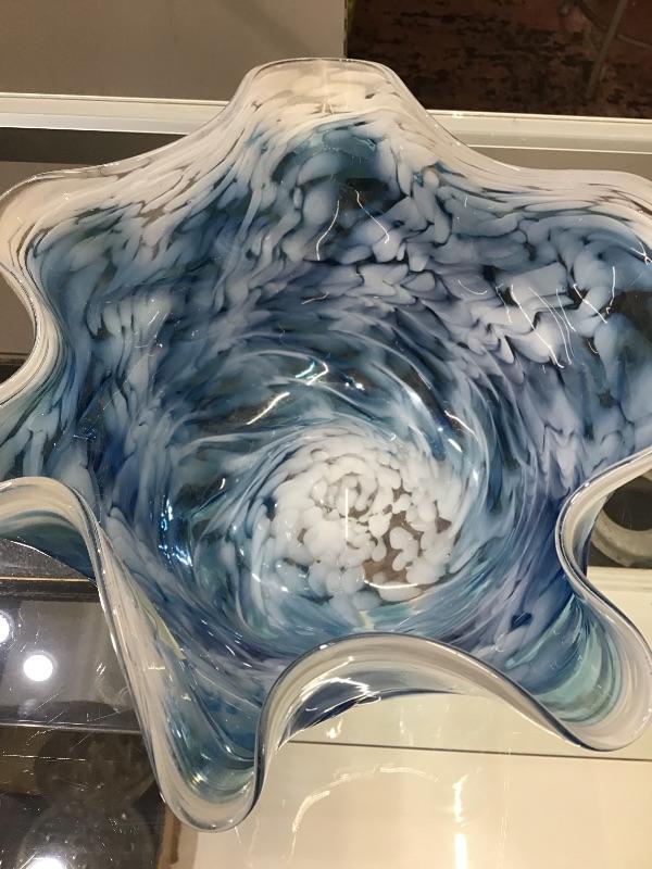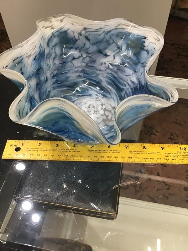 Hand Blown Art Glass - Decorative Bowl - Blue and White